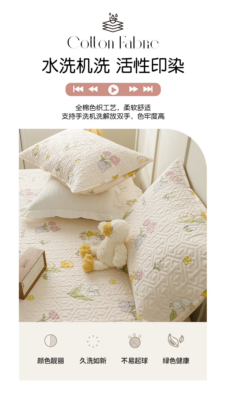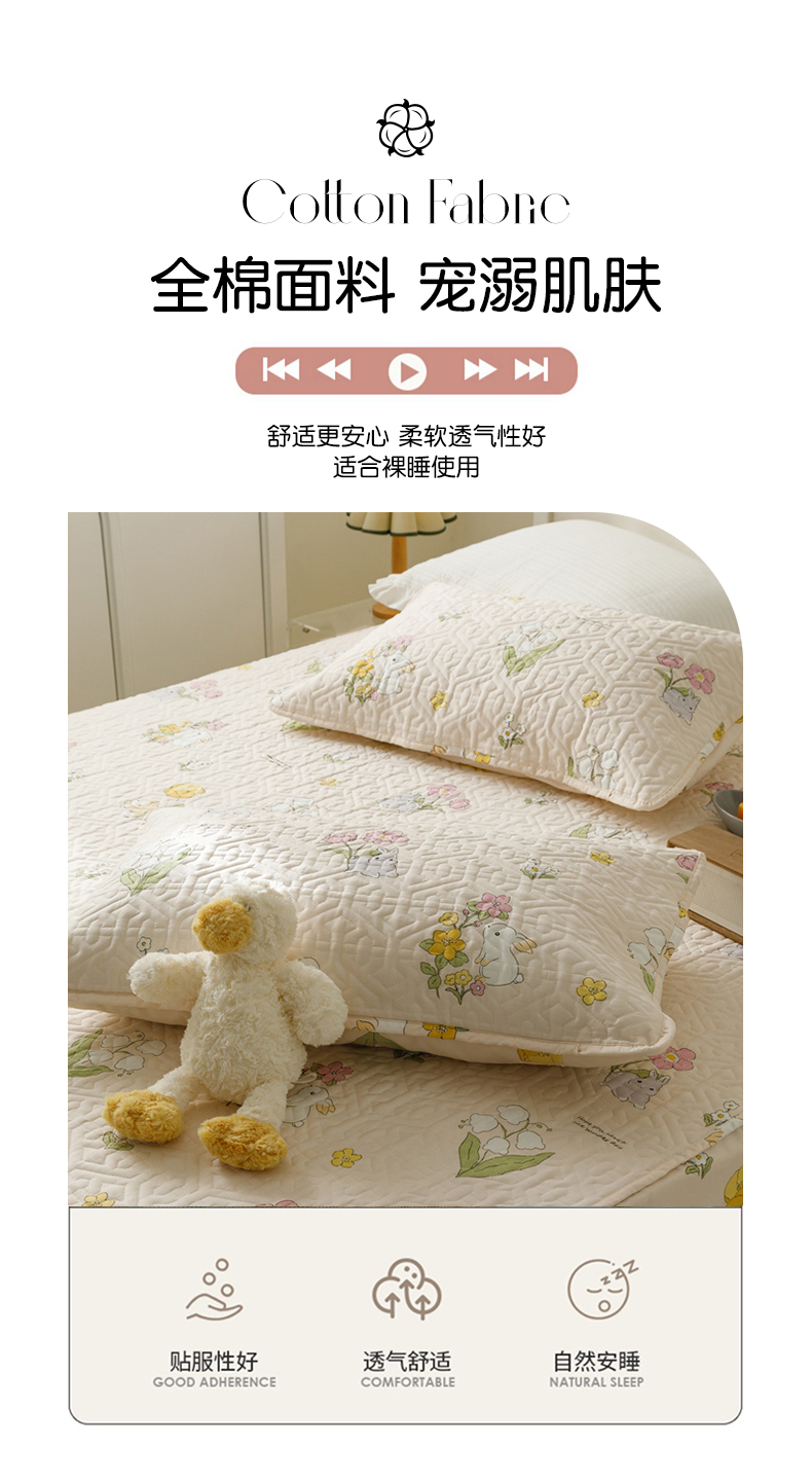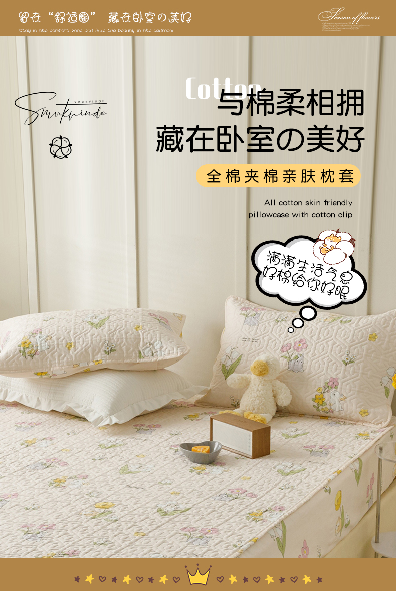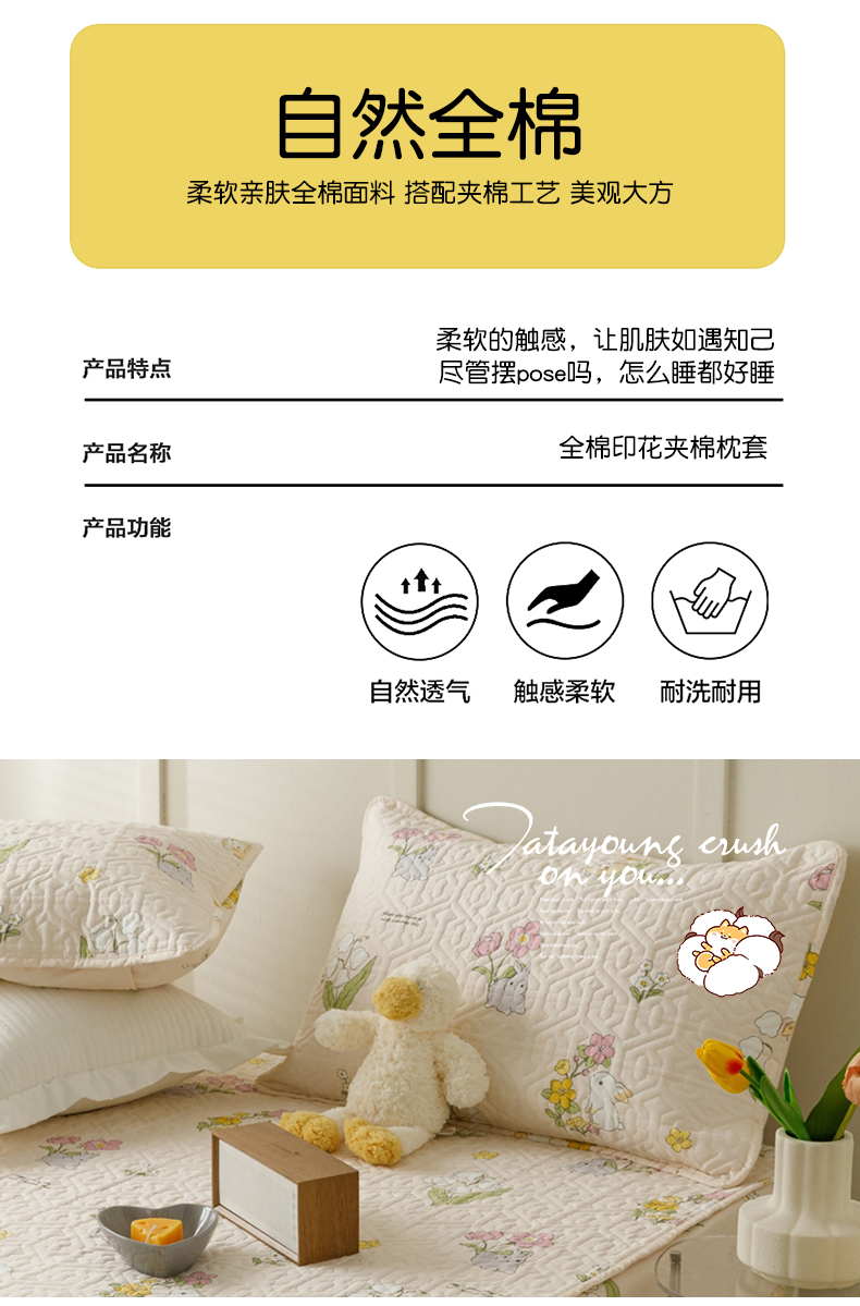 商品名称:2024新款全棉夹棉枕套-印花类 园林兔-玉