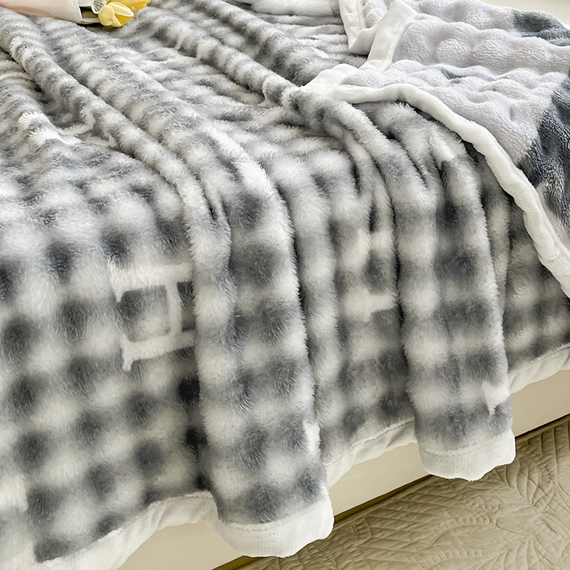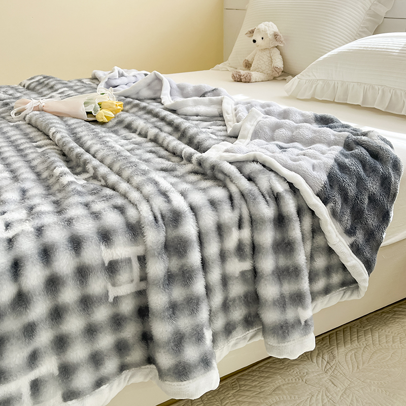 商品名称:悦织湾家纺 2025新款320克仿兔毛大泡泡印花毯子纯色牛奶绒毛毯出口外贸跨境专供直播电商热销款 青云梯