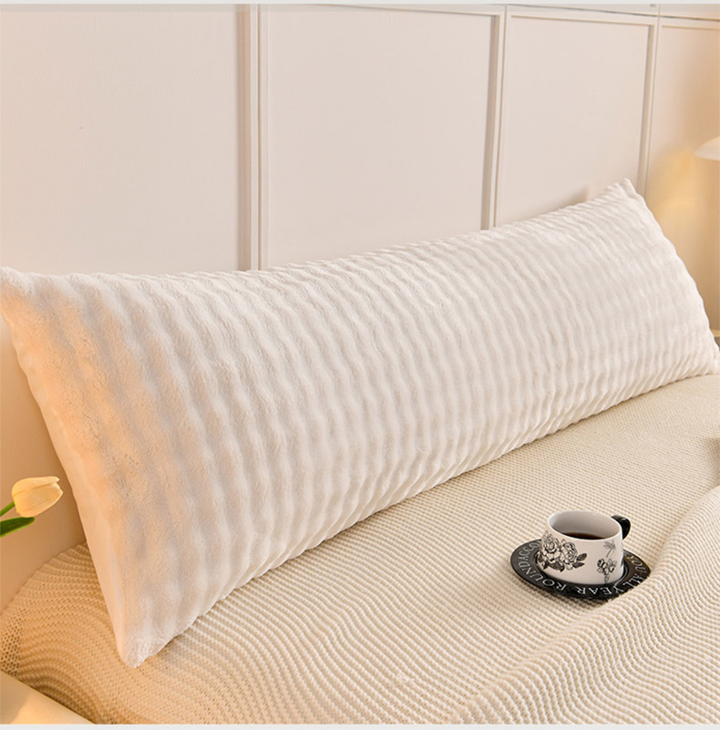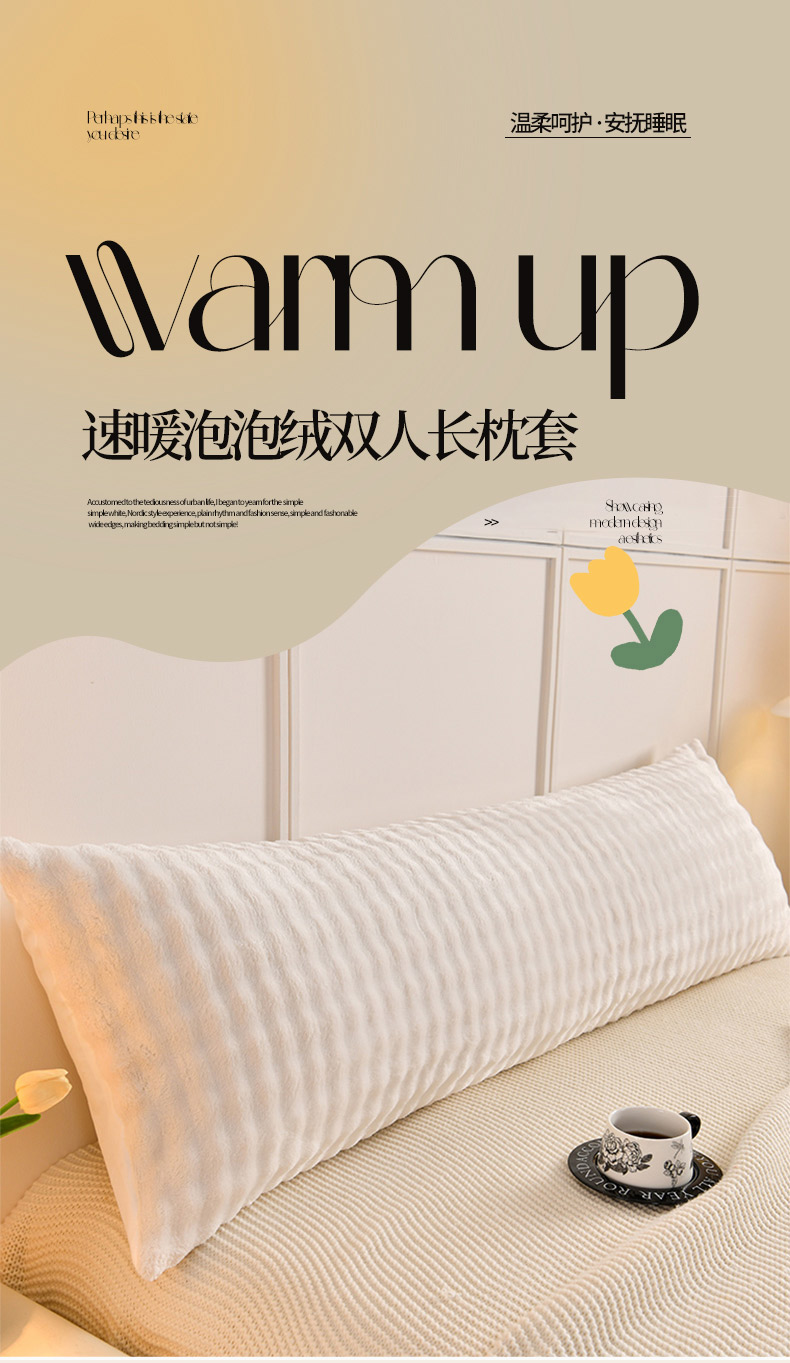 商品名称:艾兜坊 2024新款速暖兔毛泡泡绒双人长枕套 米白色