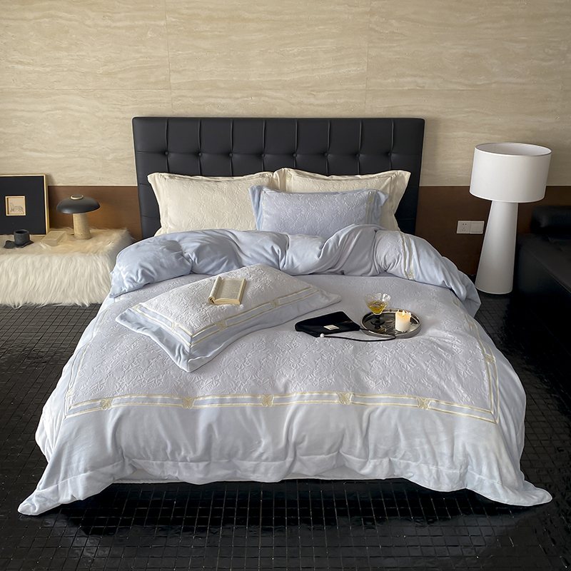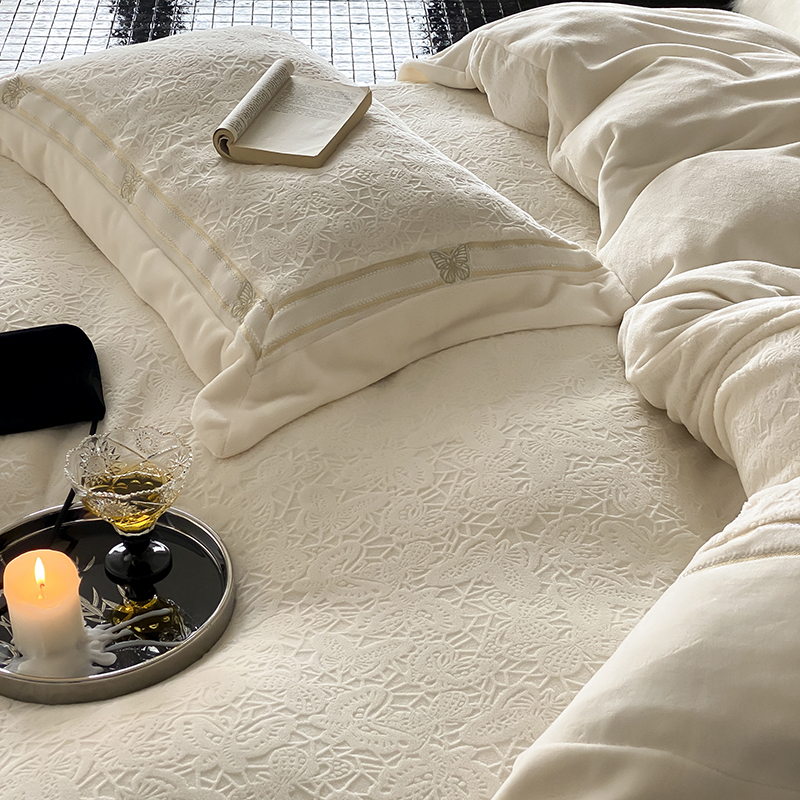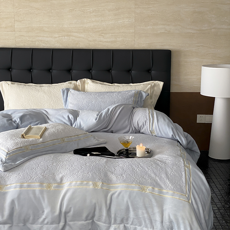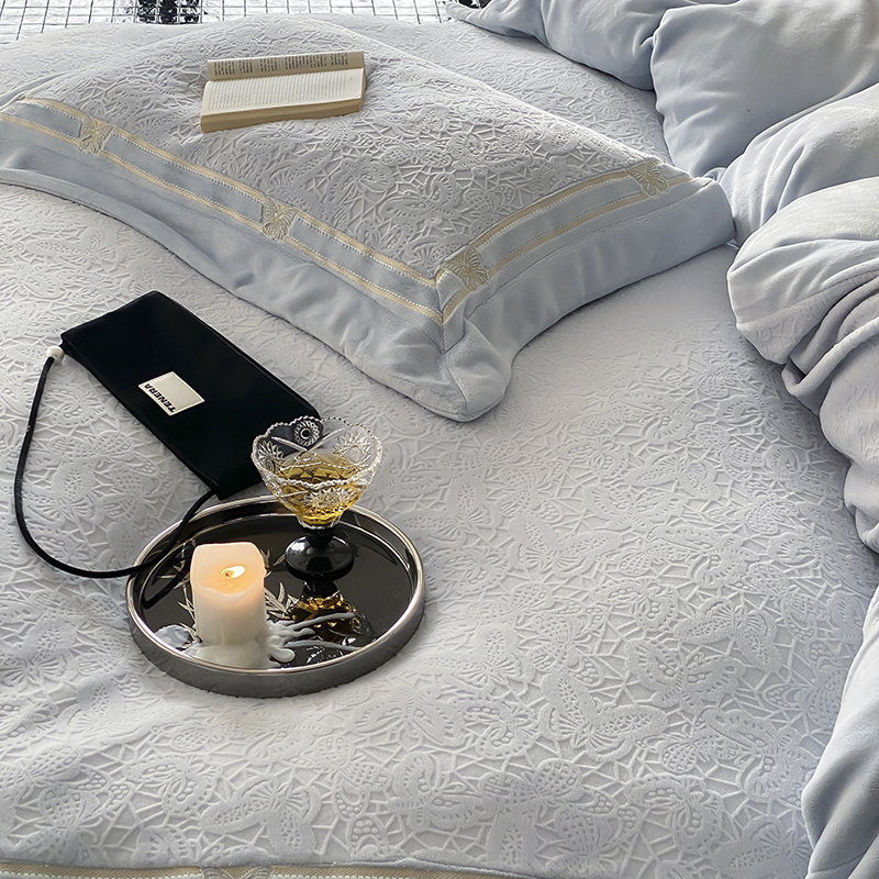 MIU缪家居 2024新款雕花牛奶绒四件套-自由之蝶 自由之蝶-蓝