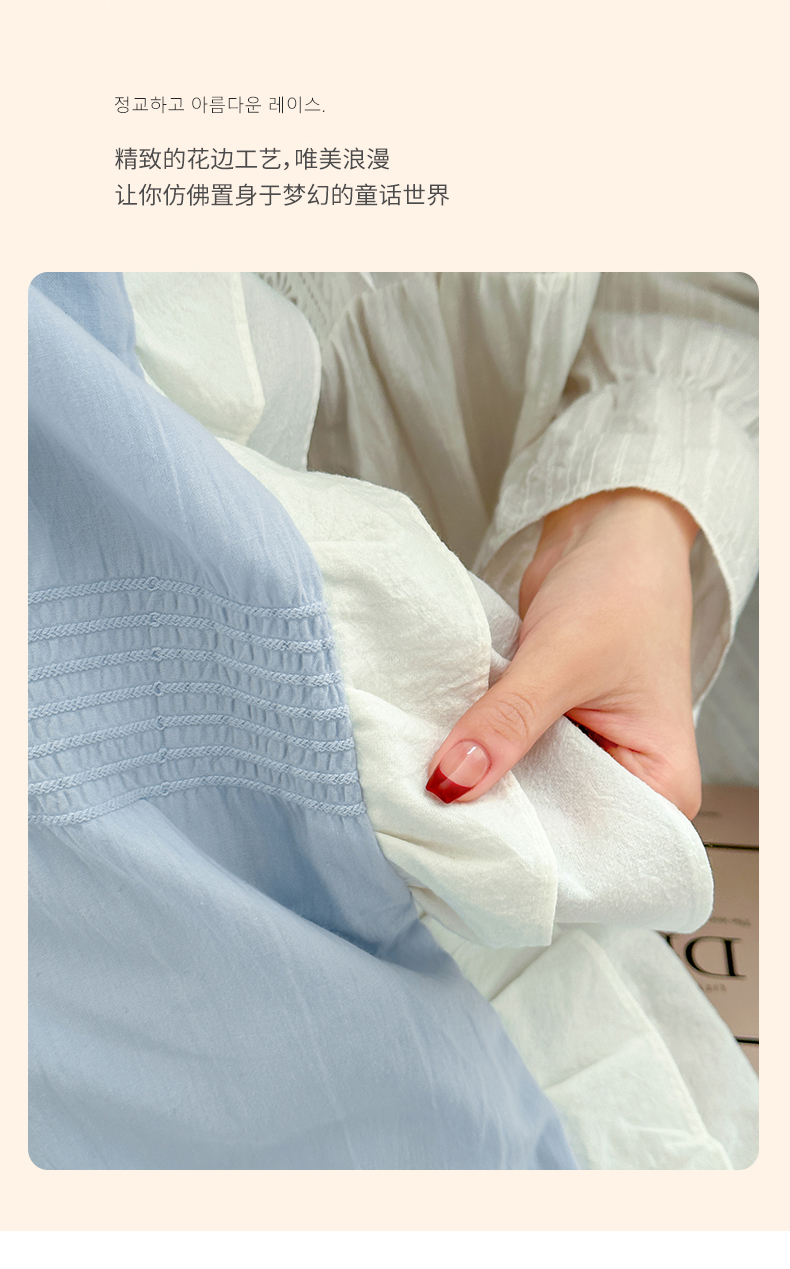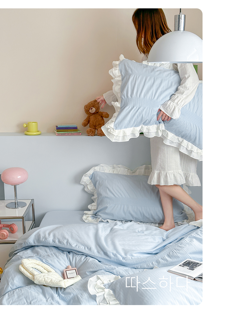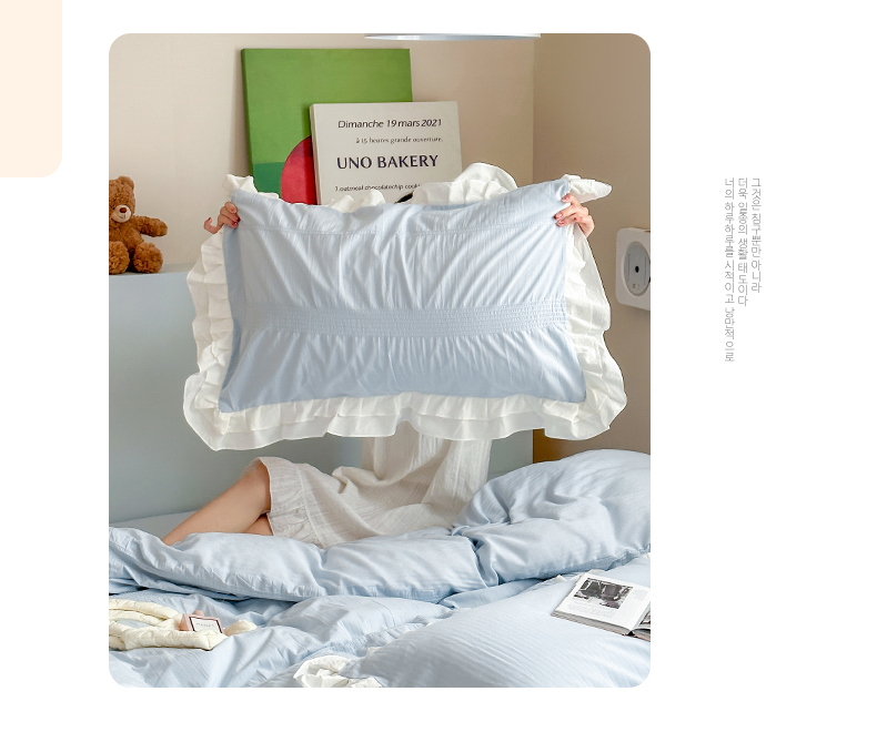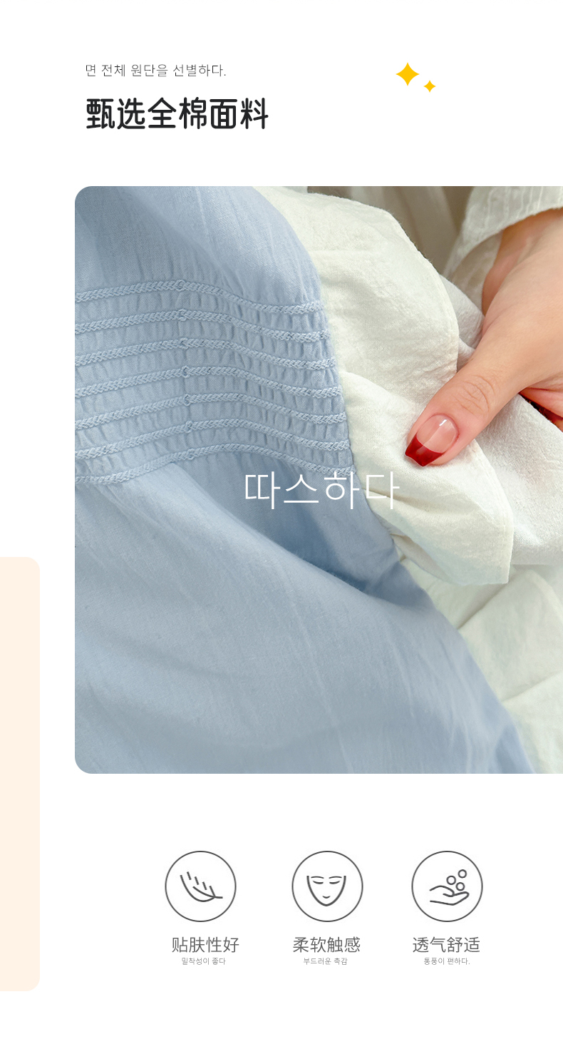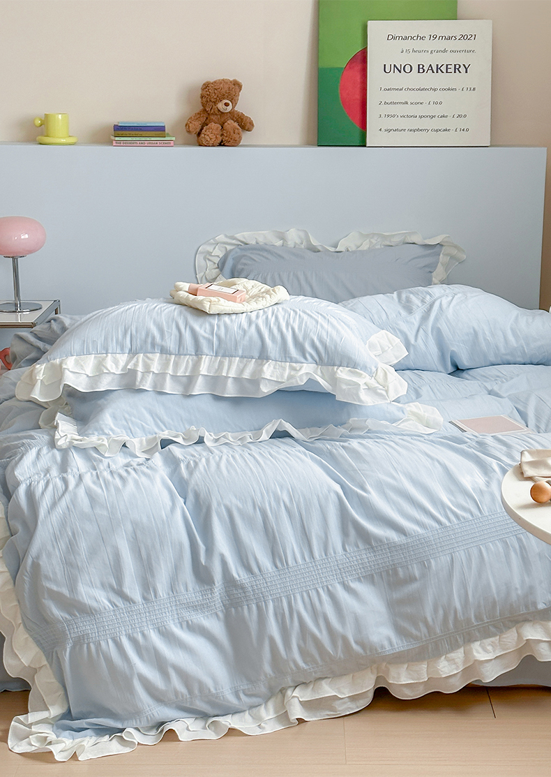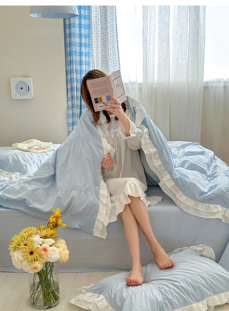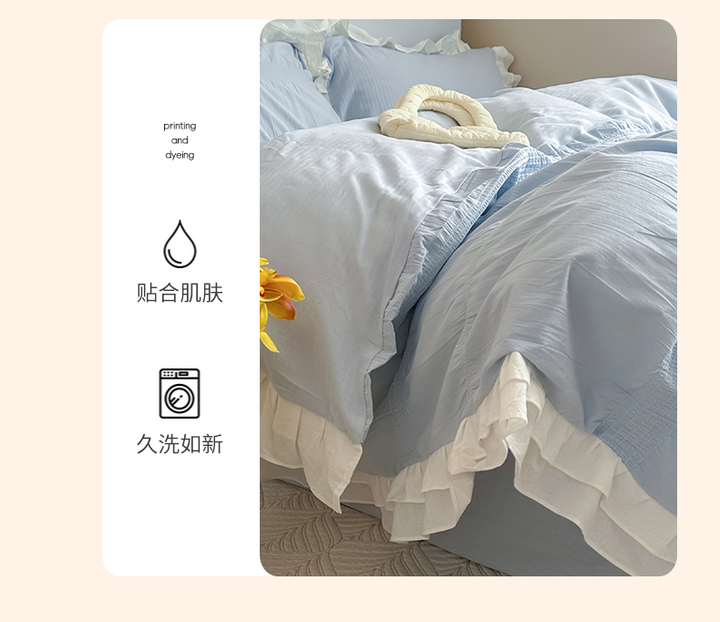 商品名称:尺素 2024新款韩版ins花边款双人1.8四件套水洗棉泡泡纱被套人字纹床单 奶泡泡-也许雾蓝