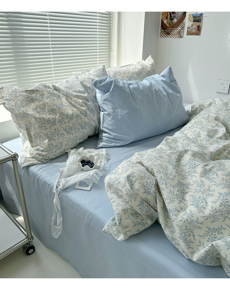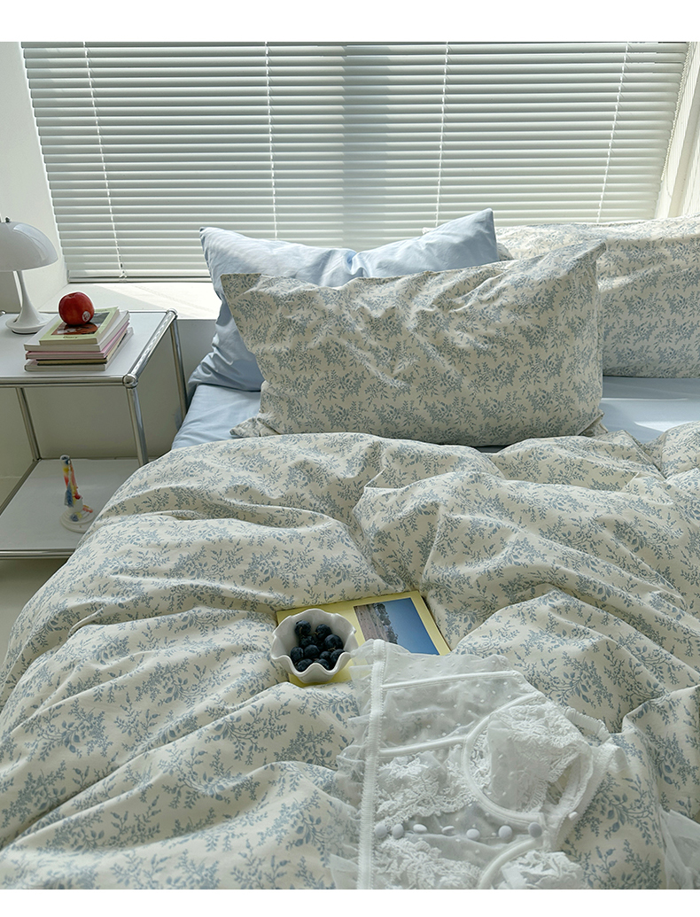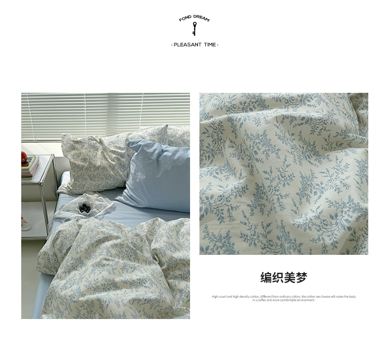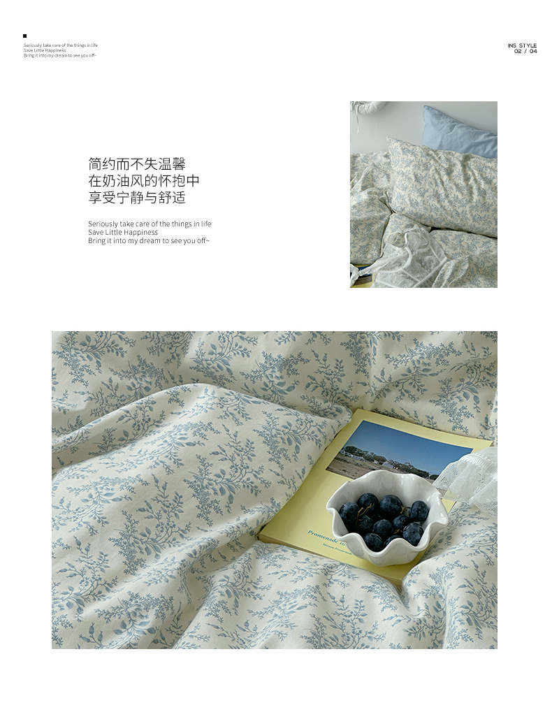 商品名称:尺素 2024韩国ins风少女粉被套纯棉卡通四件套小清新蝴蝶结被套240*250床单学生宿舍三件套 散文诗(浅蓝)