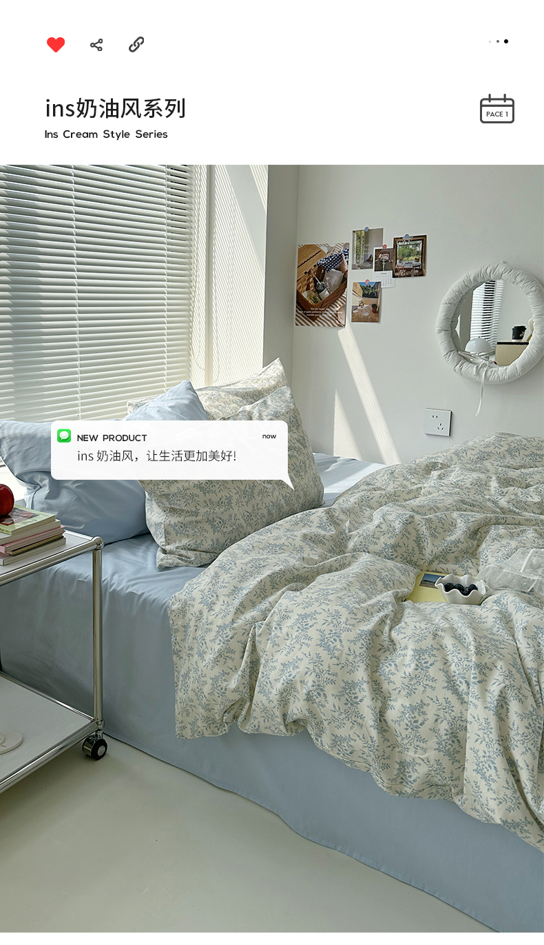 (总)尺素 全棉40支喷气13372韩国ins设计师四件套,花舞,篱落粉,篱落黄,落英,派对,童趣,涂鸦,小粉兔,雪地熊