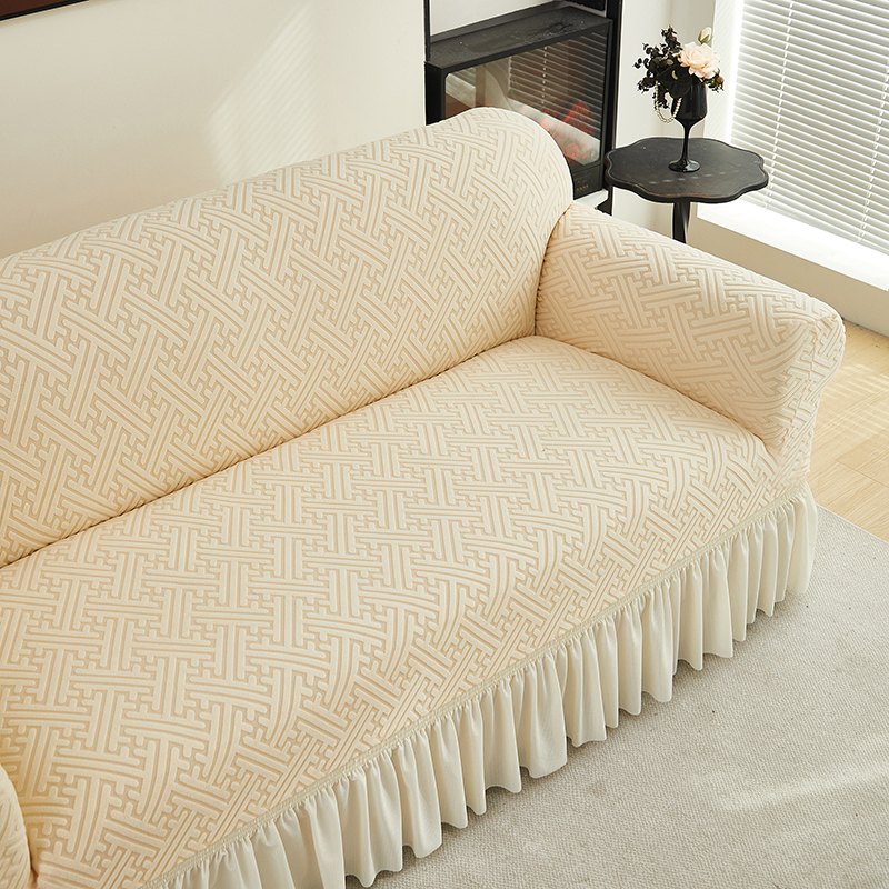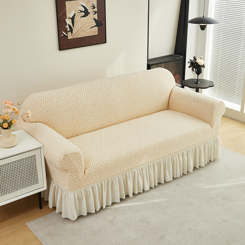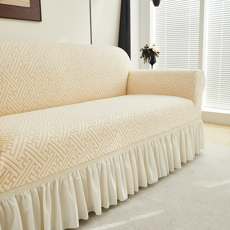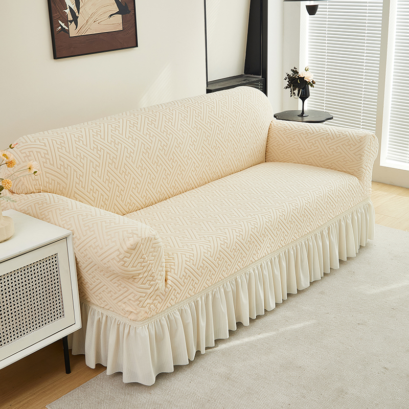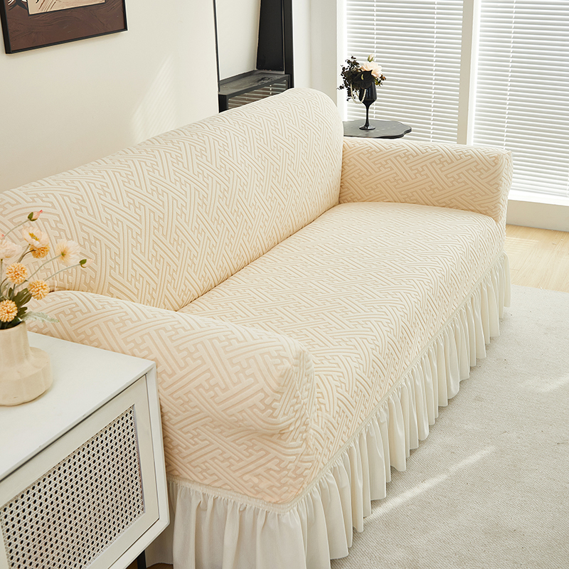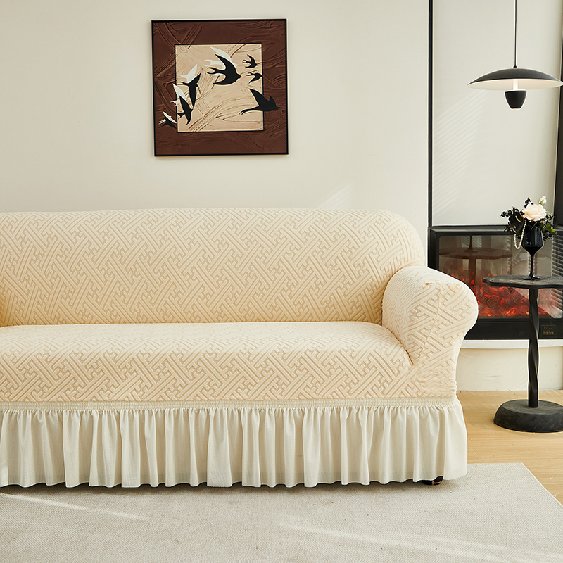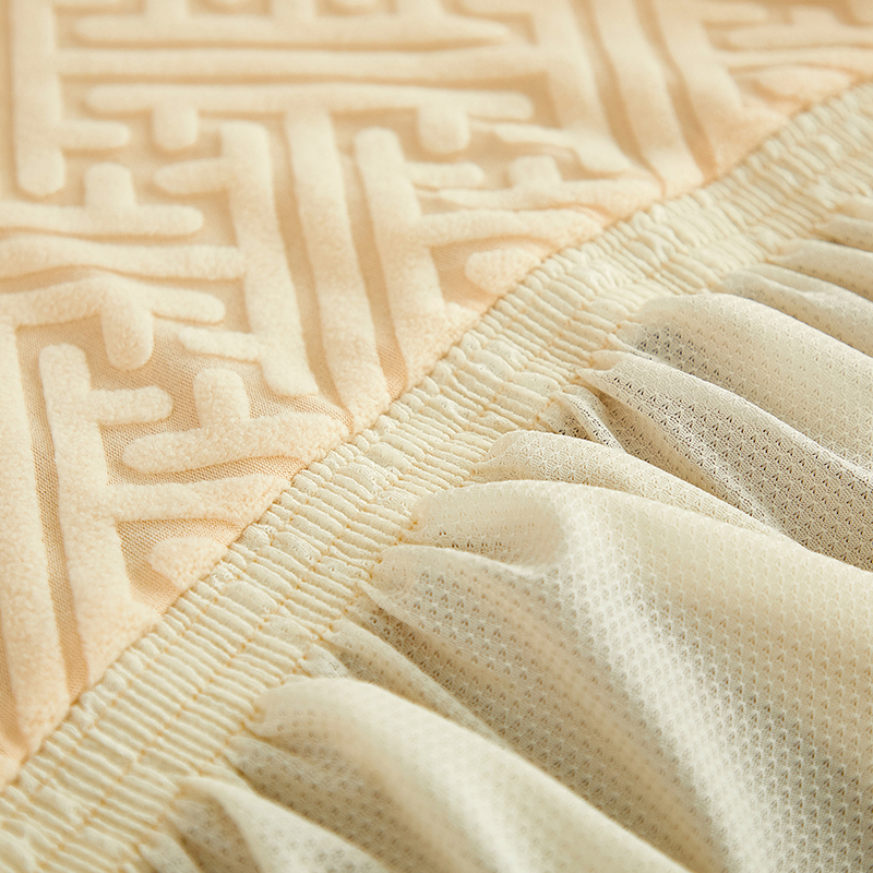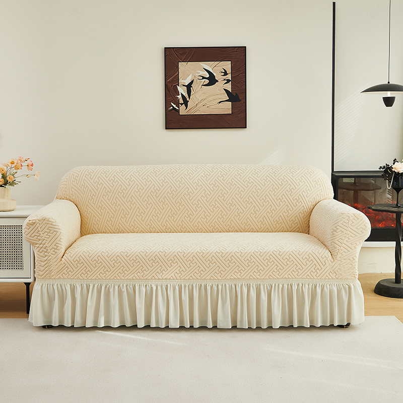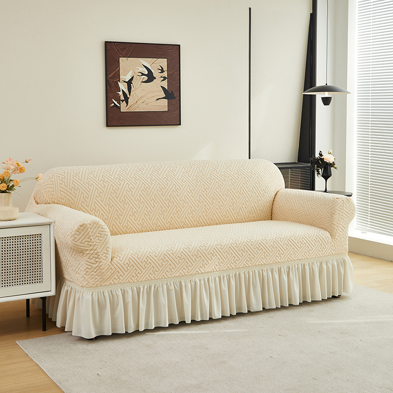 共鸣沙发套 2024新款拉绒提花系列沙发套(裙摆款) 拉绒米黄