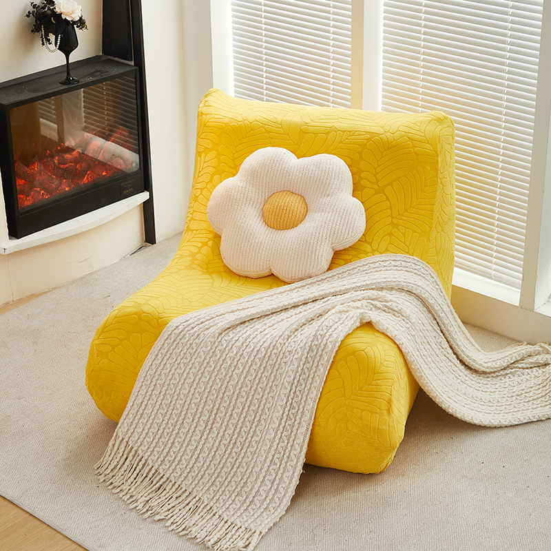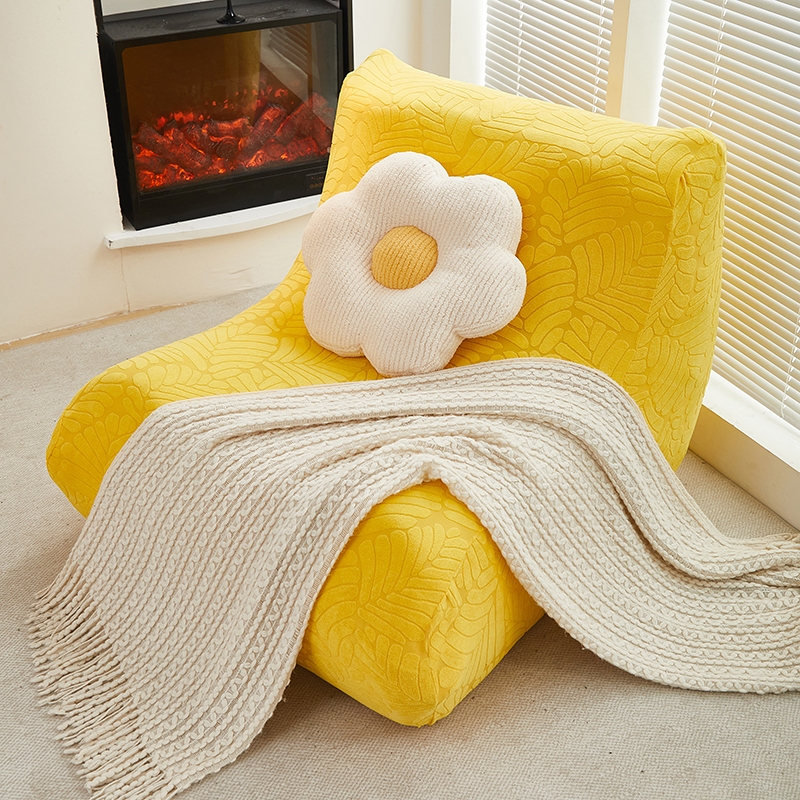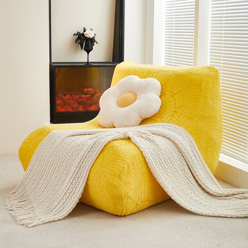 商品名称:共鸣沙发套 2024新款臻品提花系列懒人沙发套(织叶花系) 织叶柠黄