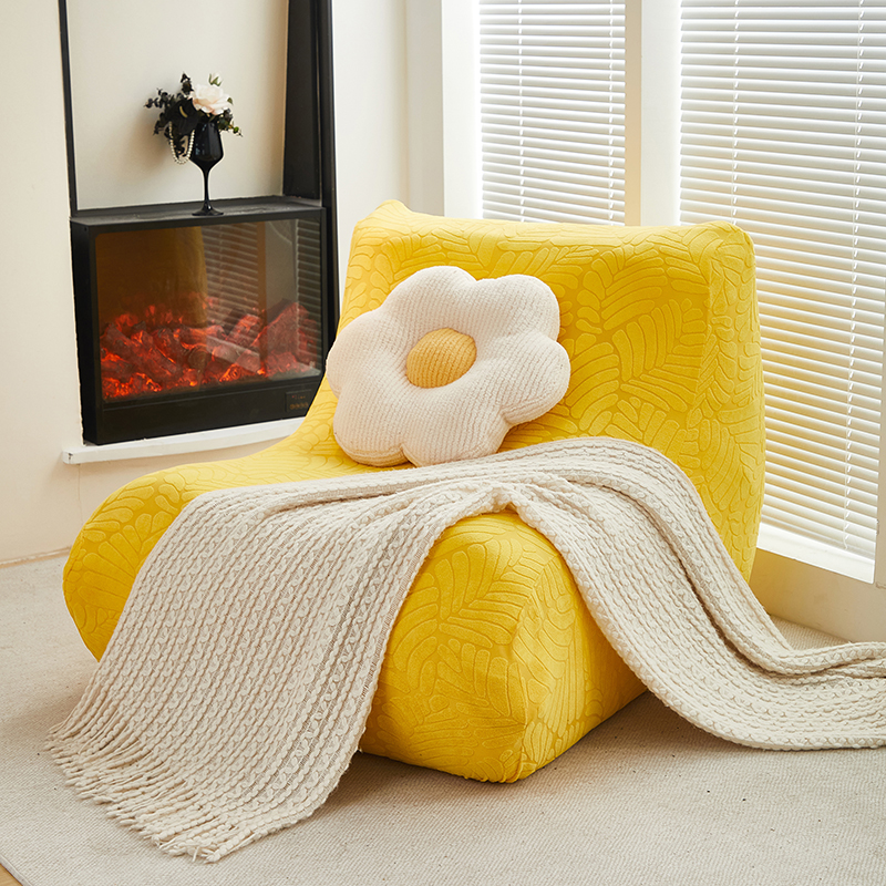 共鸣沙发套 2024新款臻品提花系列懒人沙发套(织叶花系) 织叶柠黄
