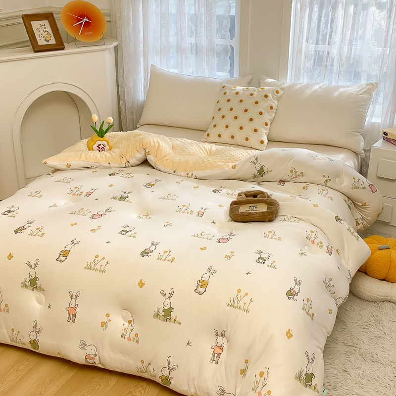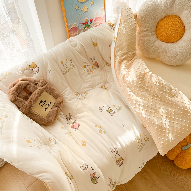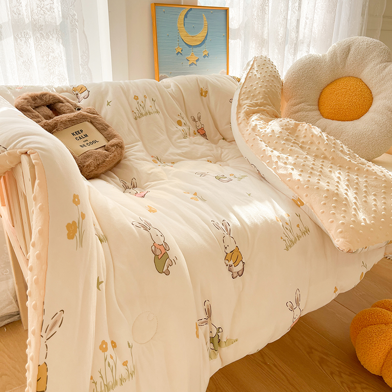 • 91家纺网 家纺一手货源 找家纺 (有买家秀 不断货)A类母婴级宝宝被子豆豆绒牛奶针织棉被儿童豆豆被大豆被春秋被秋冬被婴童被夏被夏凉被 牛奶针织被-花丛小兔(豆豆绒)