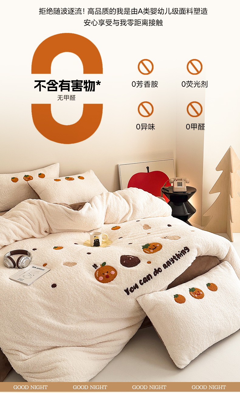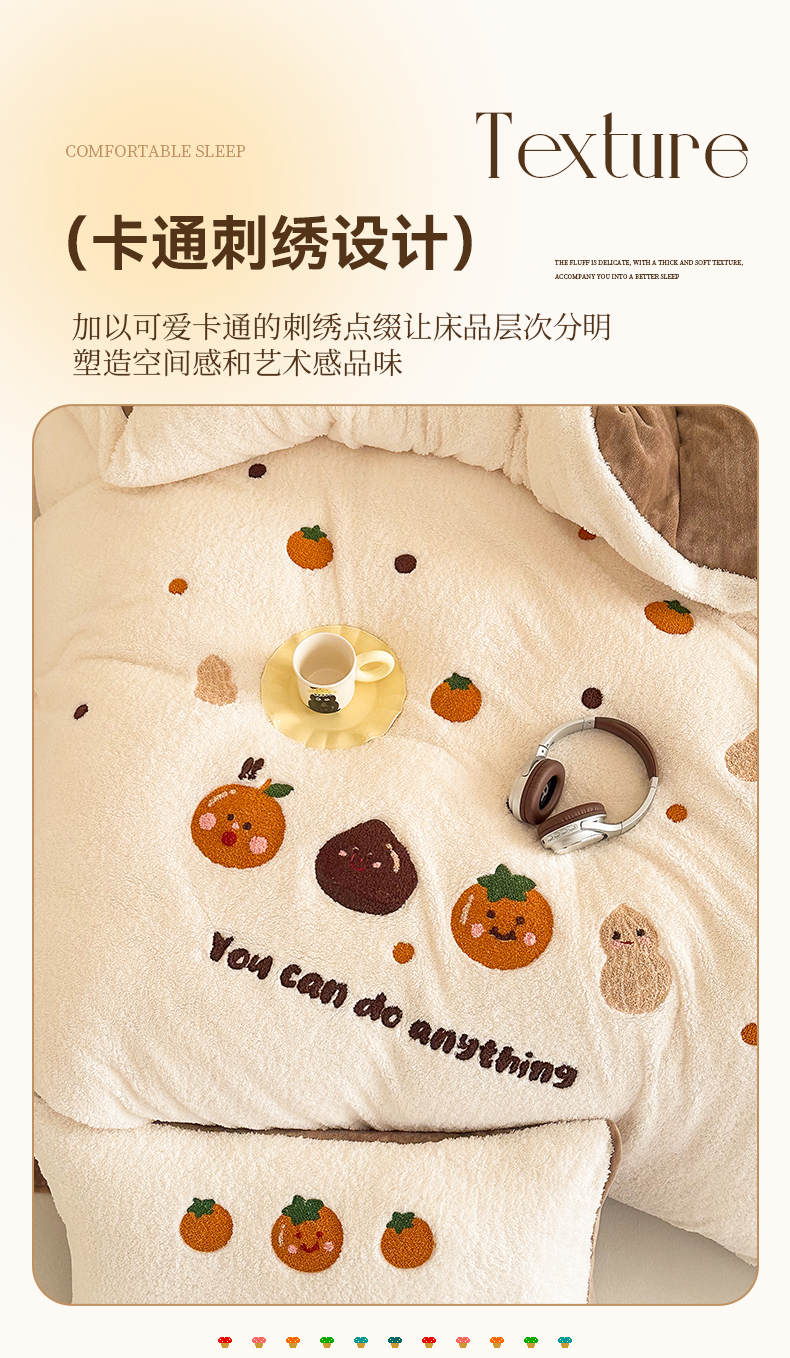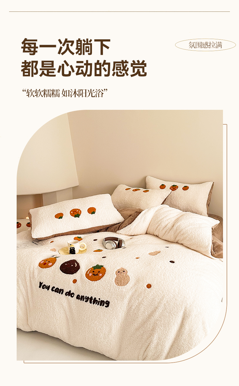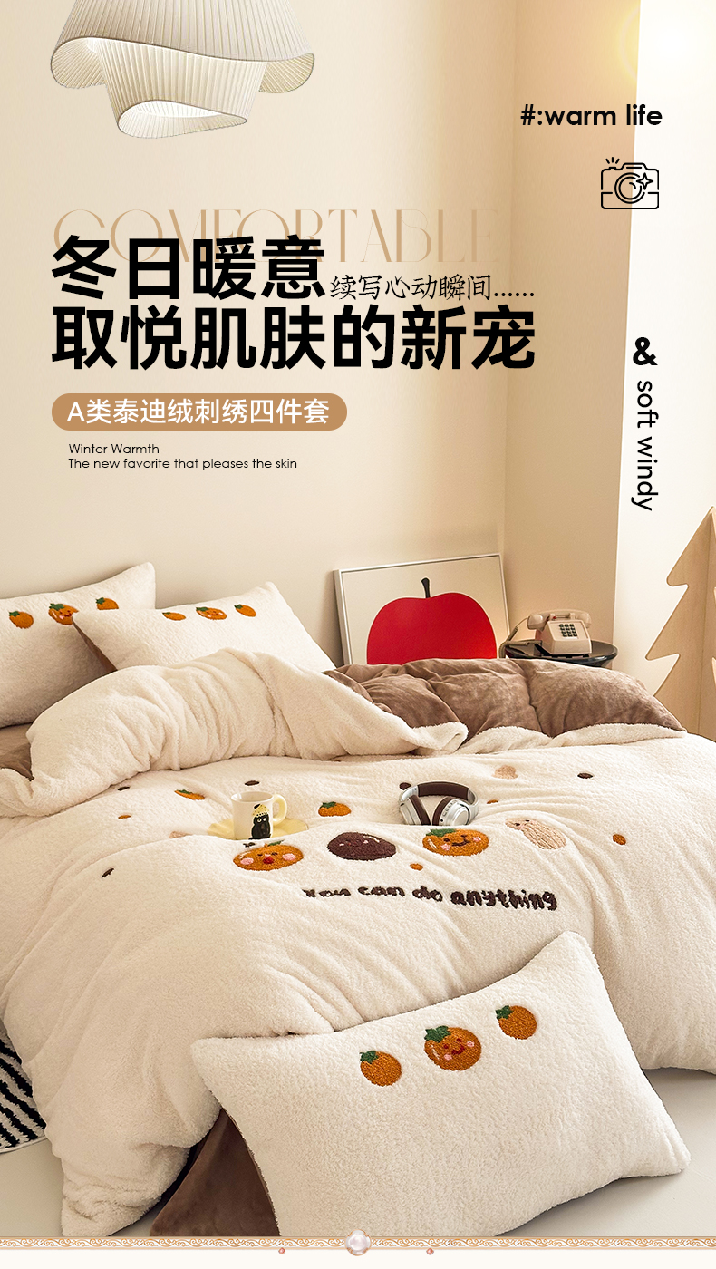 当前位置: 91家纺网 > 商品网购 > 床品套件 > 四件套 > 其它四件套 > 佰亿莱 2025新款泰迪绒蚂蚁绒刺绣四件套 蚂蚁绒柿子