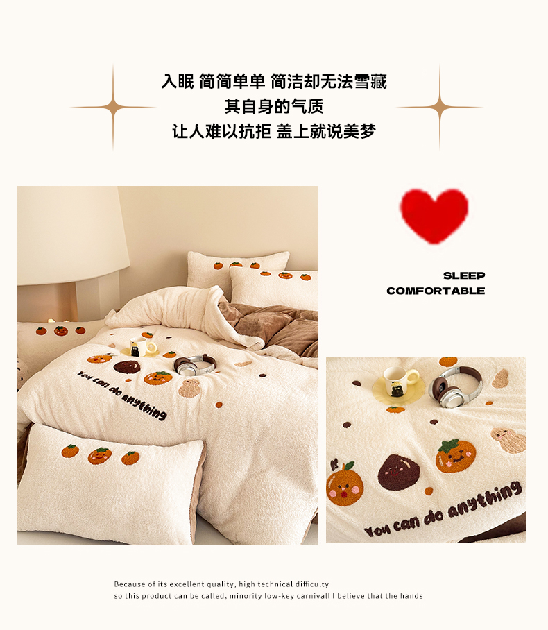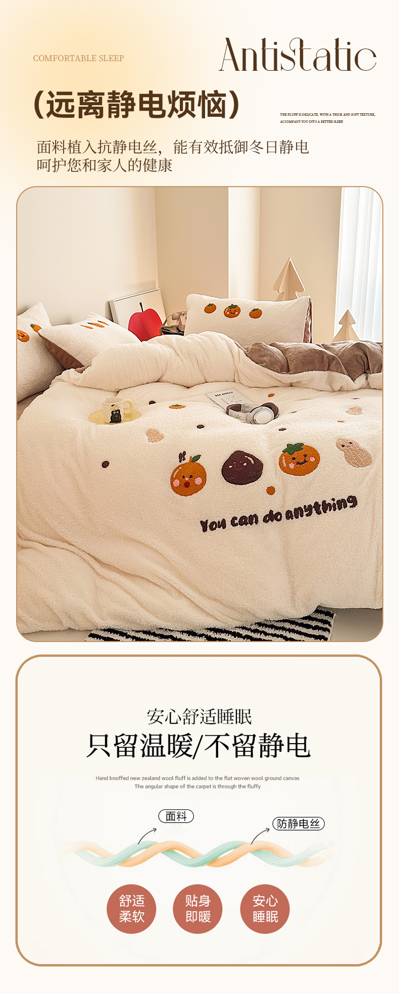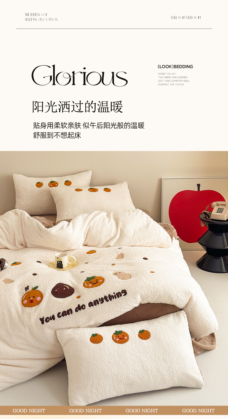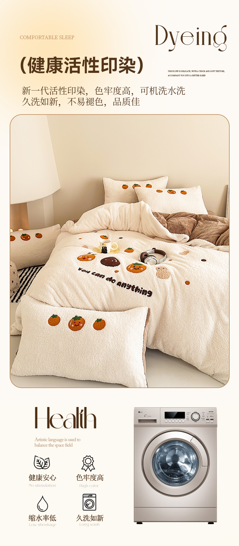 当前位置: 91家纺网 > 商品网购 > 床品套件 > 四件套 > 其它四件套 > 佰亿莱 2025新款泰迪绒蚂蚁绒刺绣四件套 蚂蚁绒柿子