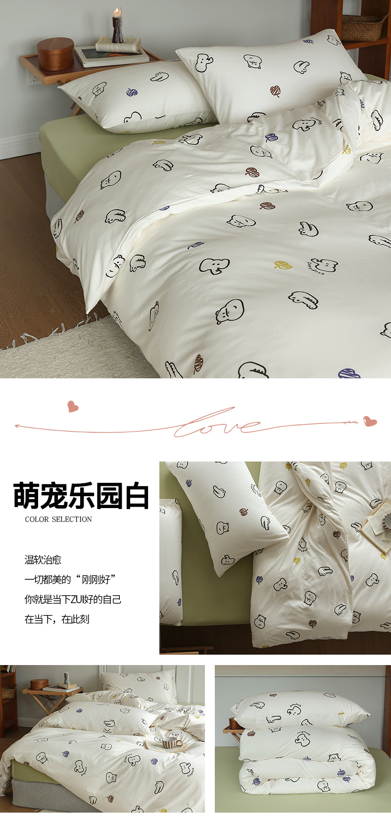 商品名称:绫韵家纺 2025春夏新品母婴A类全棉纯棉针织棉软糯糯小可爱卡通床单款四件套 萌宠乐园白