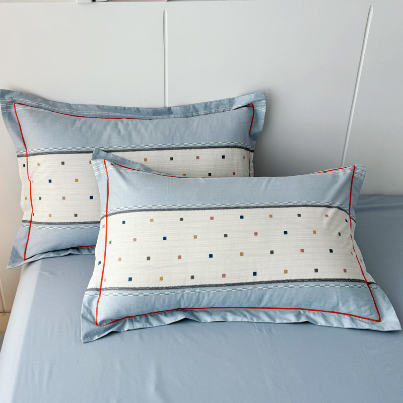 商品名称:2025新款13376宽幅全棉印花单枕套系列(有单品可定制) 时尚韵律-蓝