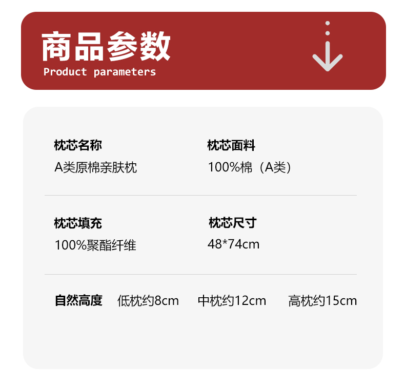 商品名称:(总)乐可 2025新款A类原棉亲肤枕枕头枕芯48*74cm