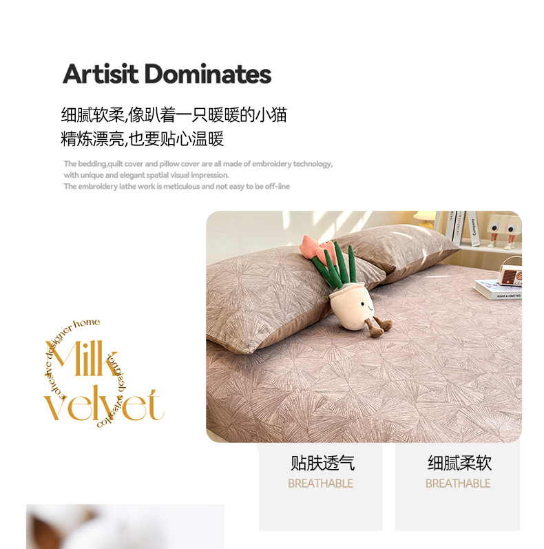 (总)简宜家居(朝初家纺) 2025新款印花兔兔绒+纯色牛奶绒双拼四件套,蝶影暖绒,米绒花絮,墨绒花-奶白,秋枝果绿,秋枝焦糖,一支秀-咖