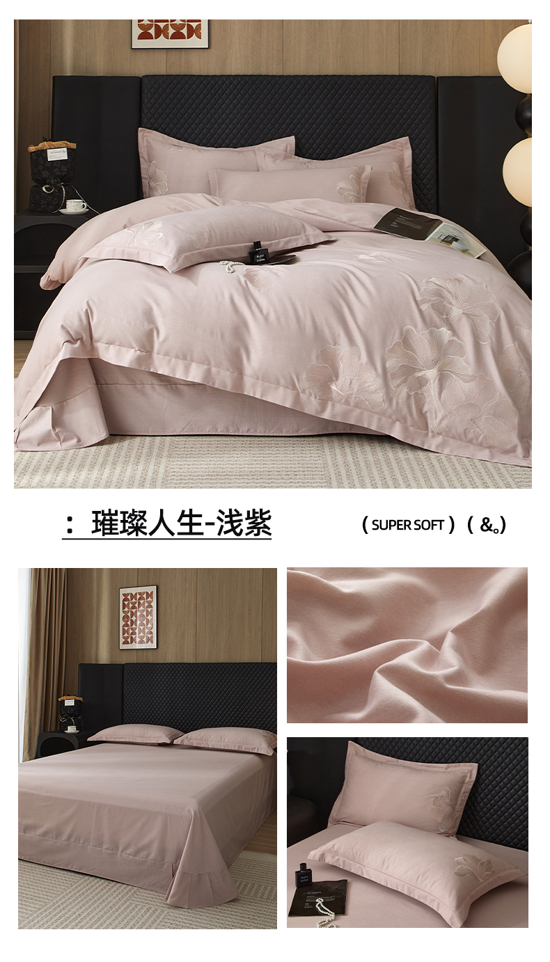 雲归梦 2025新款全棉加厚磨毛绣花宽边工艺四件套-璀璨人生 璀璨人生-浅紫