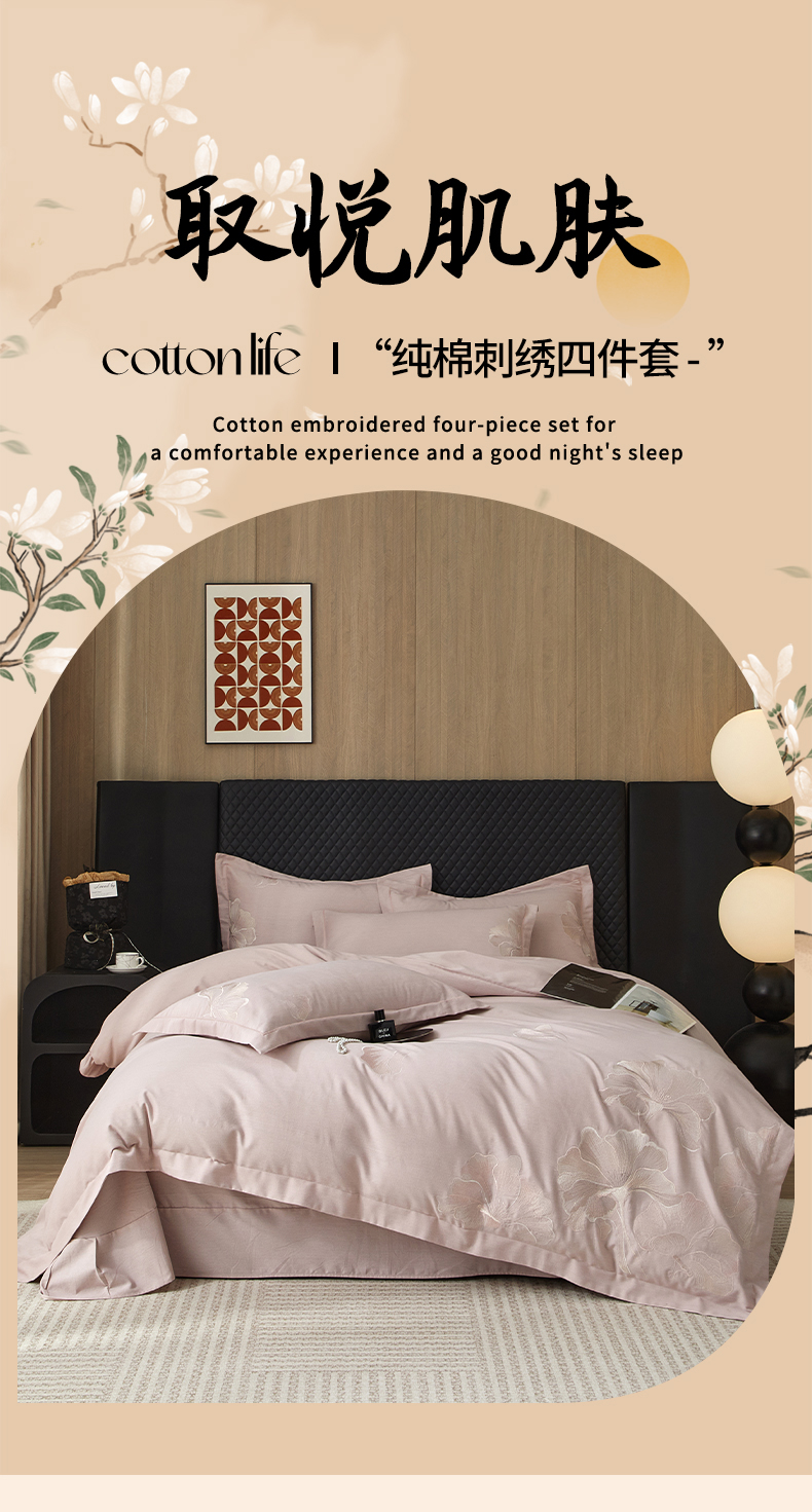 (总)雲归梦 2021新款全棉生态磨毛刺绣四件套,慕思-橙色,慕思-粉紫,慕思-灰,慕思-米黄,慕思-青绿,慕思-天蓝