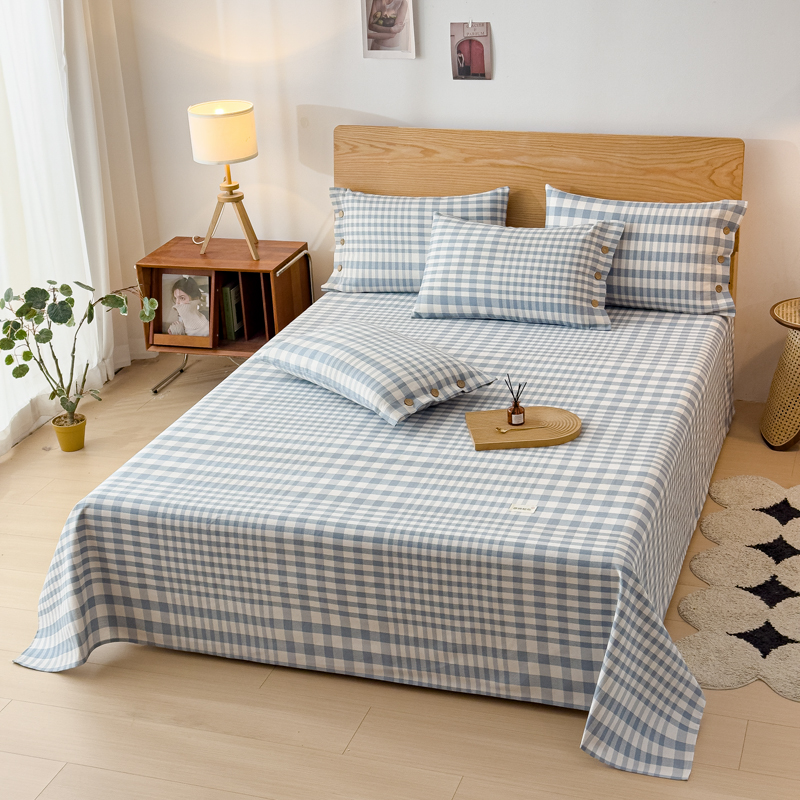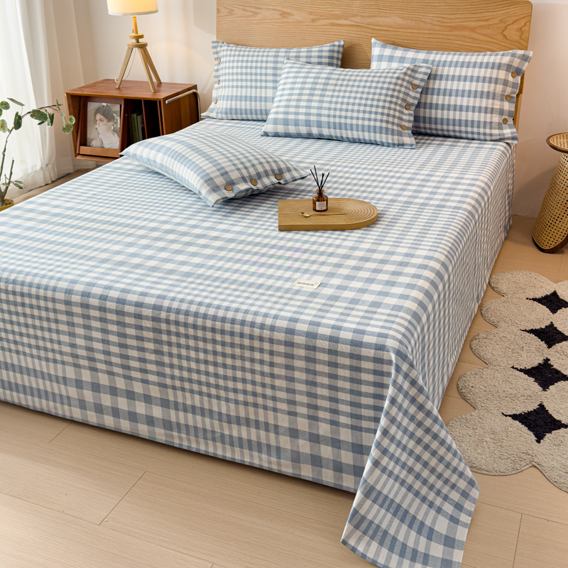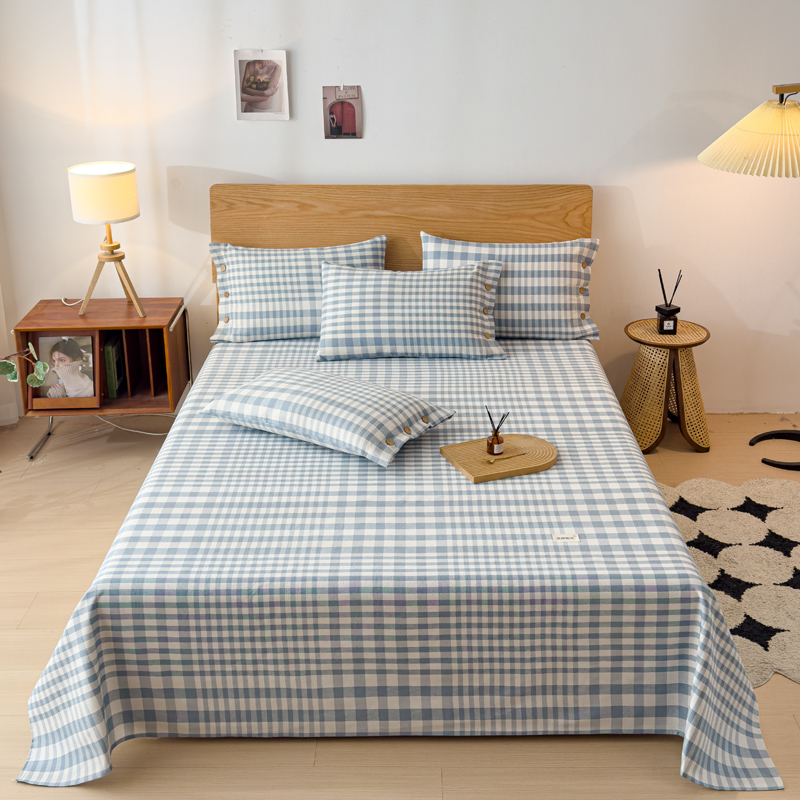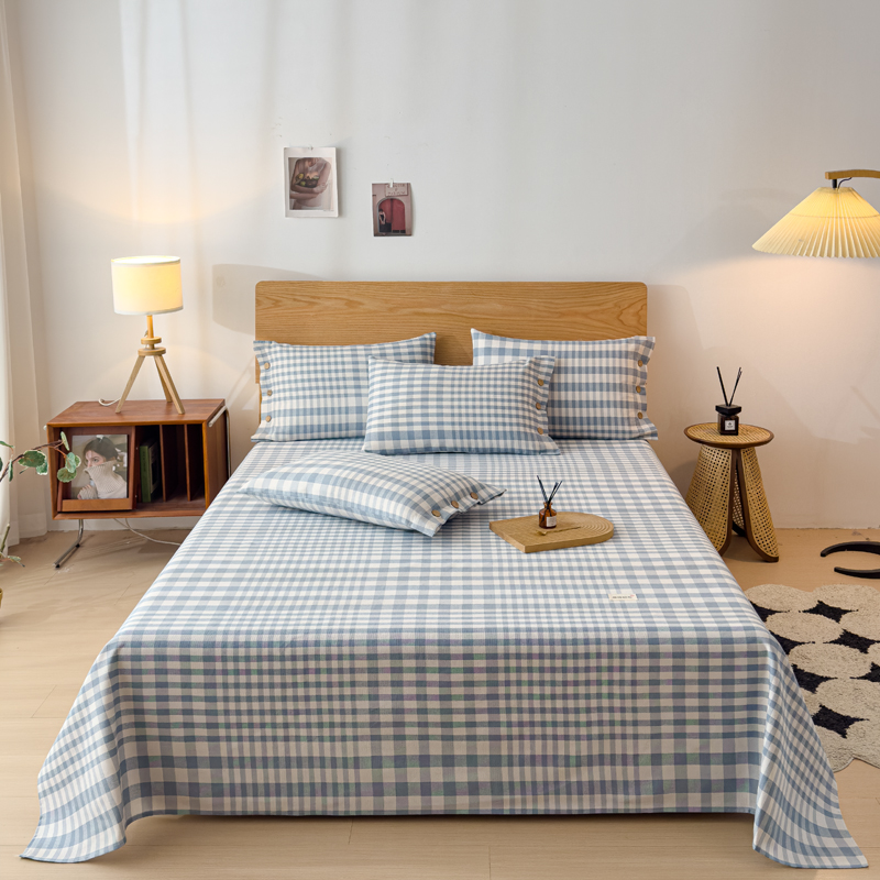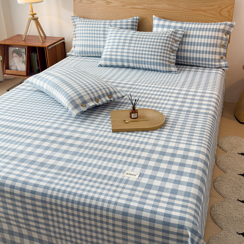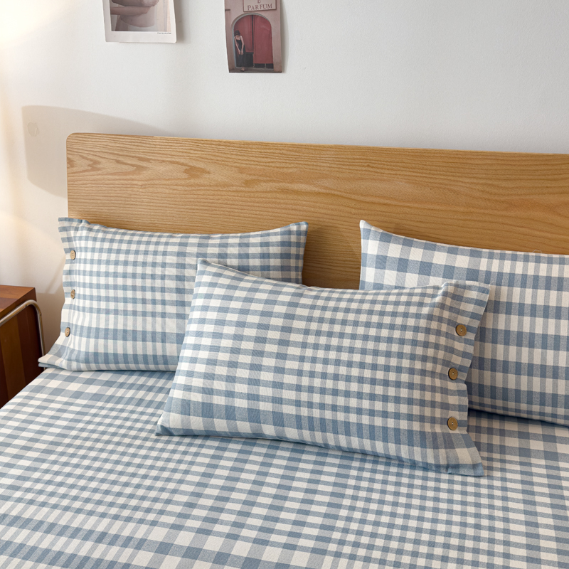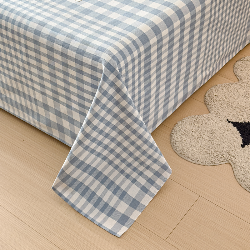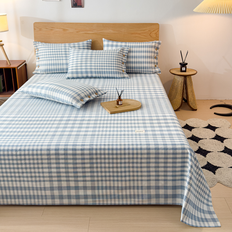 商品名称:仟网汇 2025新款无印纽扣原棉老粗布三件套 蓝白格