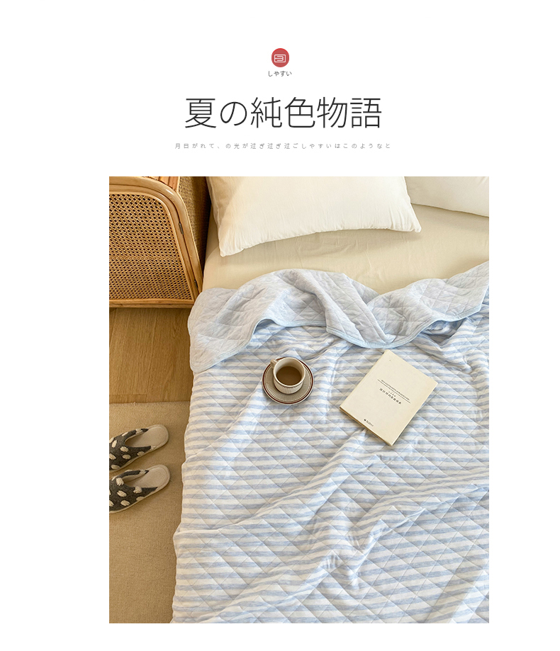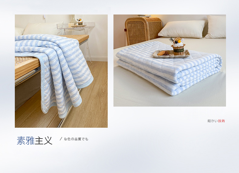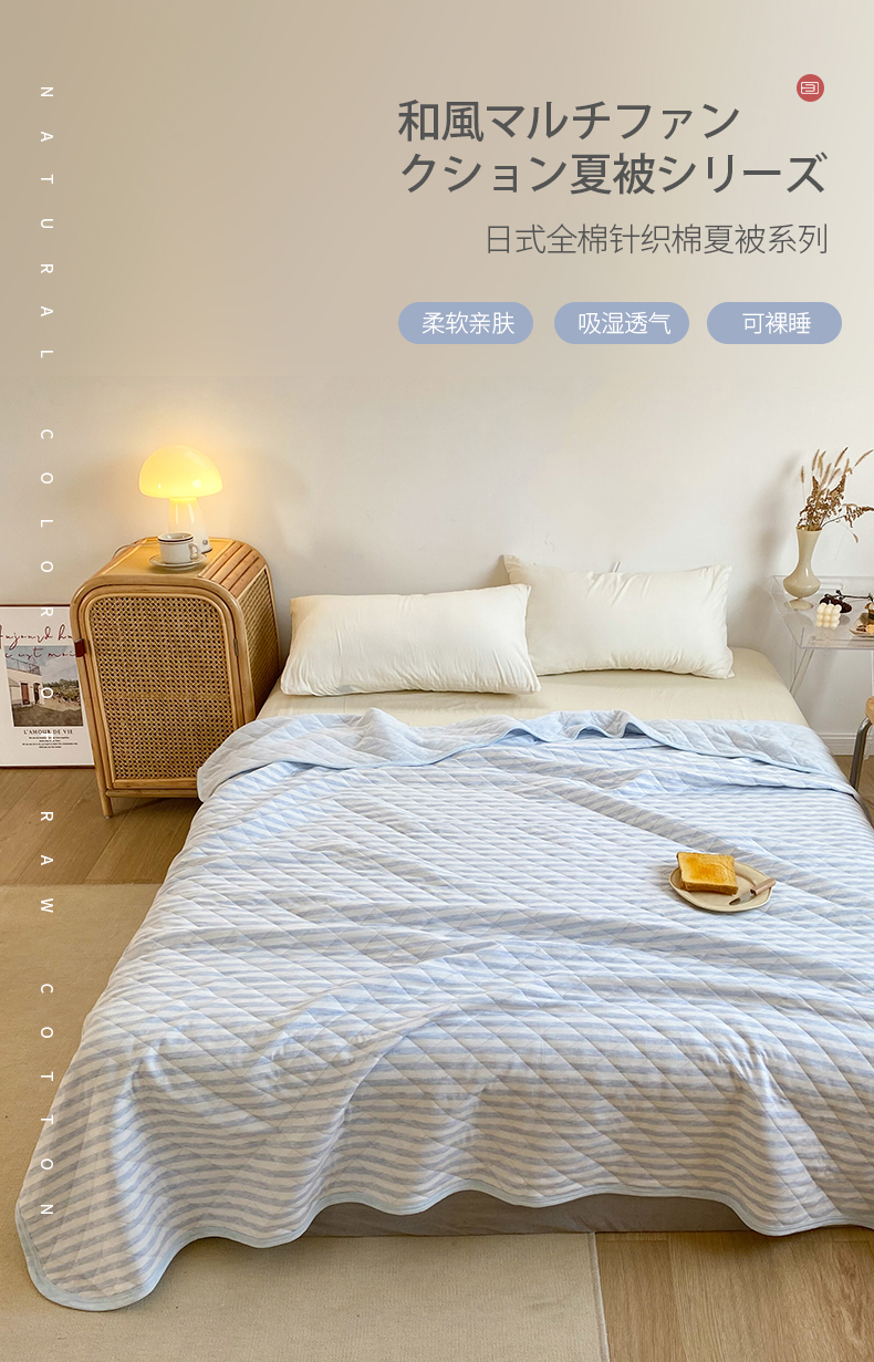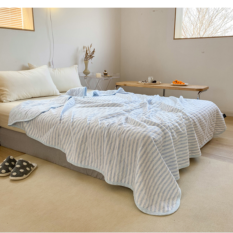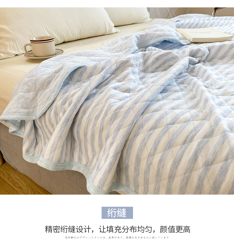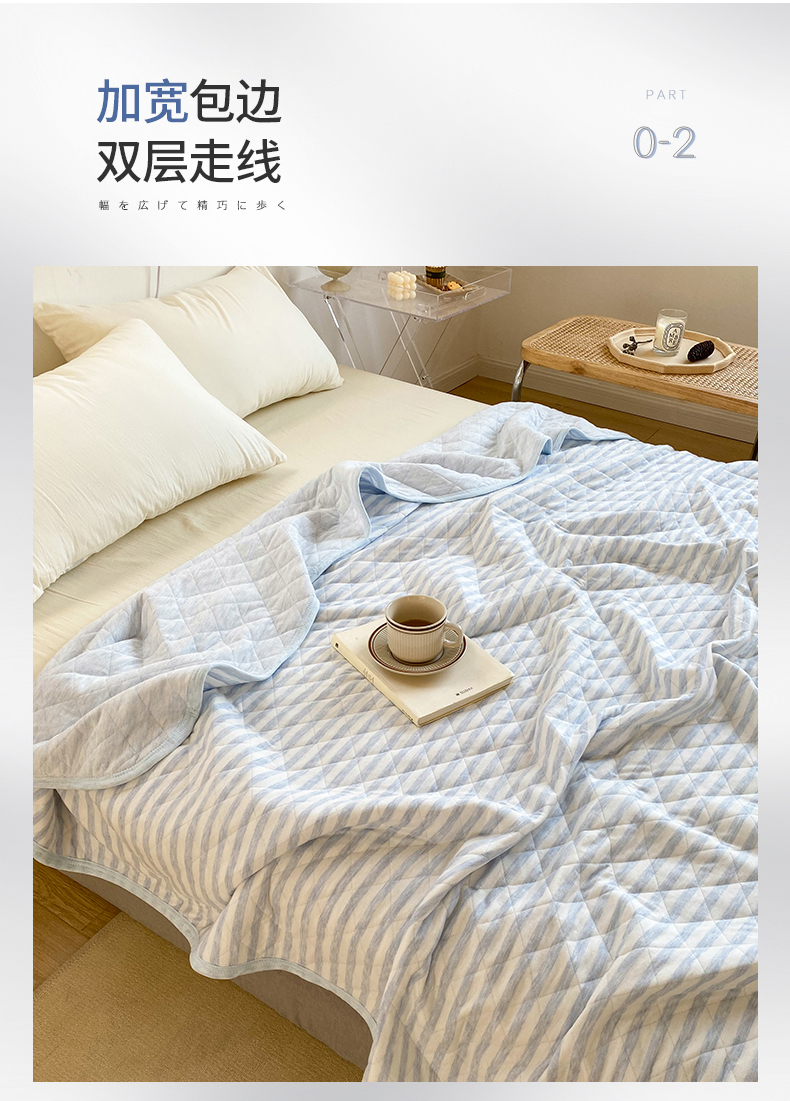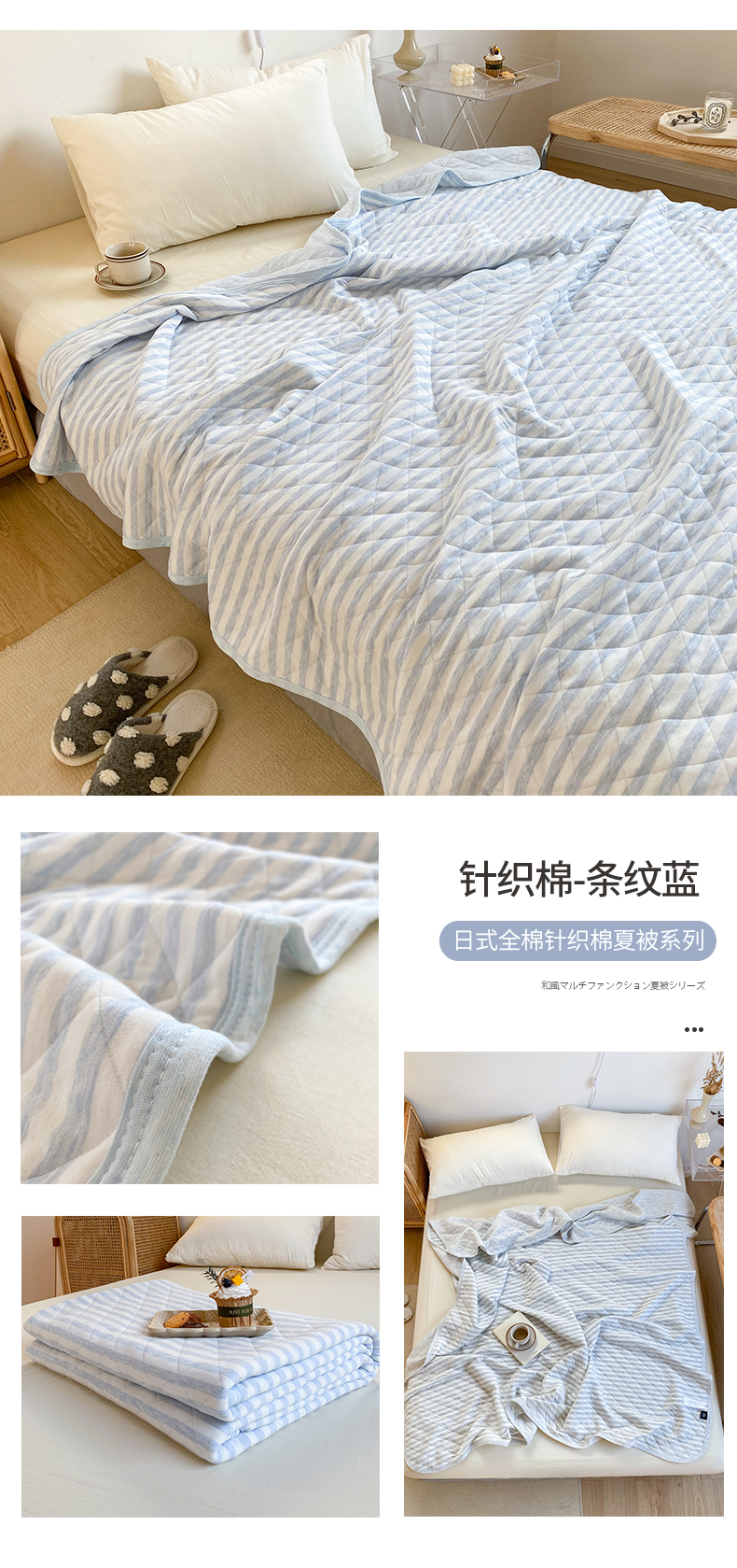 商品名称:尺素 2025新款针织棉夏被系列-条纹 条纹蓝