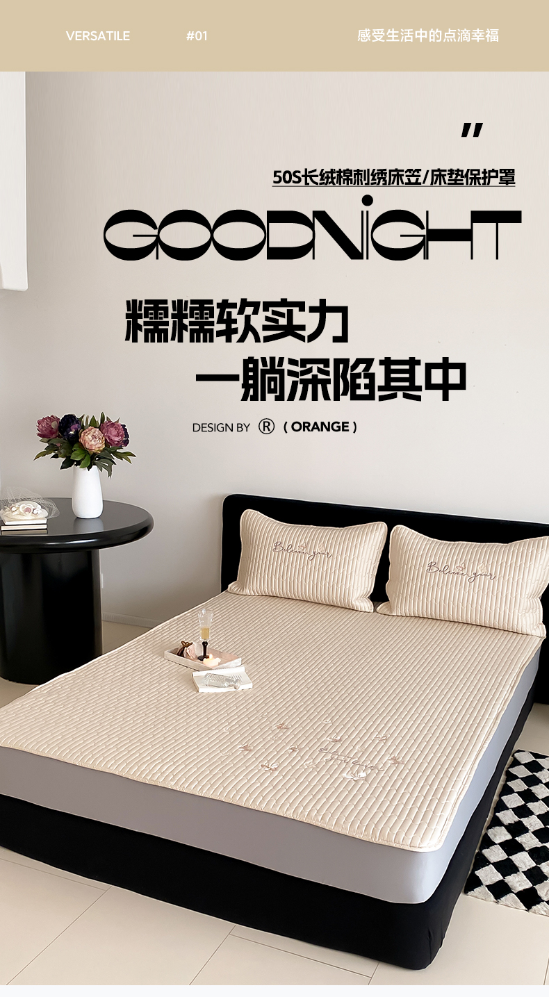 商品名称:(总)由有家居 2025新款50S双股长绒棉全棉刺绣绗缝夹棉床笠床垫保护罩