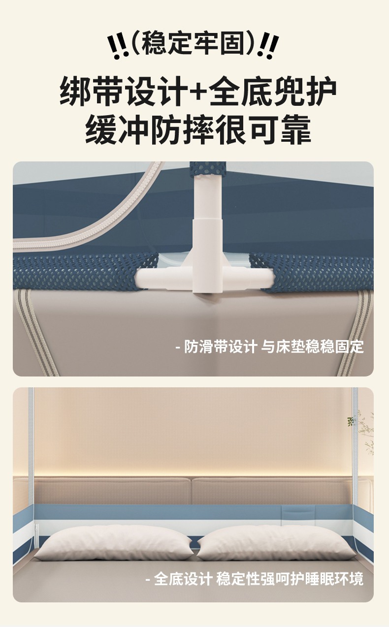 商品名称:青竹苑 2025新款双门全底外穿坐床式蚊帐儿童防摔防蚊拉链方帐 大方加密灰