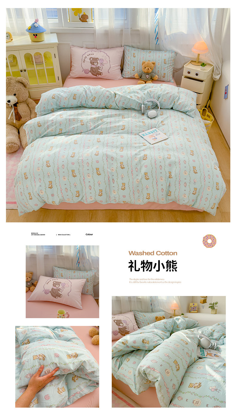 宏源家纺 2025新款A类水洗云朵棉单被套 礼物小熊