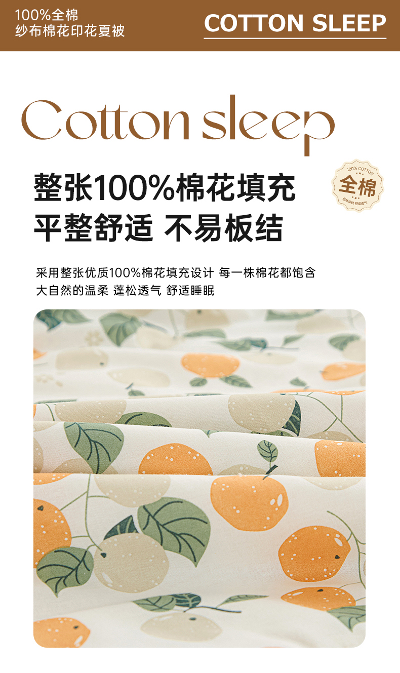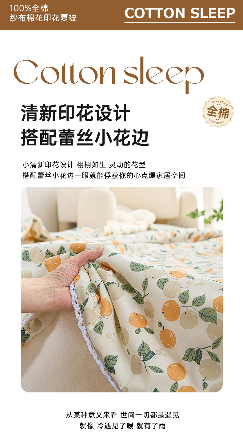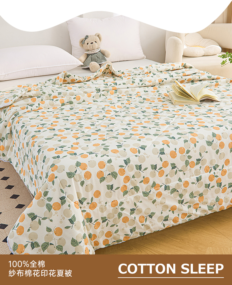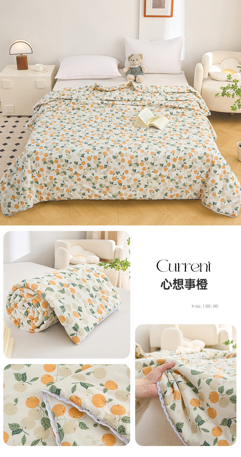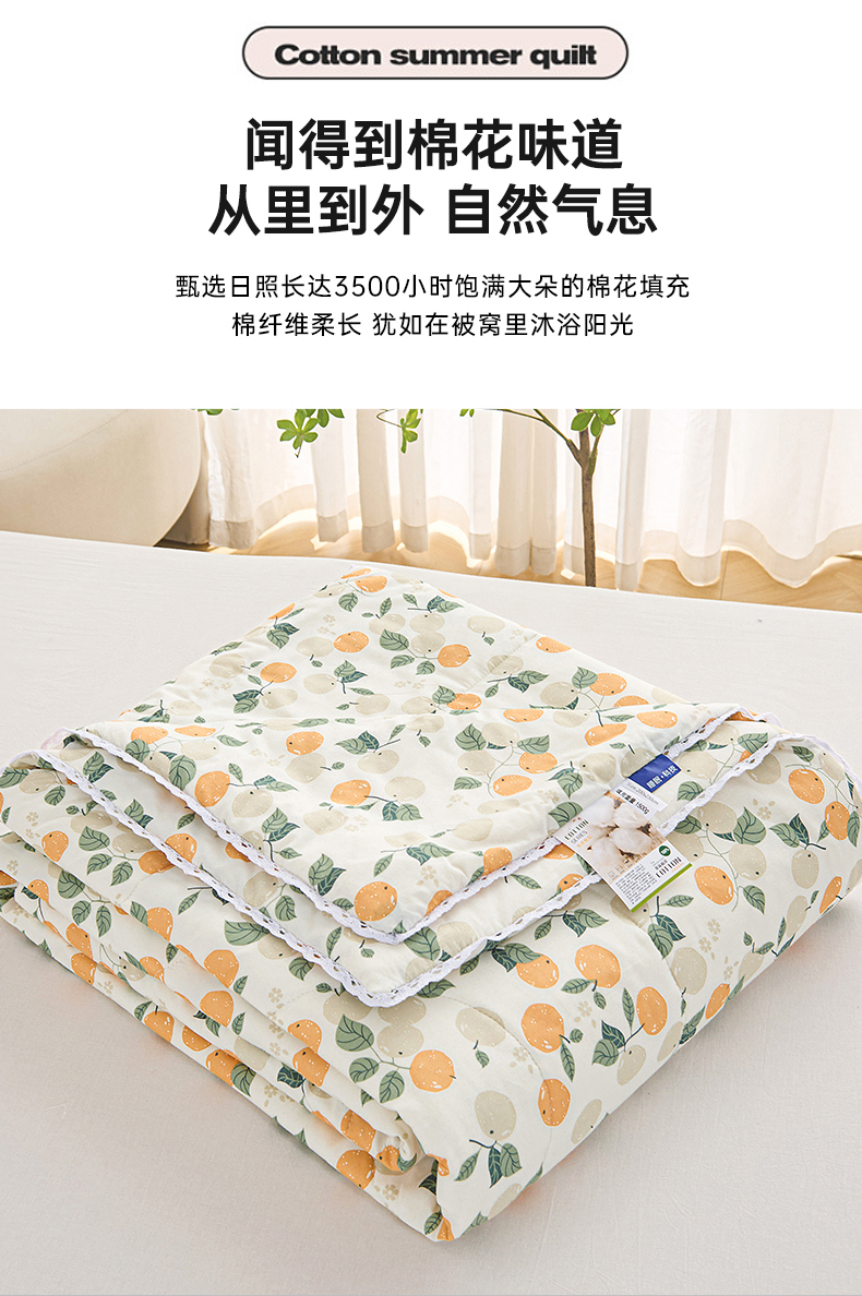 商品名称:金泰莱 2025新款里外全棉夏被纱布夏被棉花被子夏凉被纯棉夏被空调被 心想事橙