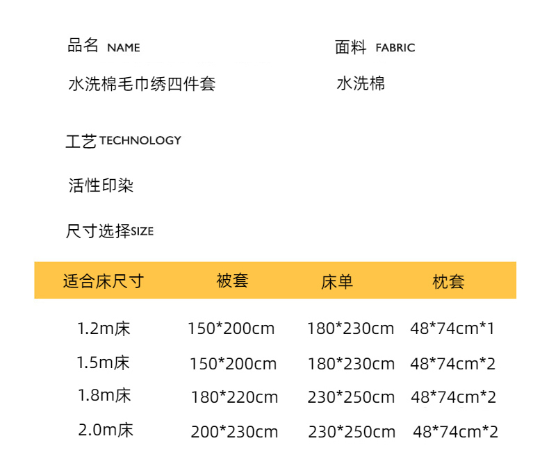1.8m床笠款四件套-被套200*230 | ¥74.00 |