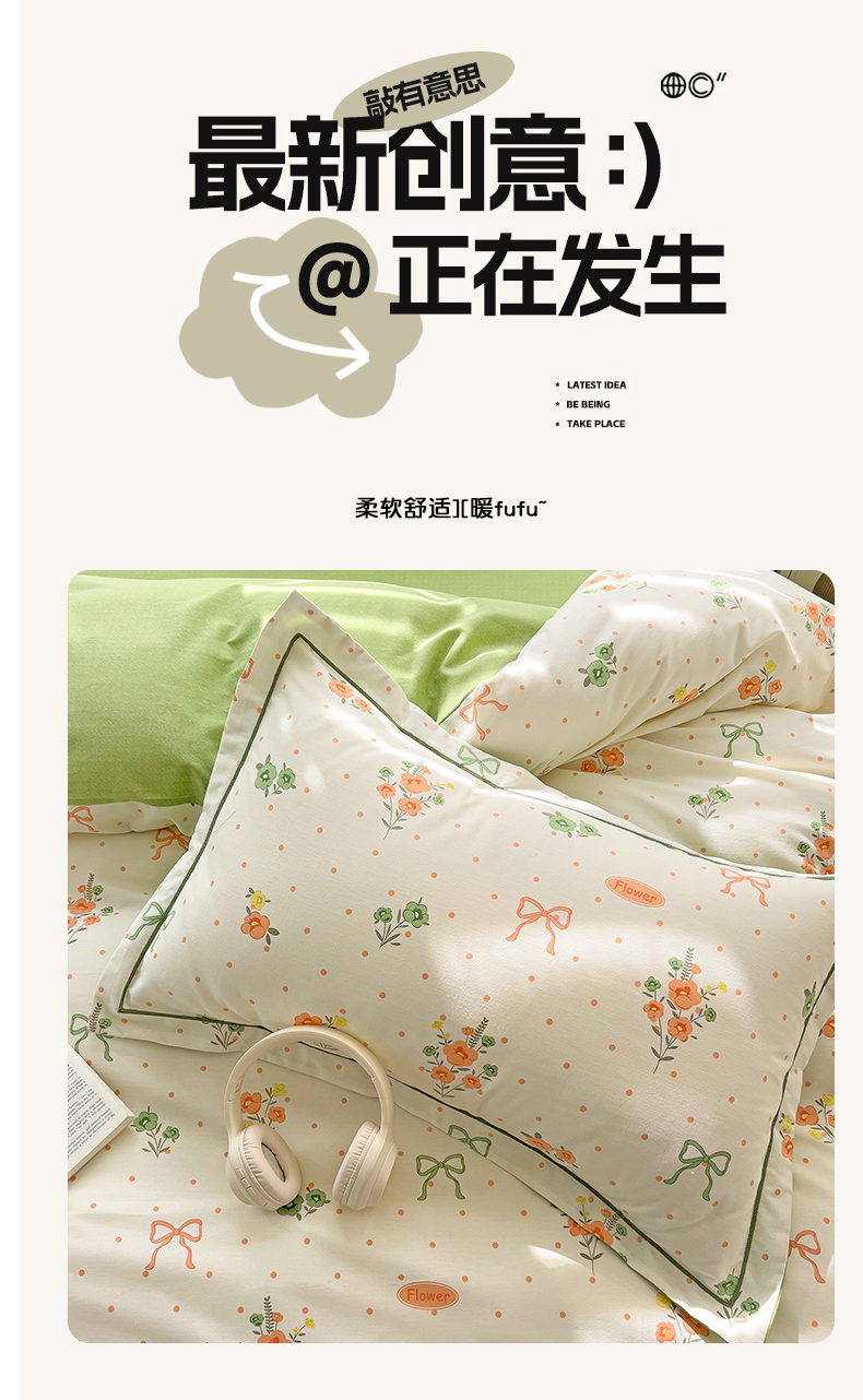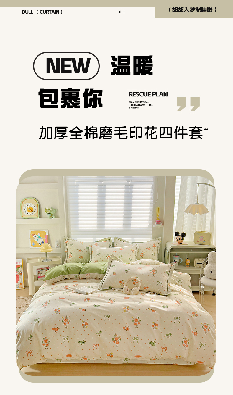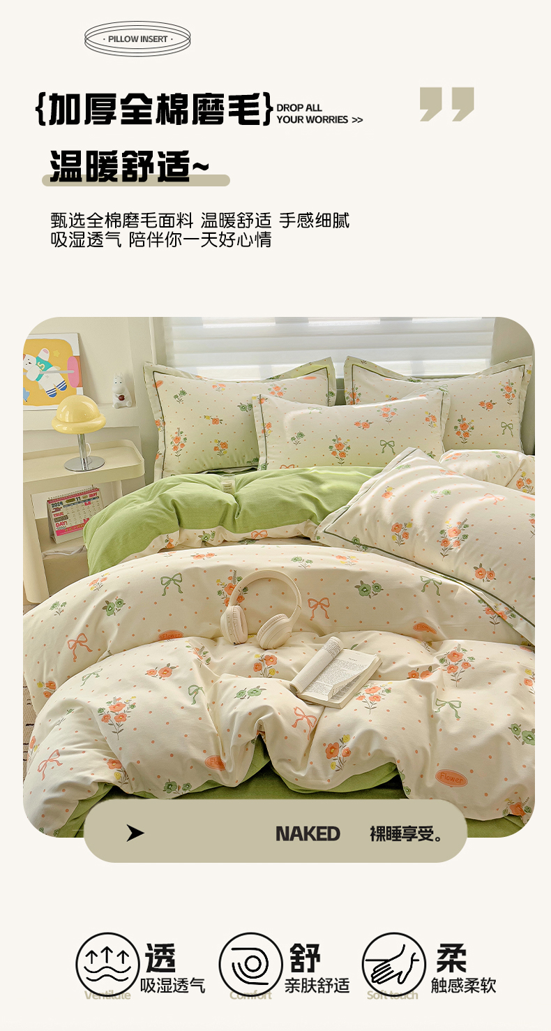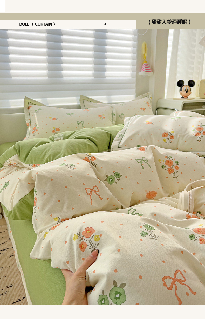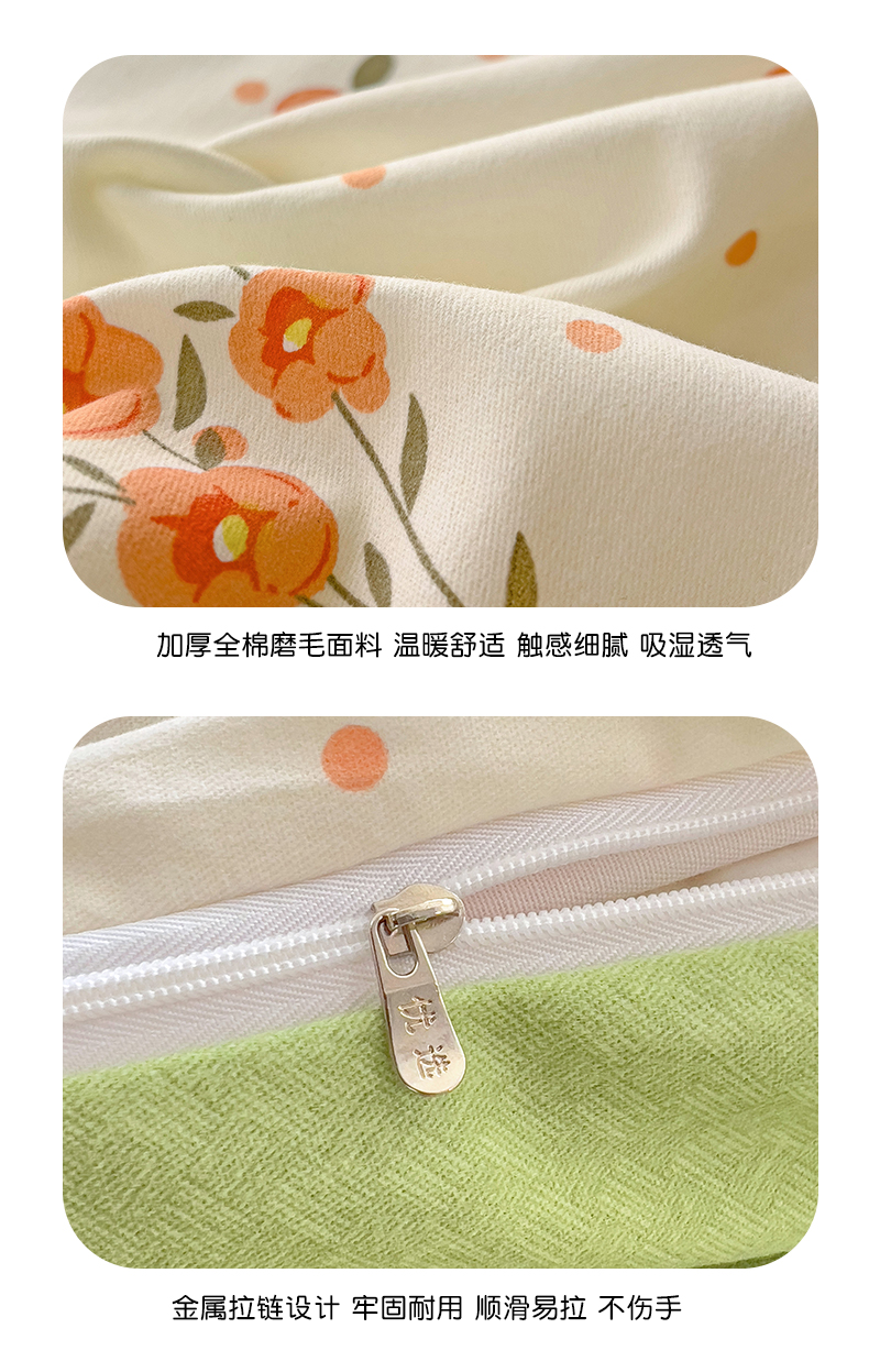 商品名称:暖芯优选 2025新款小清新印花全棉磨毛四件套 长相思