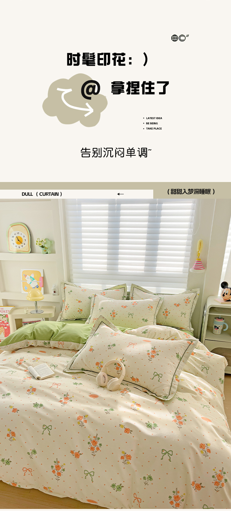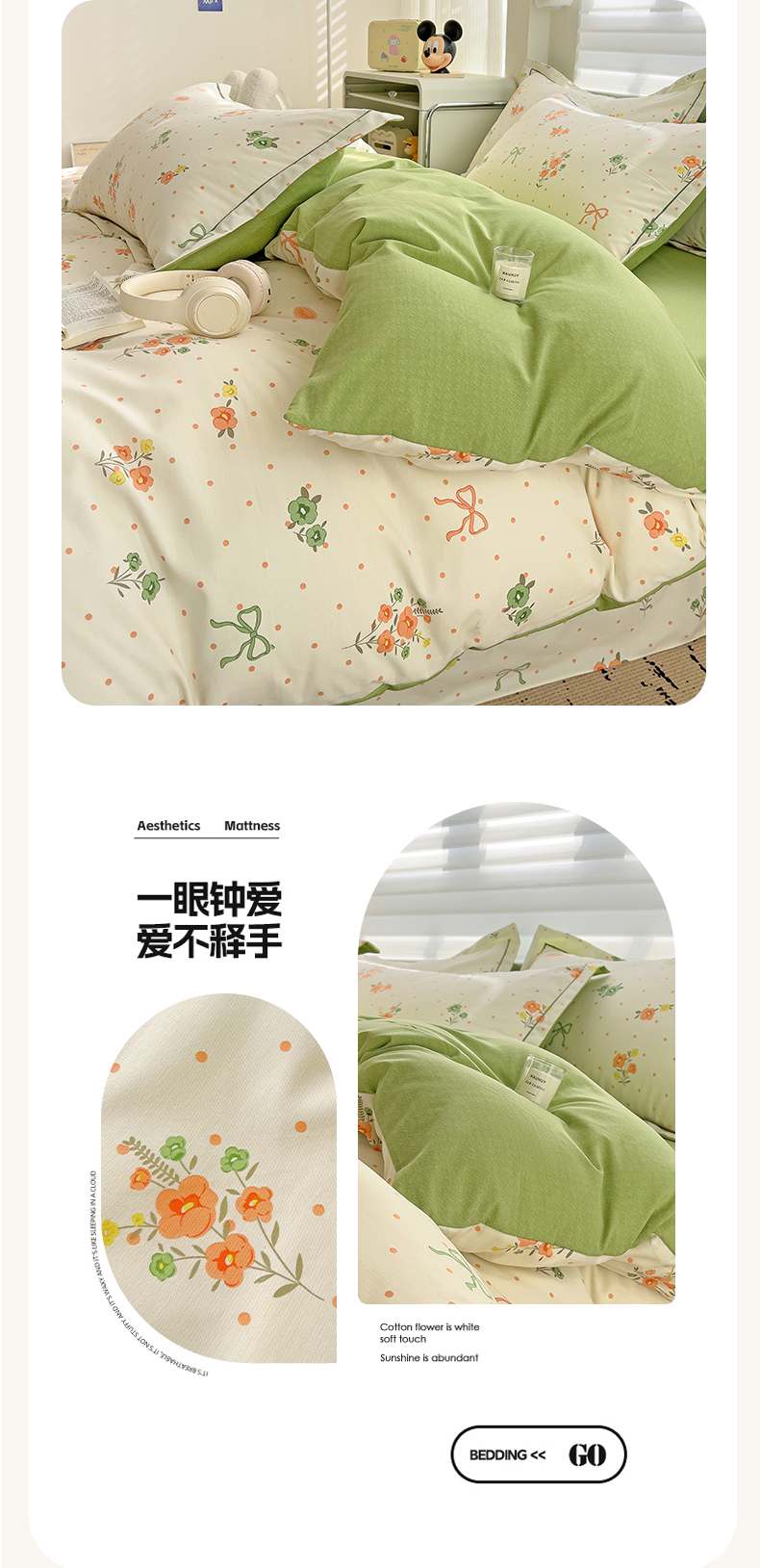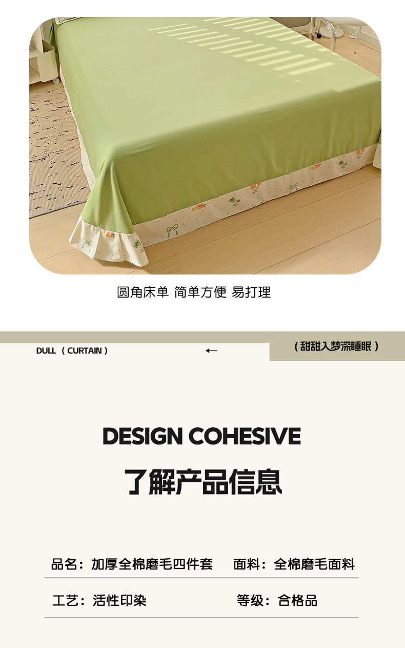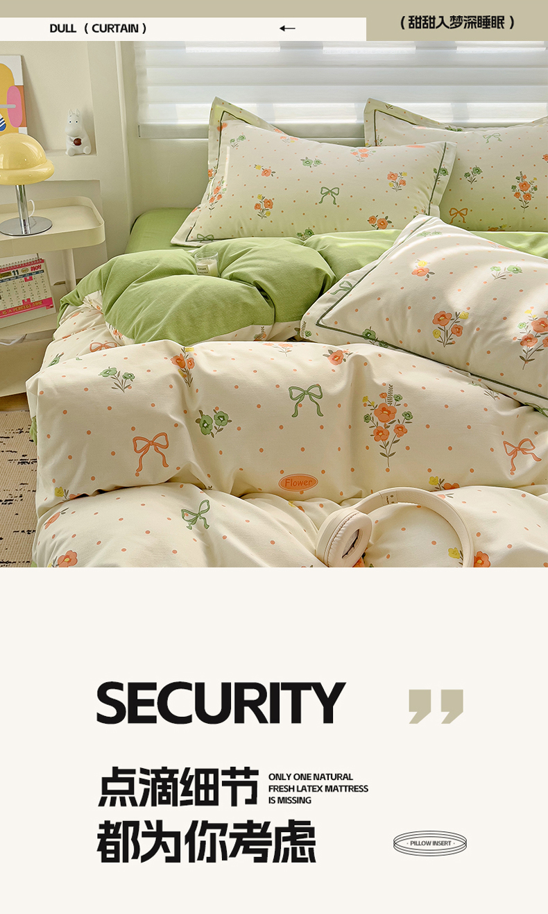 商品名称:暖芯优选 2025新款小清新印花全棉磨毛四件套 长相思