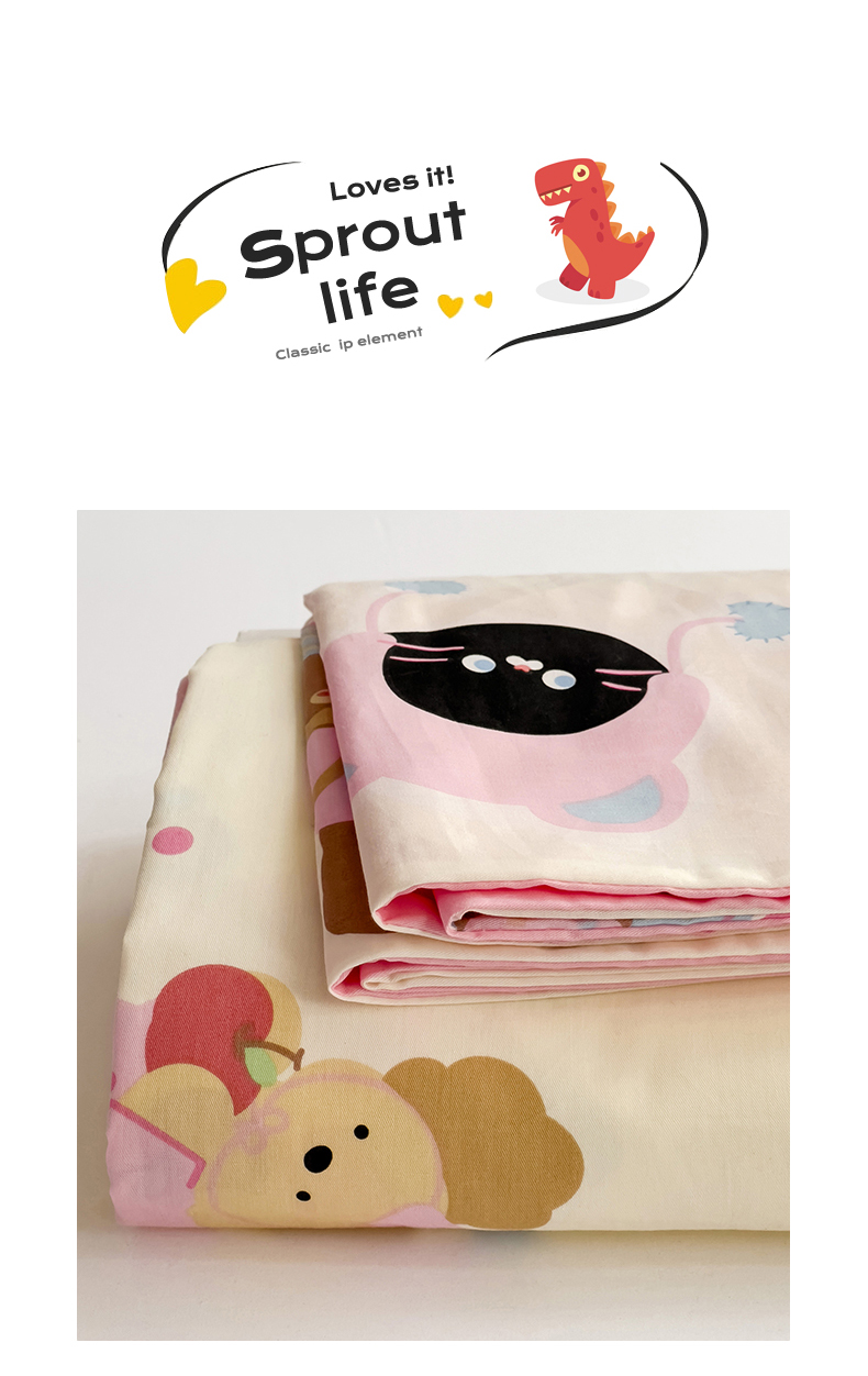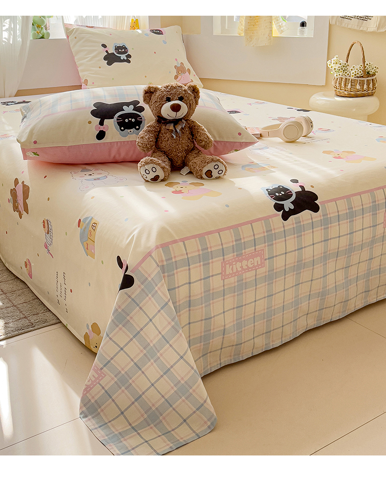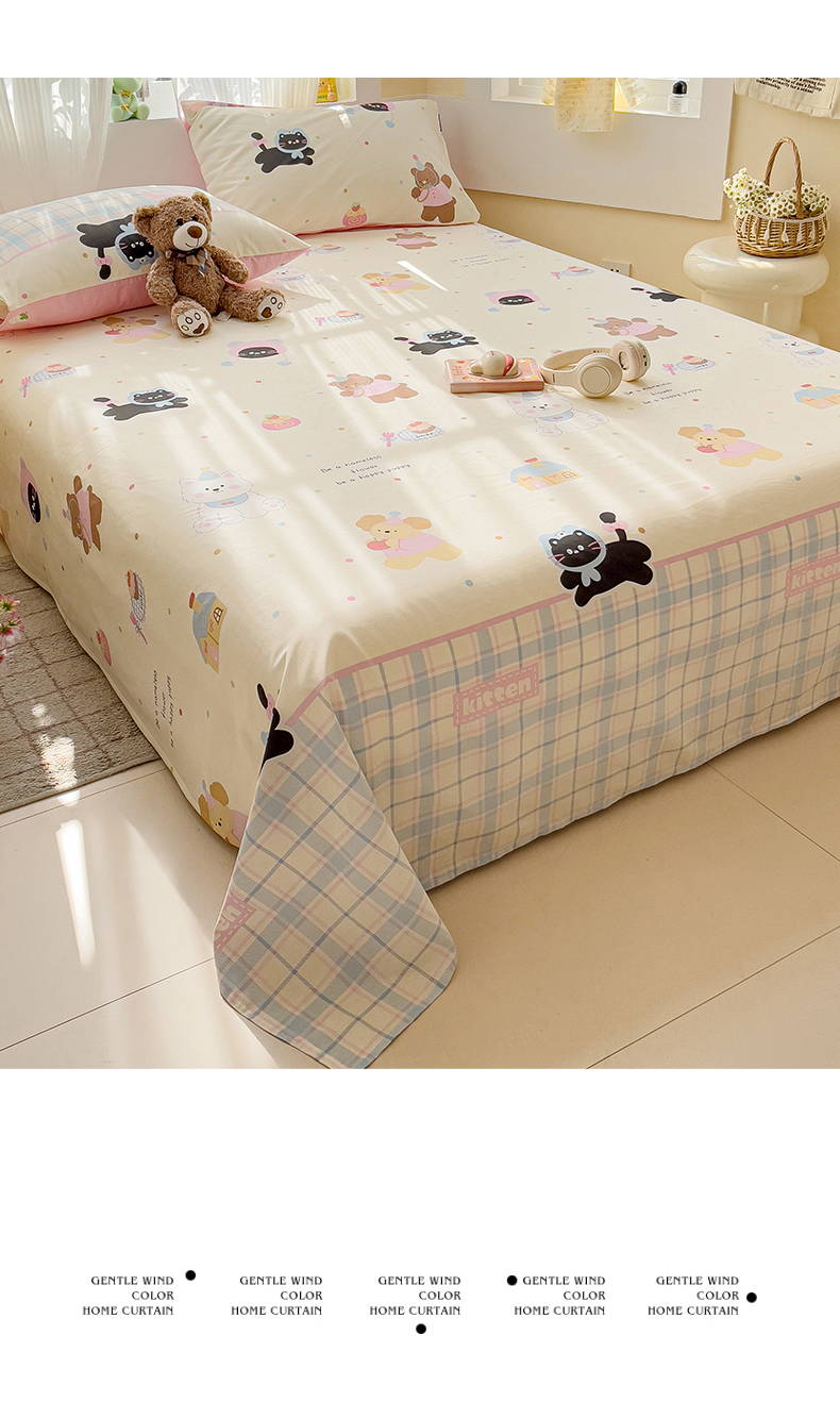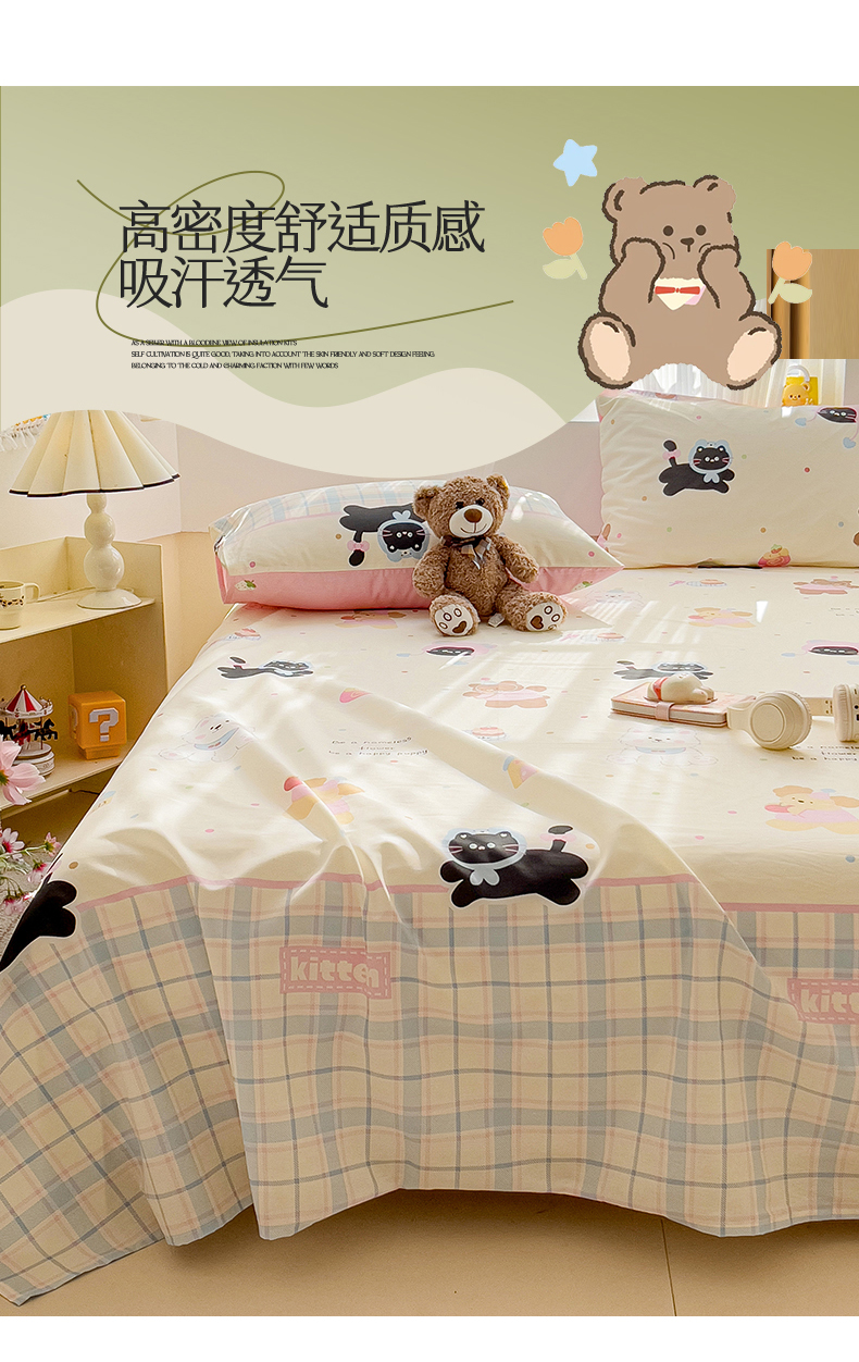 • 91家纺网 家纺一手货源 找家纺 名兮家居 2025新款13372全棉印花四件套单品系列-单床单 可爱喵