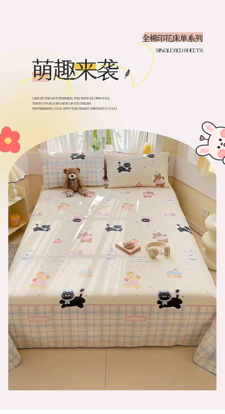 名兮家居 2025新款13372全棉印花四件套单品系列-单床单 可爱喵