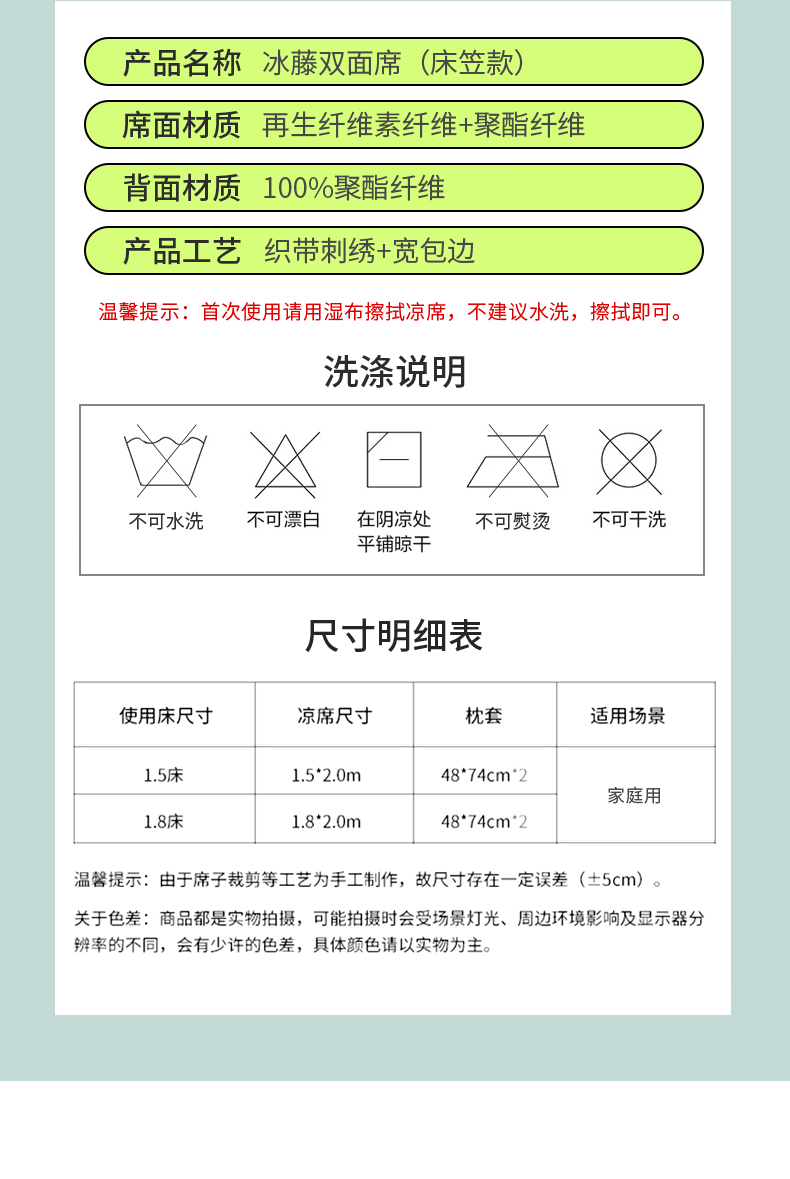 商品名称:(总)阿牛席业2025新款冰藤凉席系列冰藤清爽床笠席