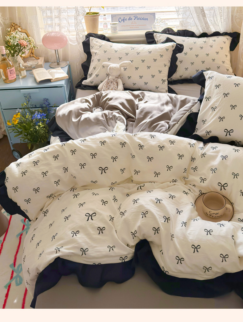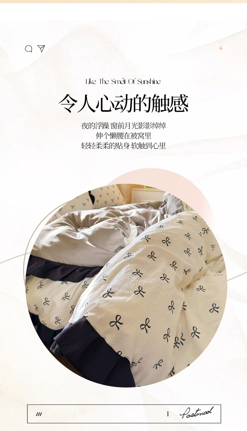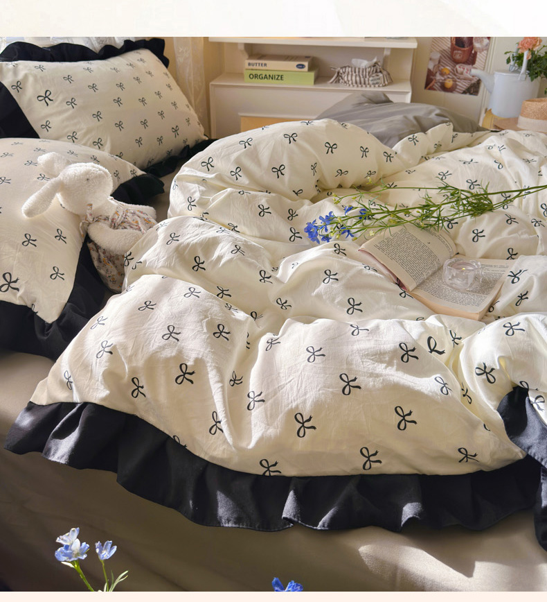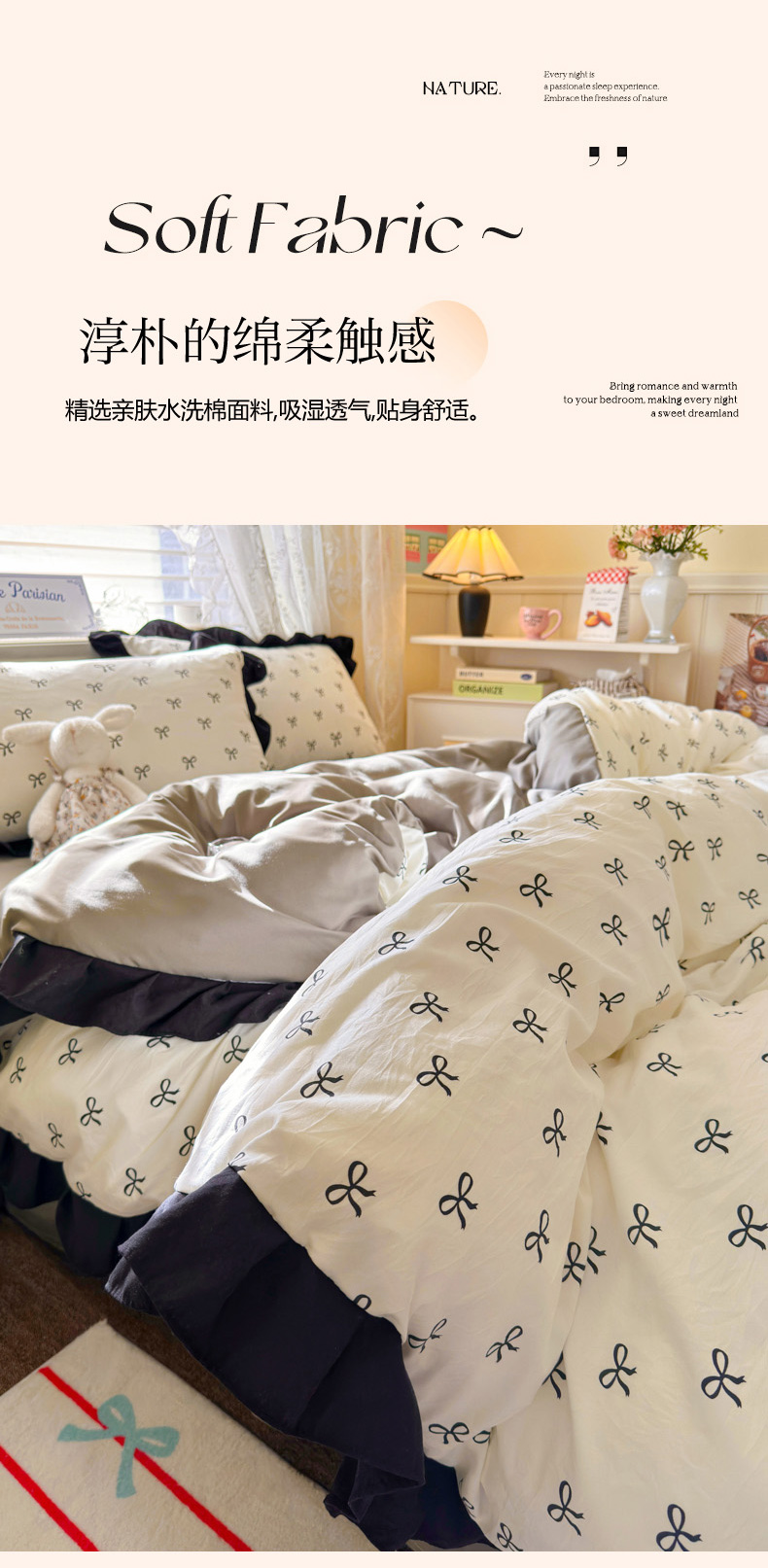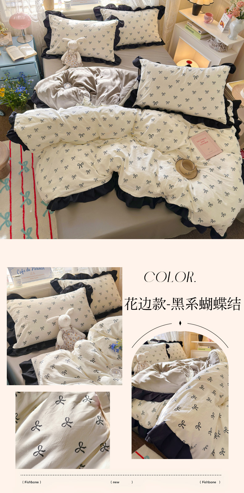 当前位置: 91家纺网 > 商品网购 > 床品套件 > 四件套 > 水洗棉四件套 > 慕澄家纺 2025新款法式浪漫风花边款水洗棉四件套 花边款-黑系蝴蝶结