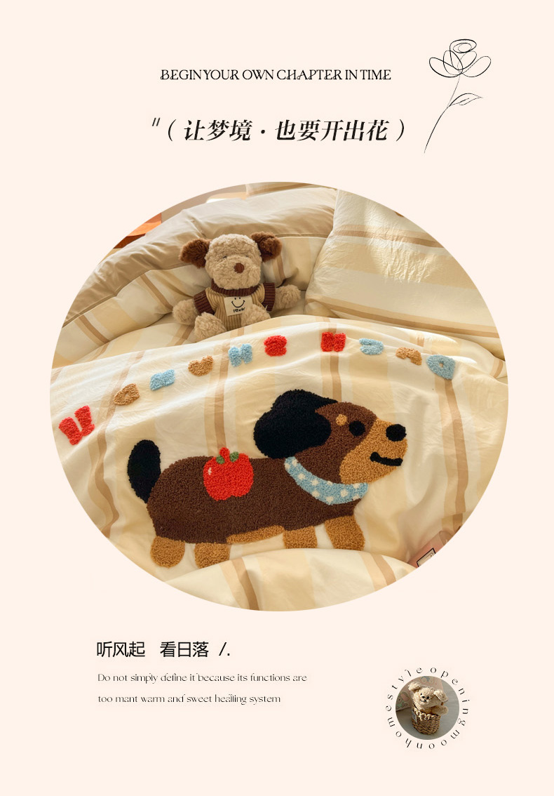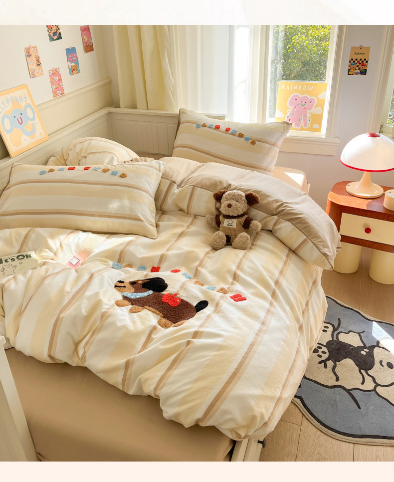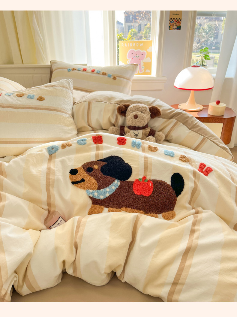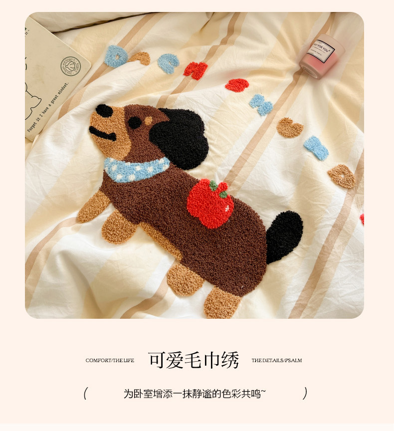 当前位置: 91家纺网 > 商品网购 > 床品套件 > 四件套 > 毛巾绣四件套 > 葡萄家 2025专版高克重超萌卡通格子双拼毛巾绣软糯糯水洗棉四件套 腊肠狗狗