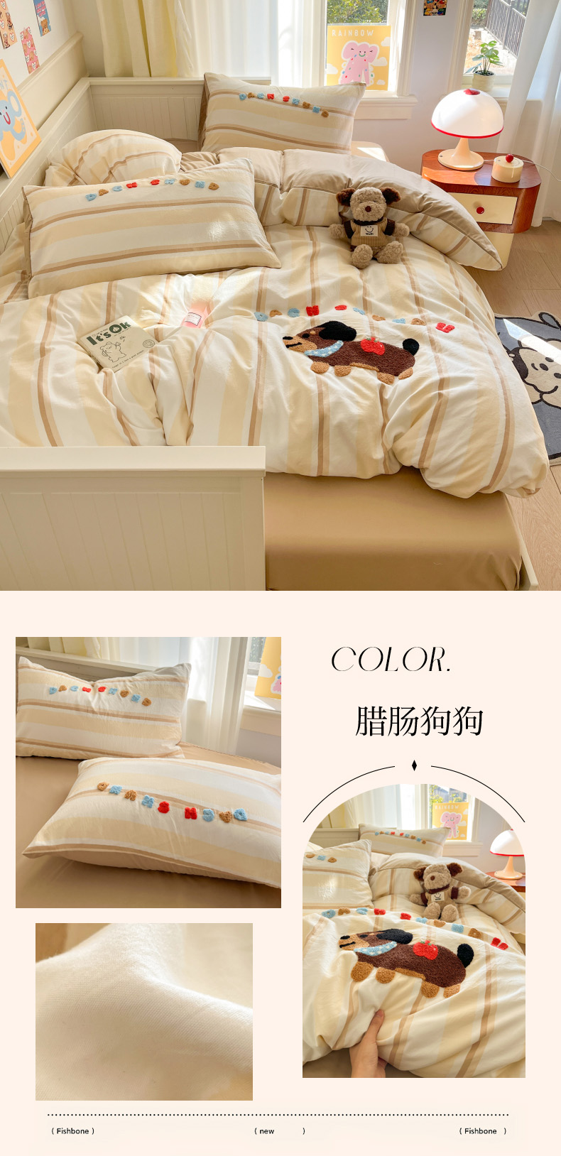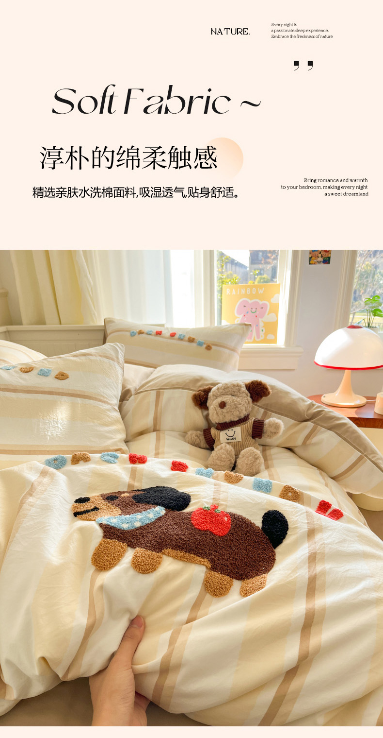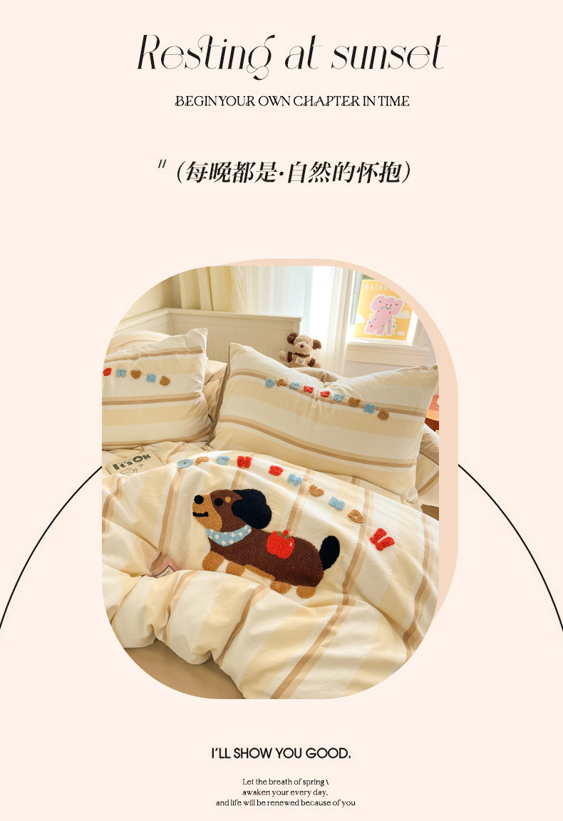 当前位置: 91家纺网 > 商品网购 > 床品套件 > 四件套 > 毛巾绣四件套 > 葡萄家 2025专版高克重超萌卡通格子双拼毛巾绣软糯糯水洗棉四件套 腊肠狗狗