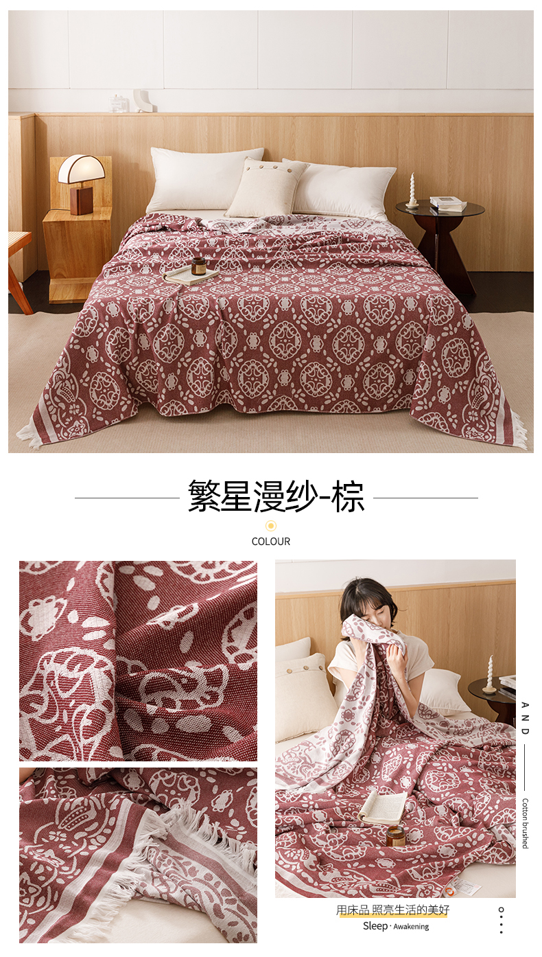 商品名称:悦然毛巾被 2025新款全棉双层纱流苏款盖毯 繁星漫纱棕