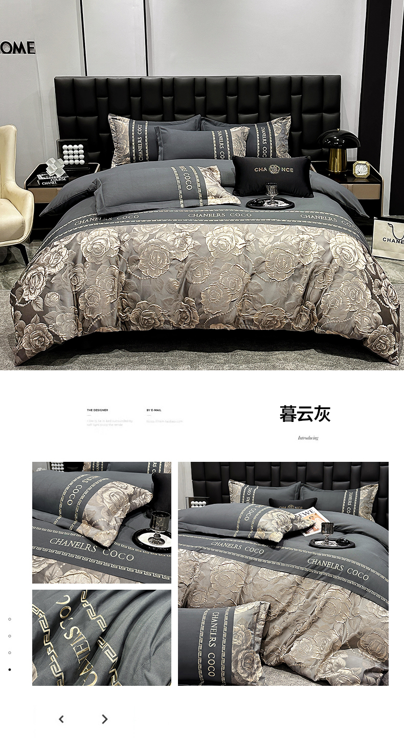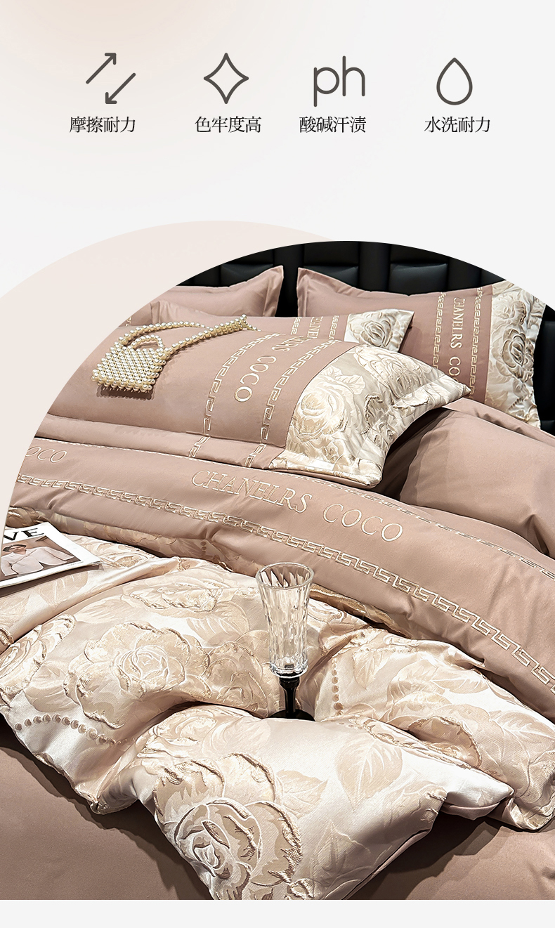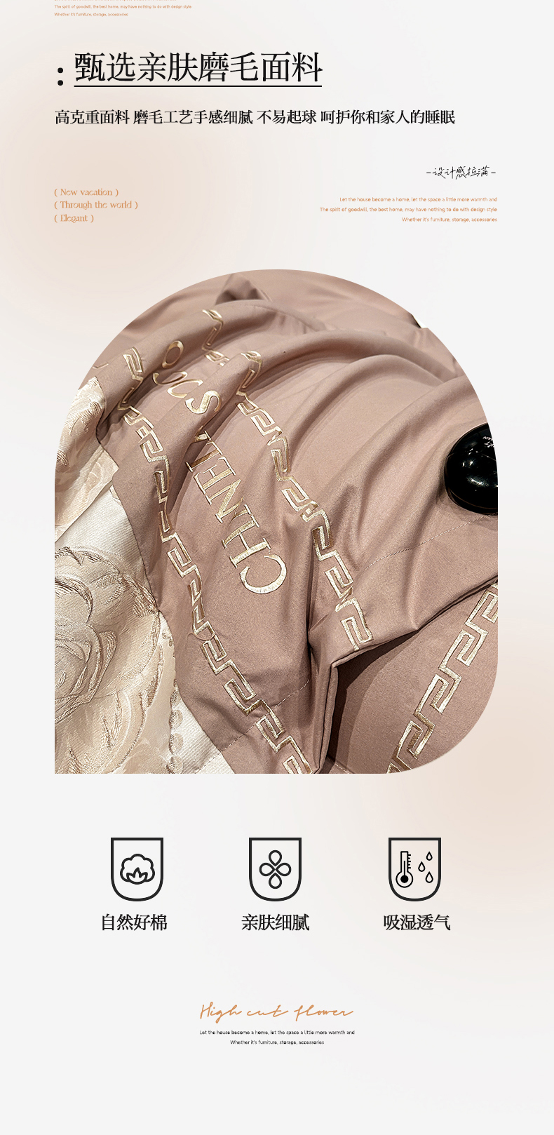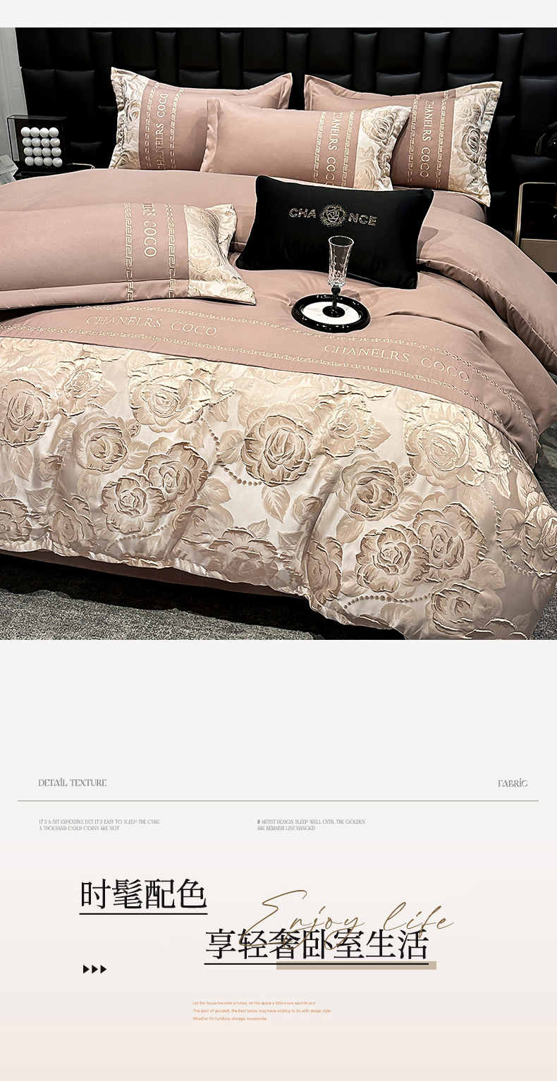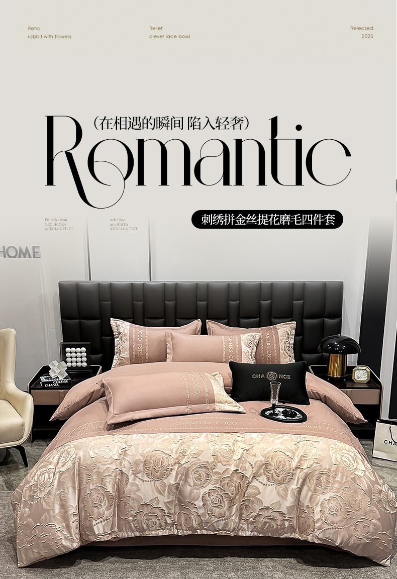 (总)富宁家纺 2025新款立体雕花牛奶绒绣花四件套-洛卡玫瑰系列,洛卡白,玫瑰灰,洛卡咖,玫瑰粉,洛卡蓝