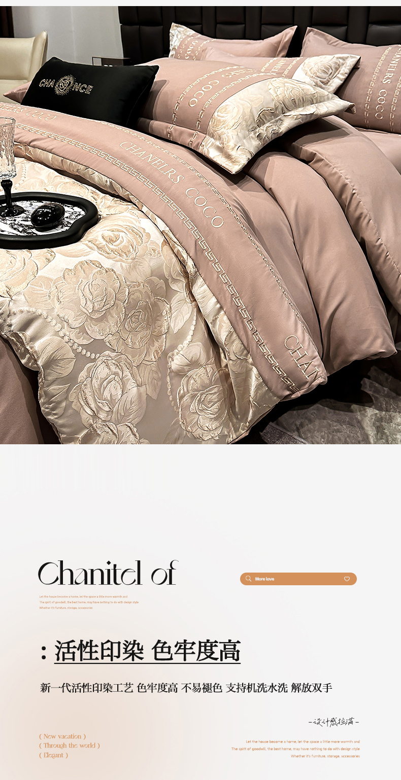 富宁家纺 2025新款刺绣拼金丝提花磨毛四件套-花梦里 花梦里香槟金