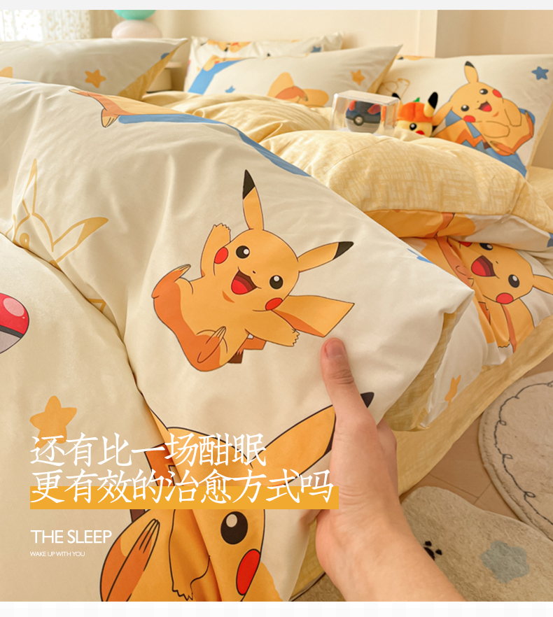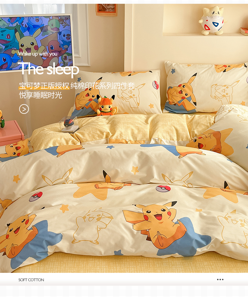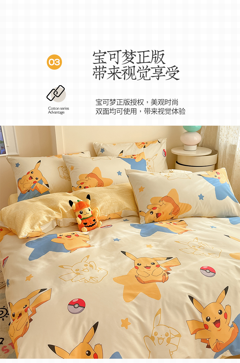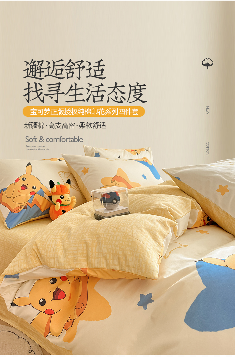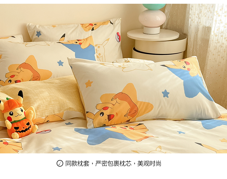 当前位置: 91家纺网 > 商品网购 > 床品套件 > 四件套 > 全棉普通四件套 > 桃子家居 2025新款宝可梦正版授权皮卡丘纯棉印花系列四件套 棉宝可梦-星星皮卡丘