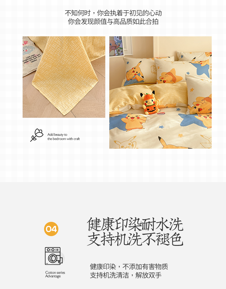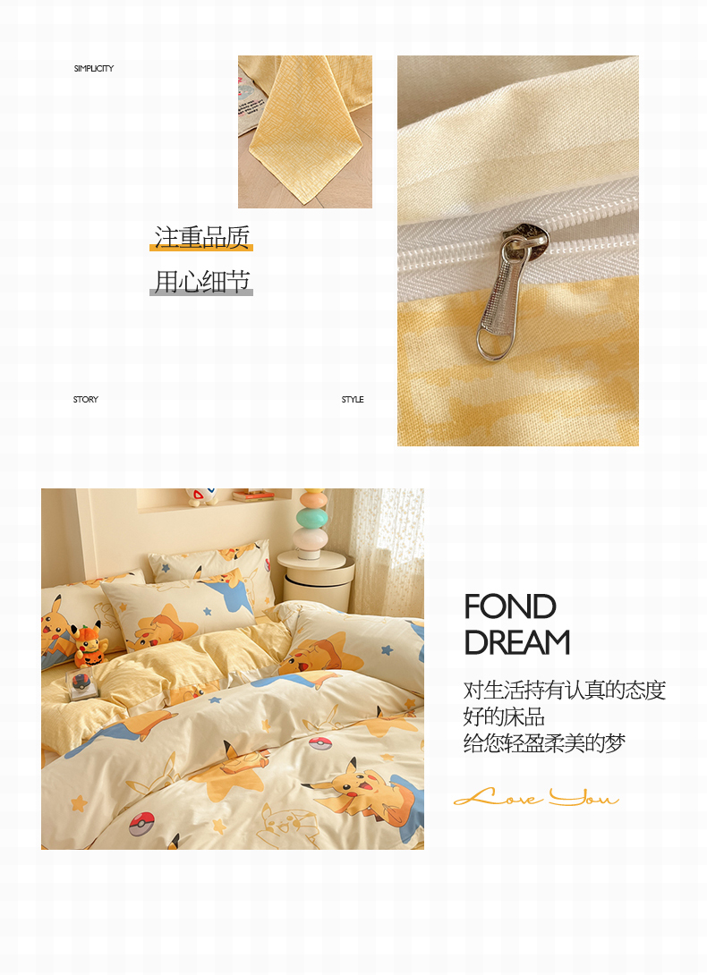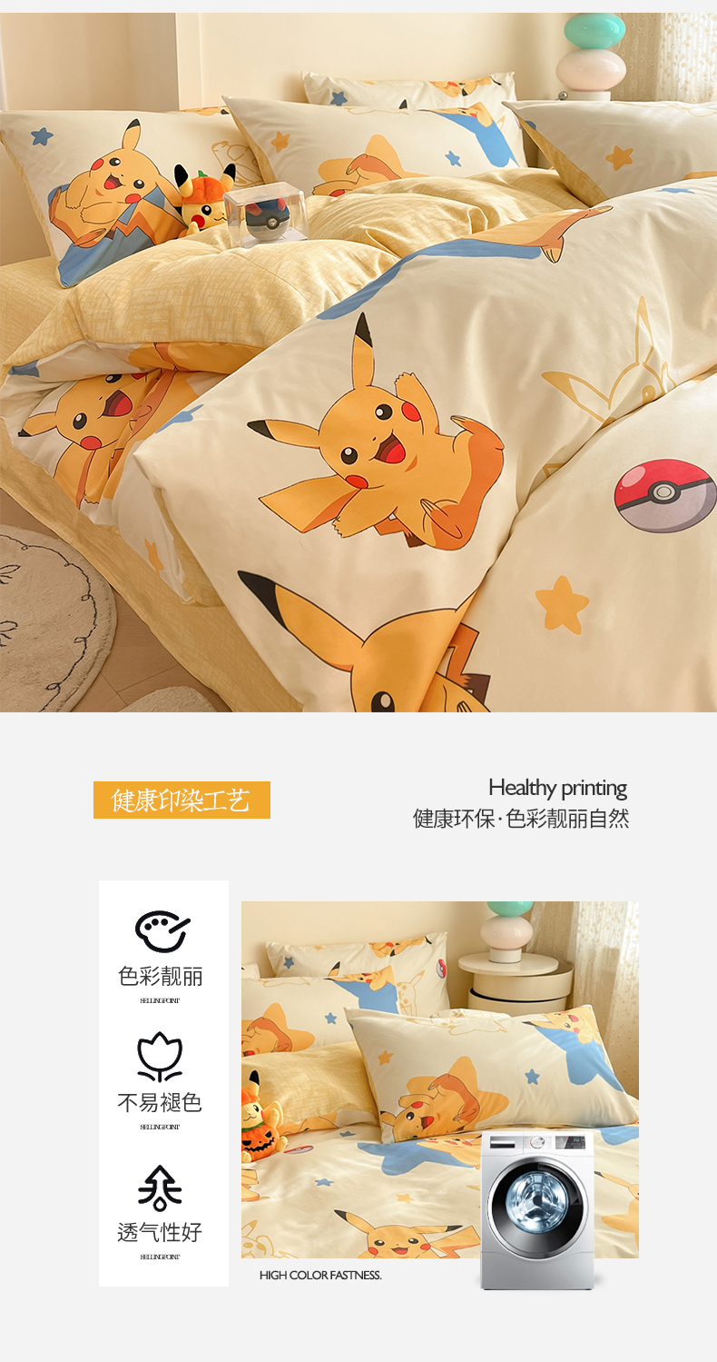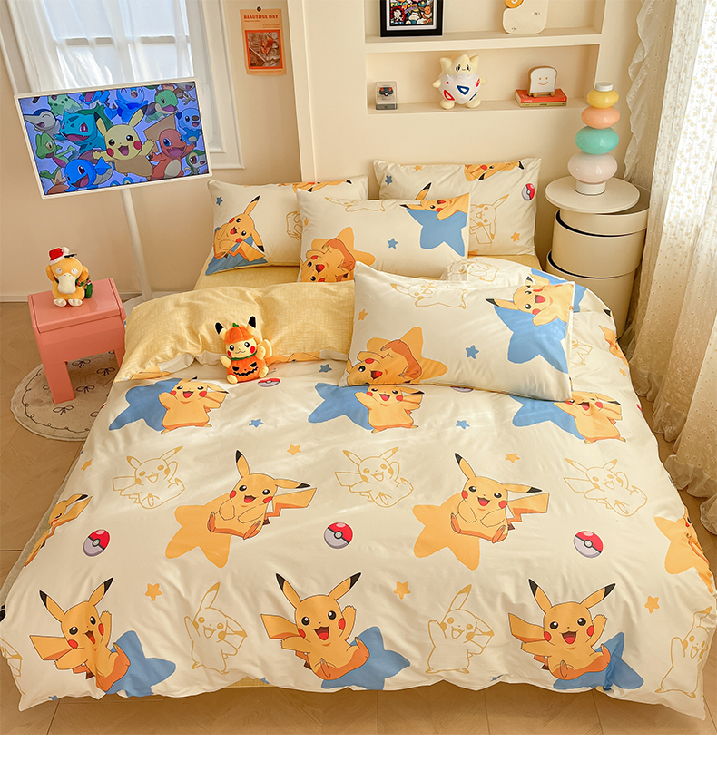 当前位置: 91家纺网 > 商品网购 > 床品套件 > 四件套 > 全棉普通四件套 > 桃子家居 2025新款宝可梦正版授权皮卡丘纯棉印花系列四件套 棉宝可梦-星星皮卡丘