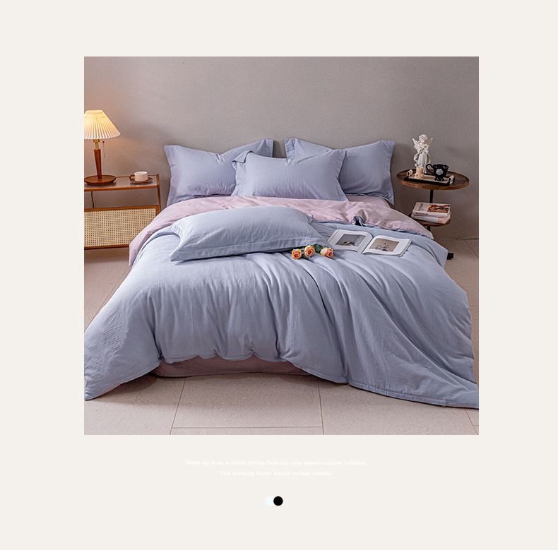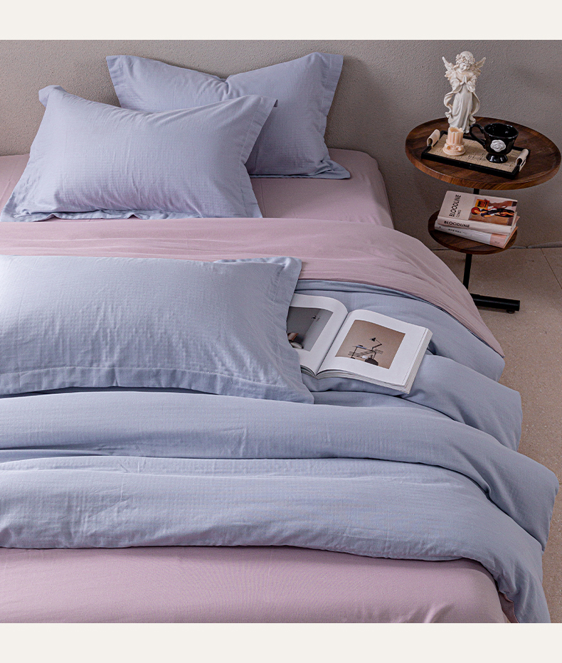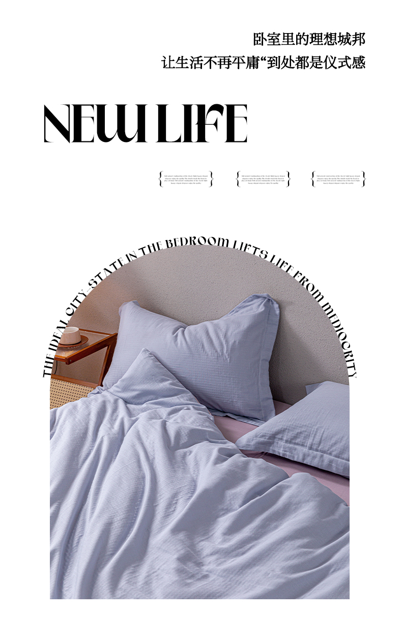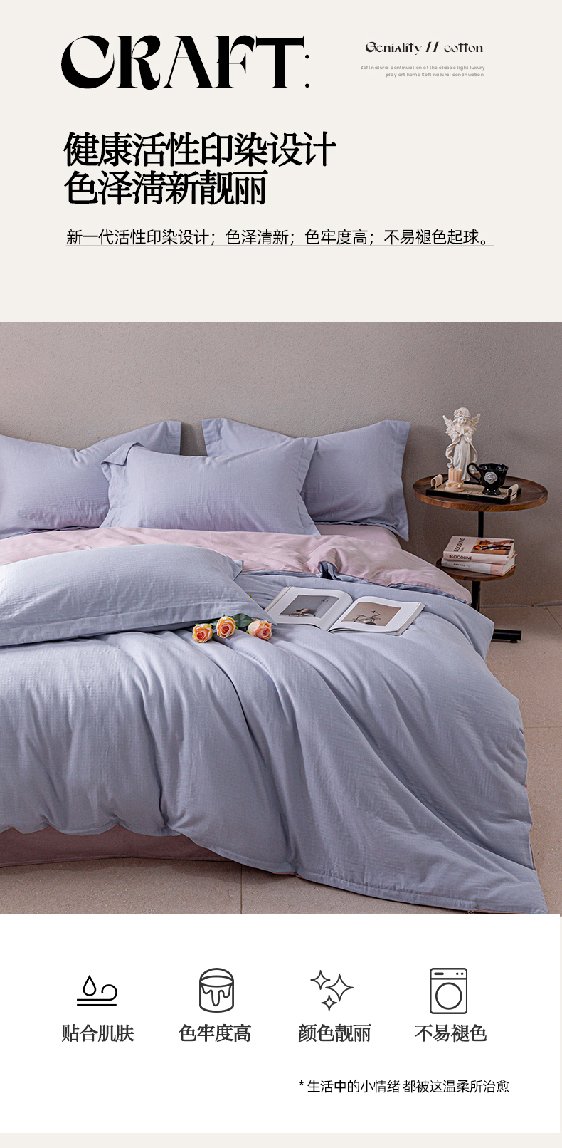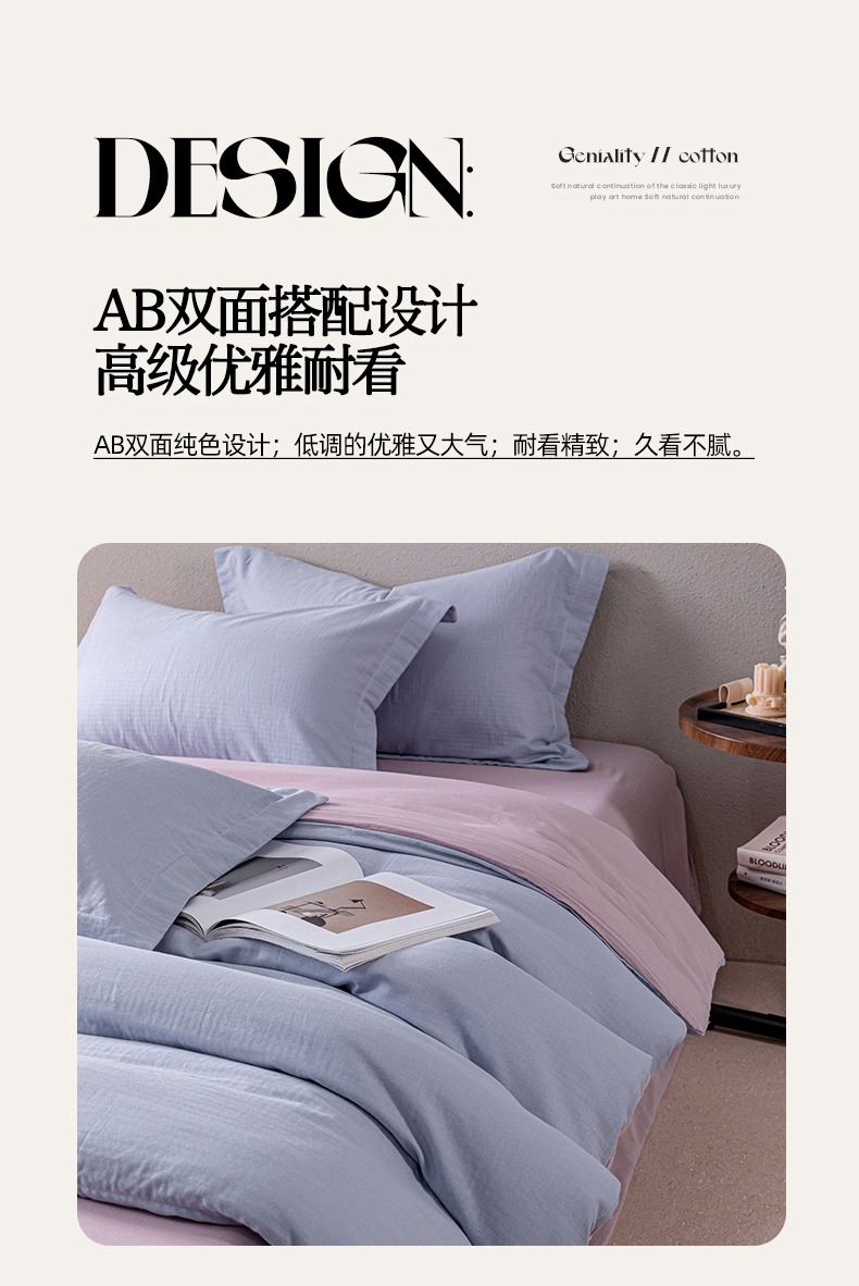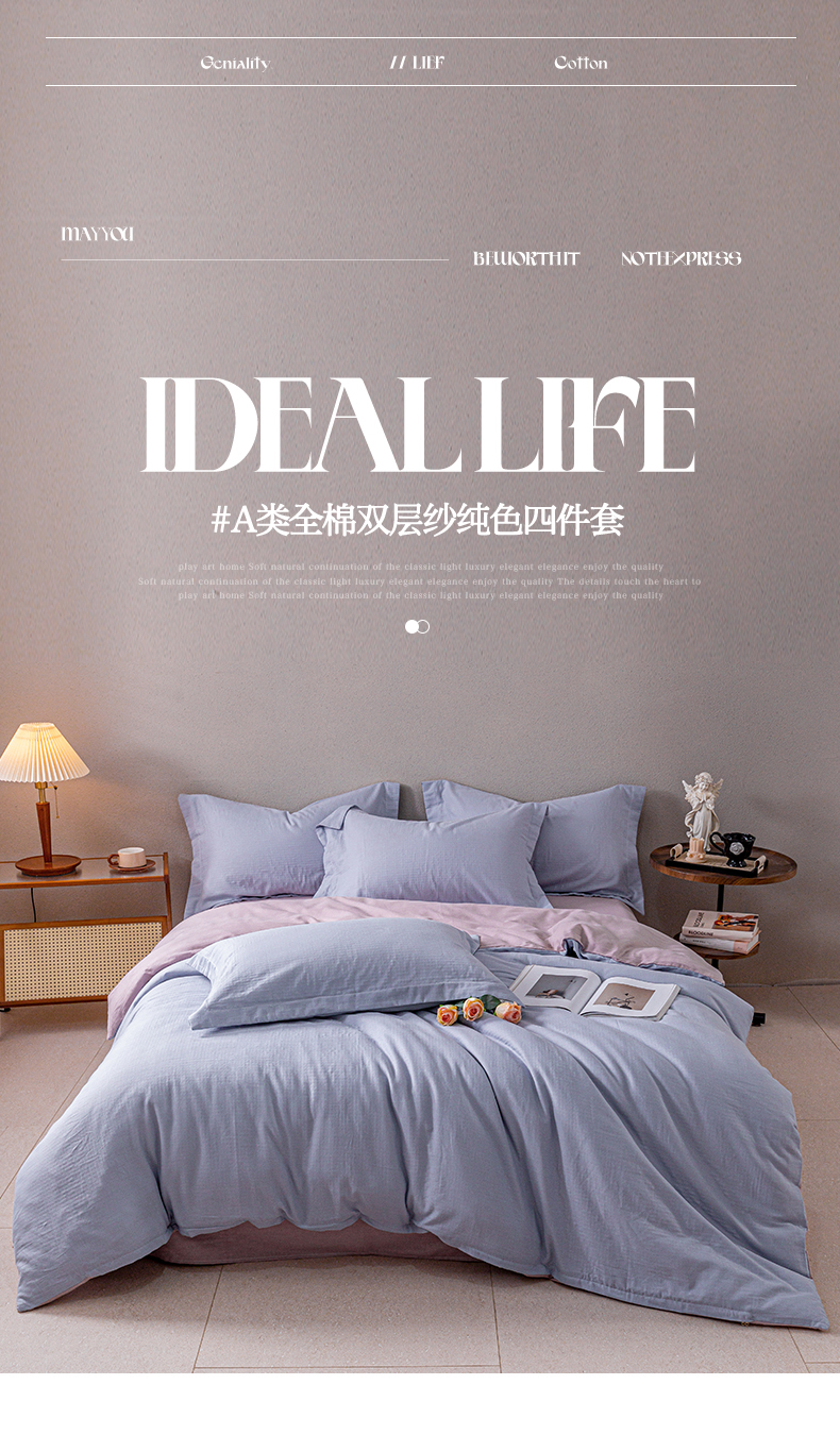 当前位置: 91家纺网 > 商品网购 > 床品套件 > 四件套 > 全棉普通四件套 > 锦罗绣 2025新款A类全棉有氧双层纱纯色四件套 蓝+紫