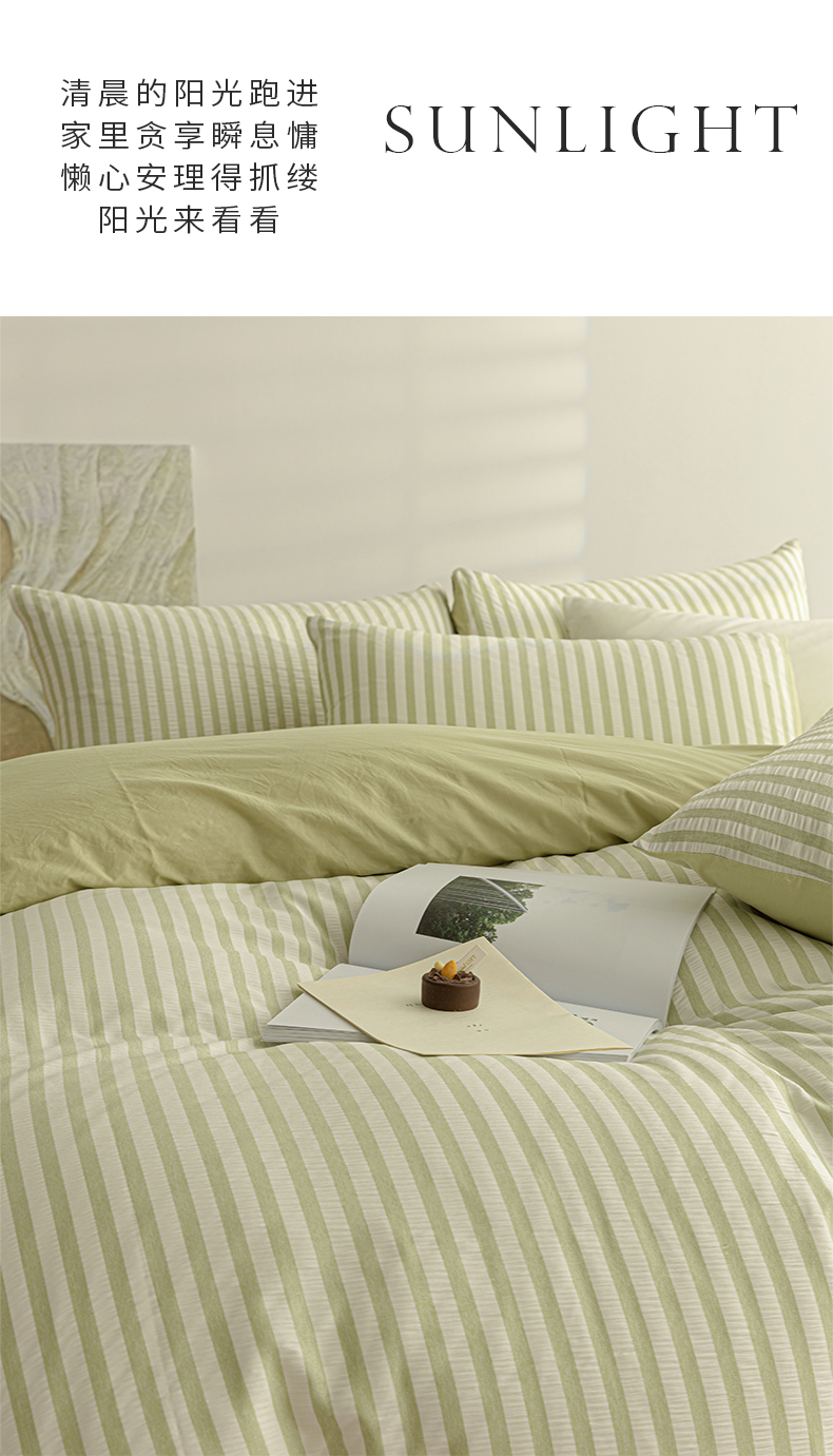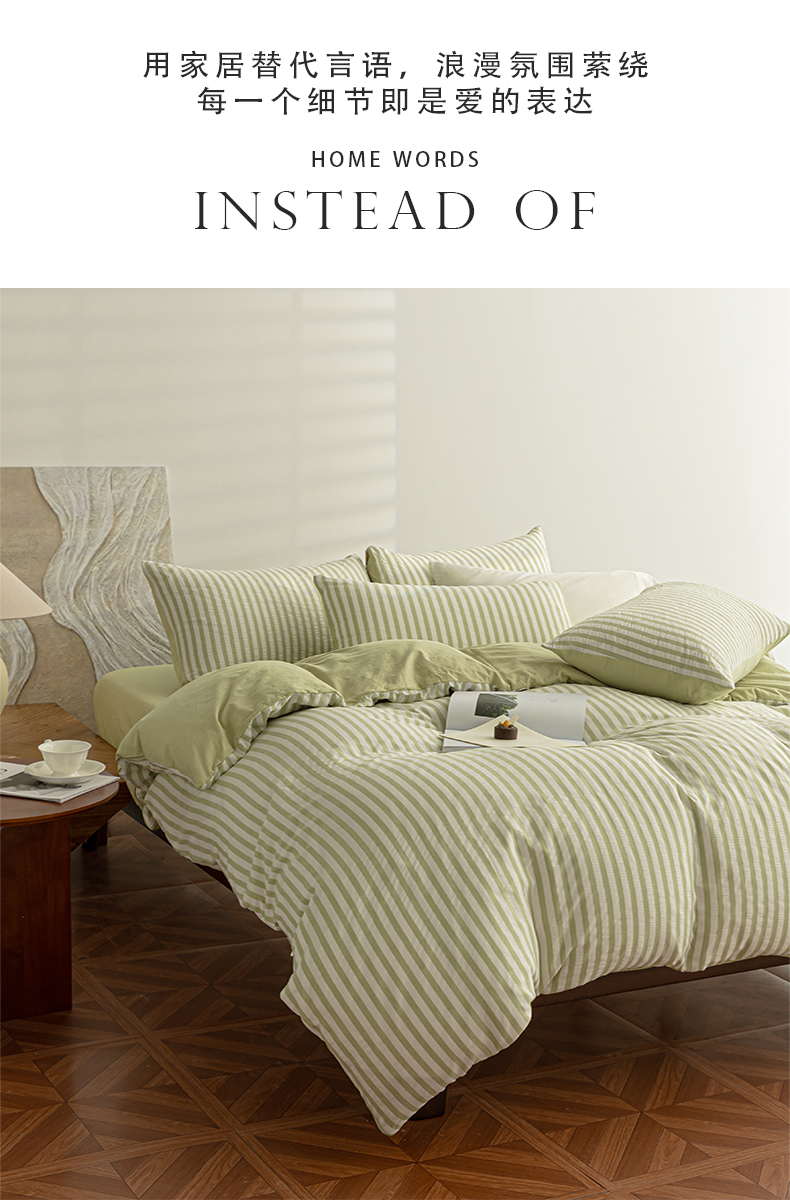 (总)恩和家纺 2025新款水洗棉提花条纹四件套