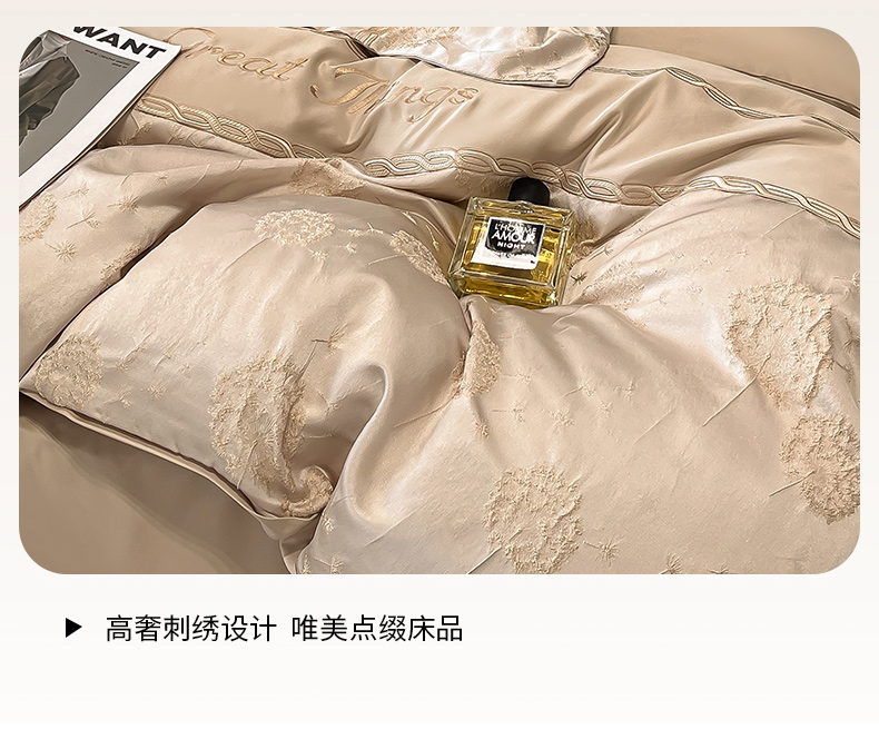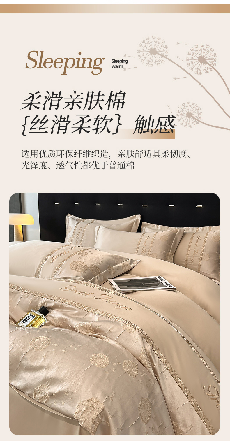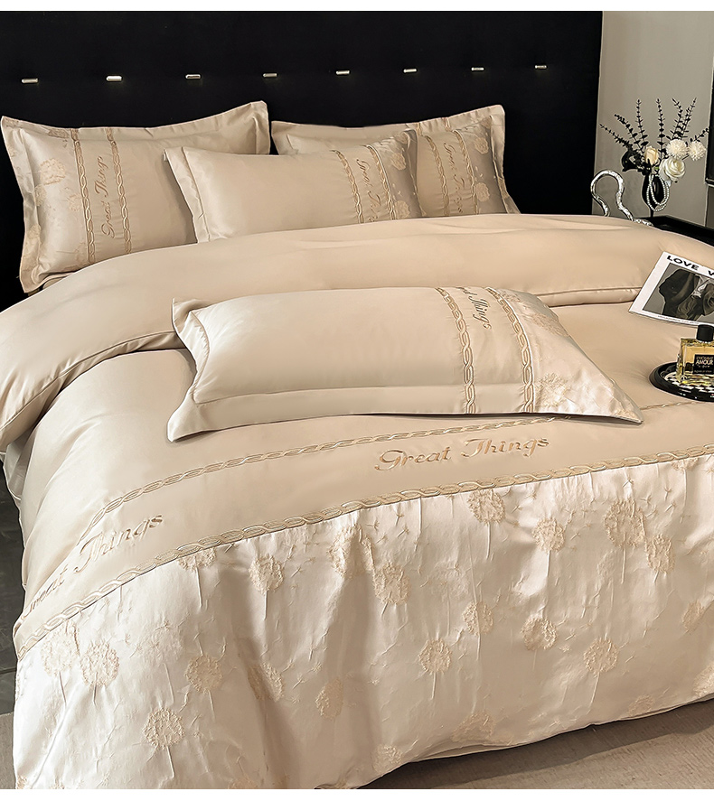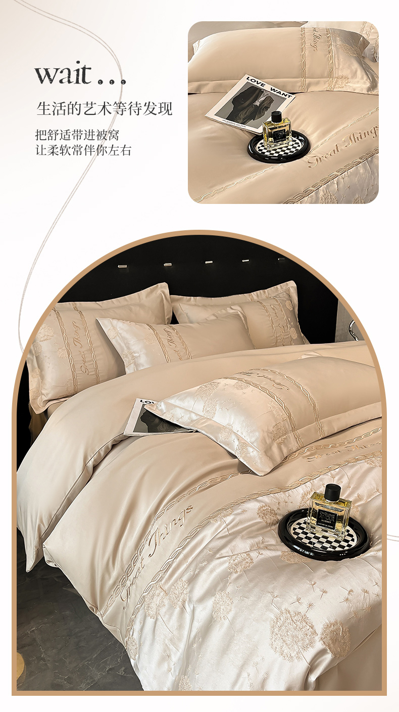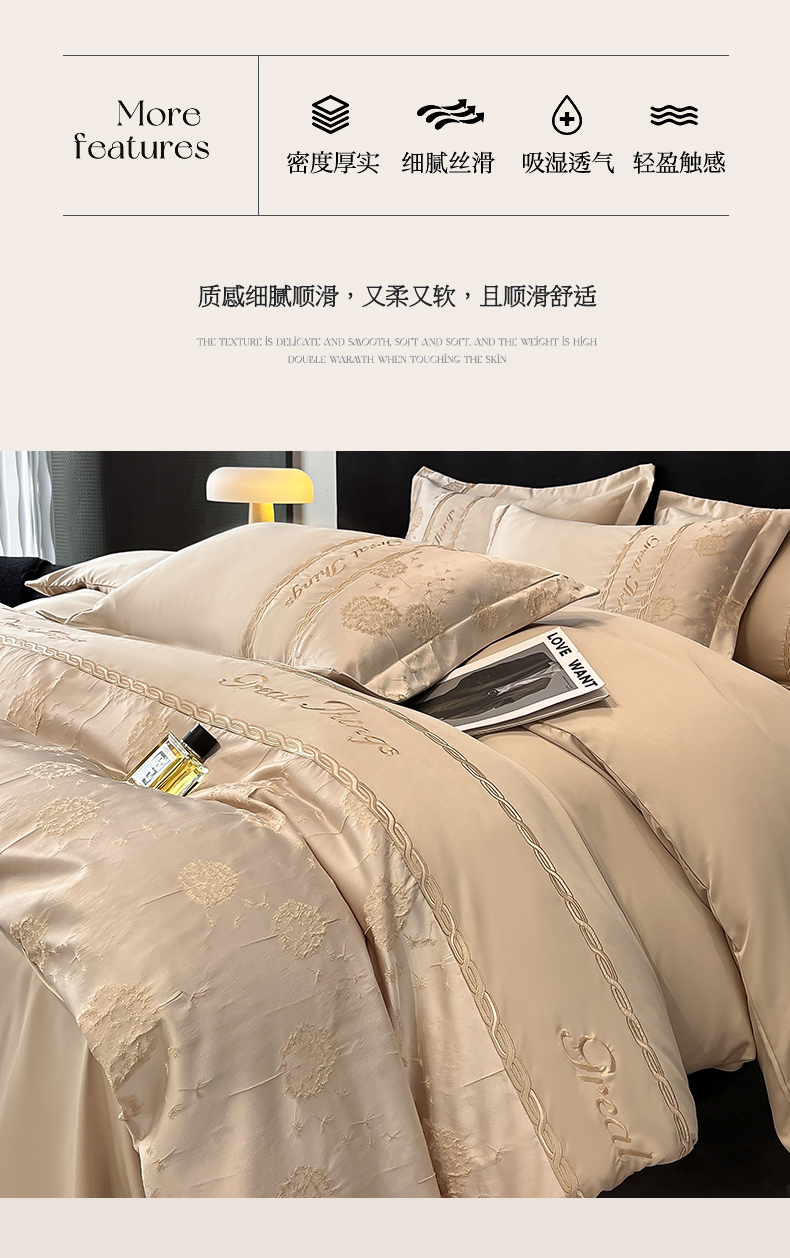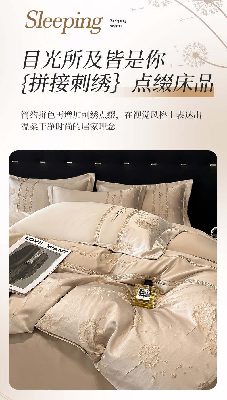 金牛座家纺 2025新款金丝提花亲肤棉刺绣拼接四件套 约定-香槟