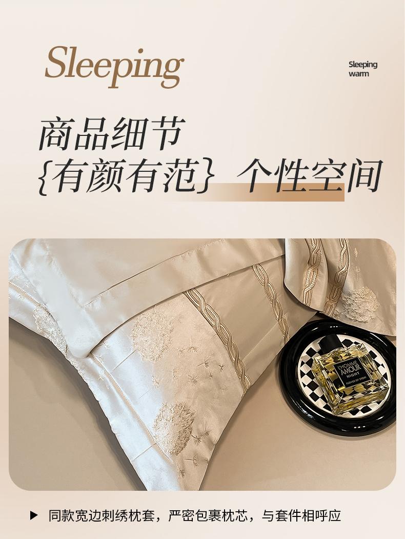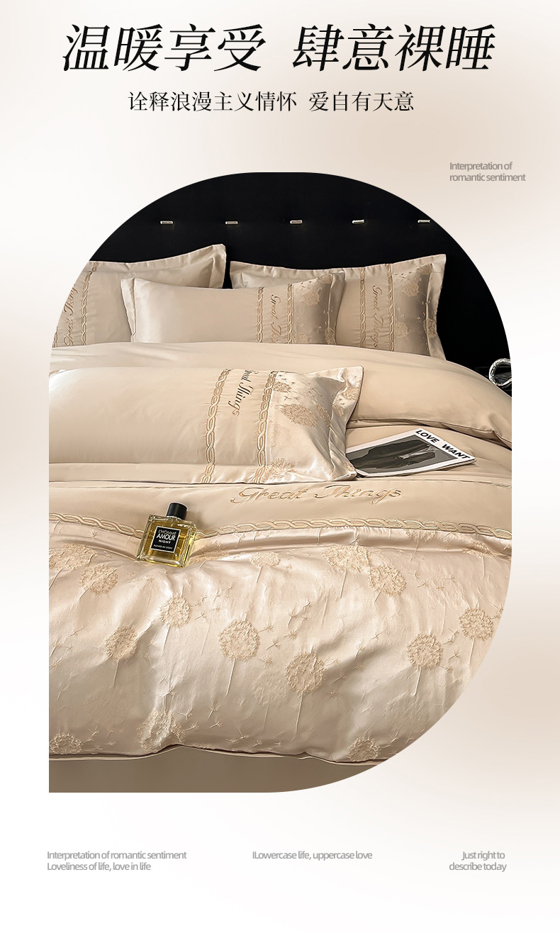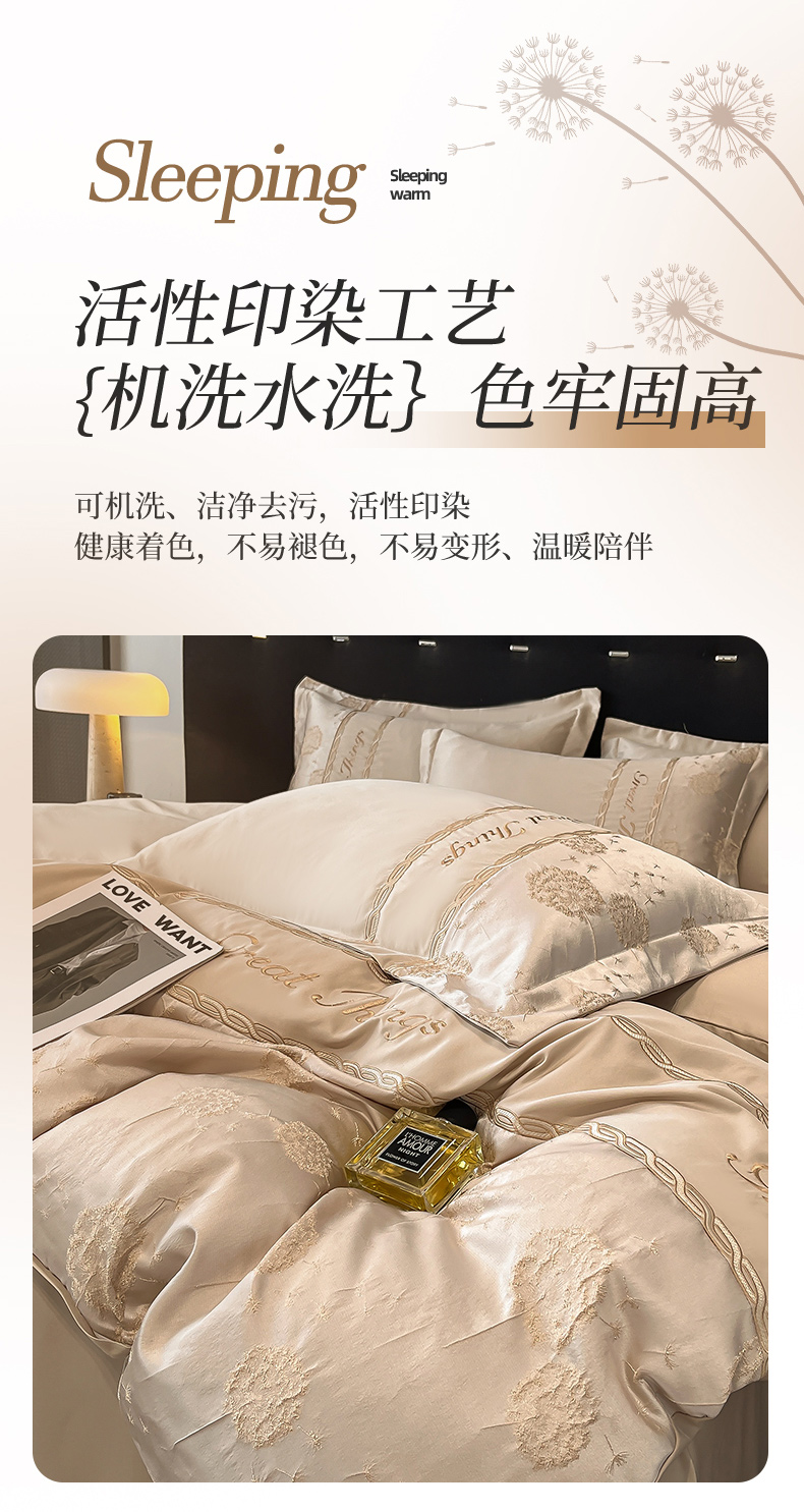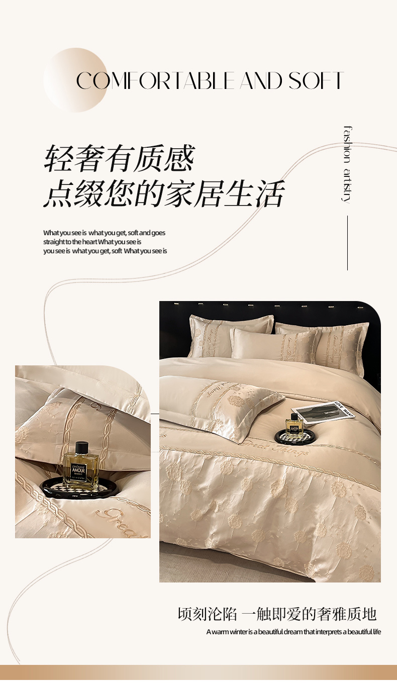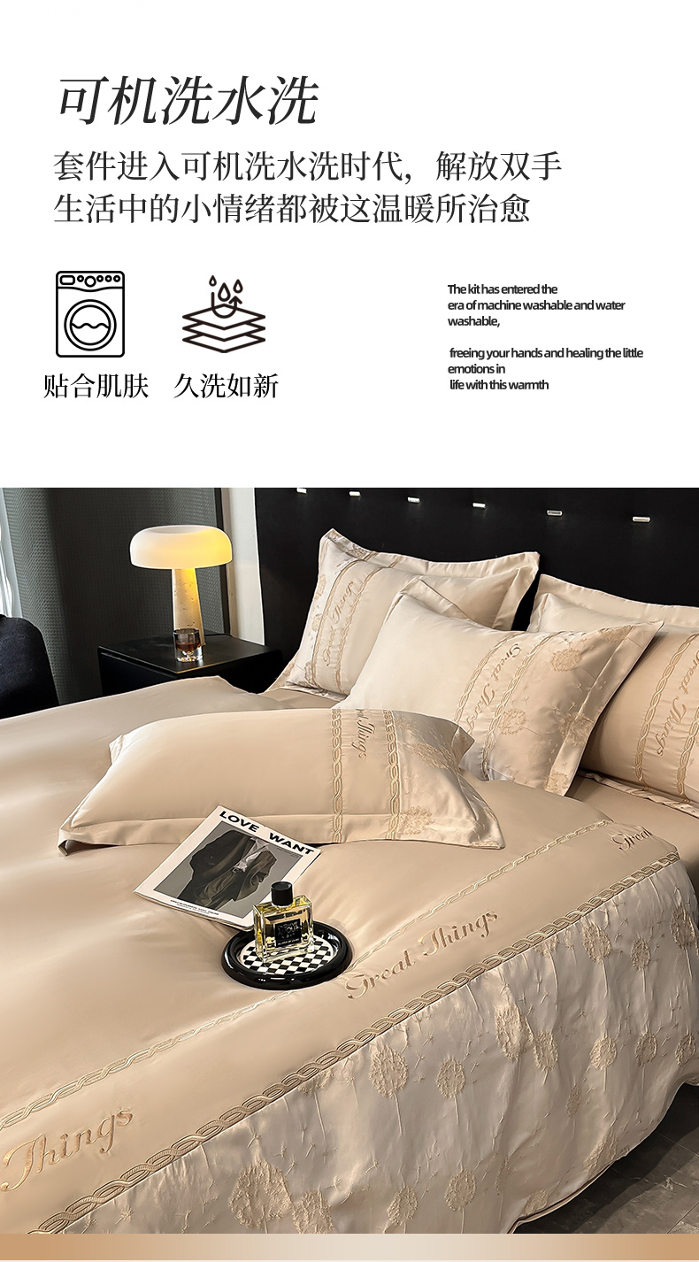 金牛座家纺 2025新款金丝提花亲肤棉刺绣拼接四件套 约定-香槟