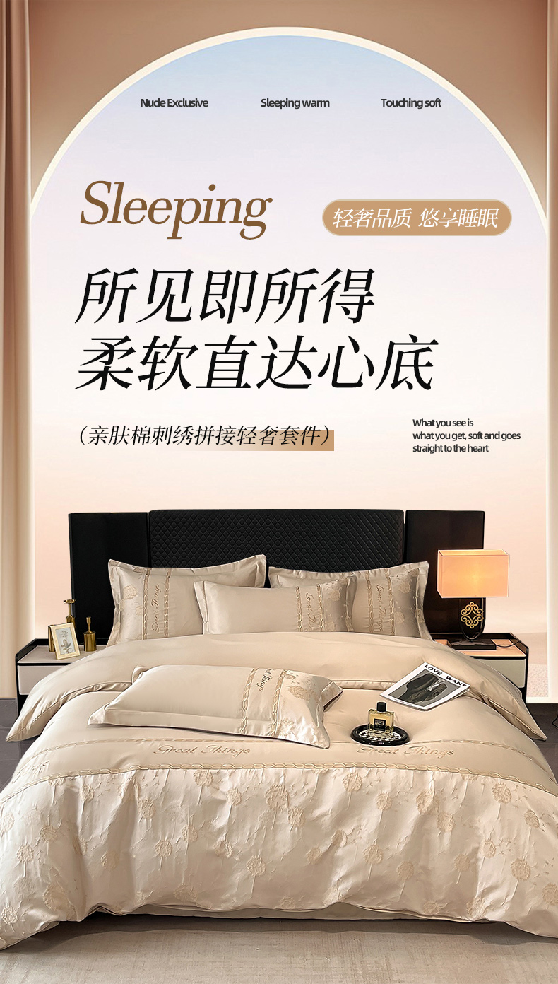 商品名称:金牛座家纺 2025新款金丝提花亲肤棉刺绣拼接四件套 约定-香槟
