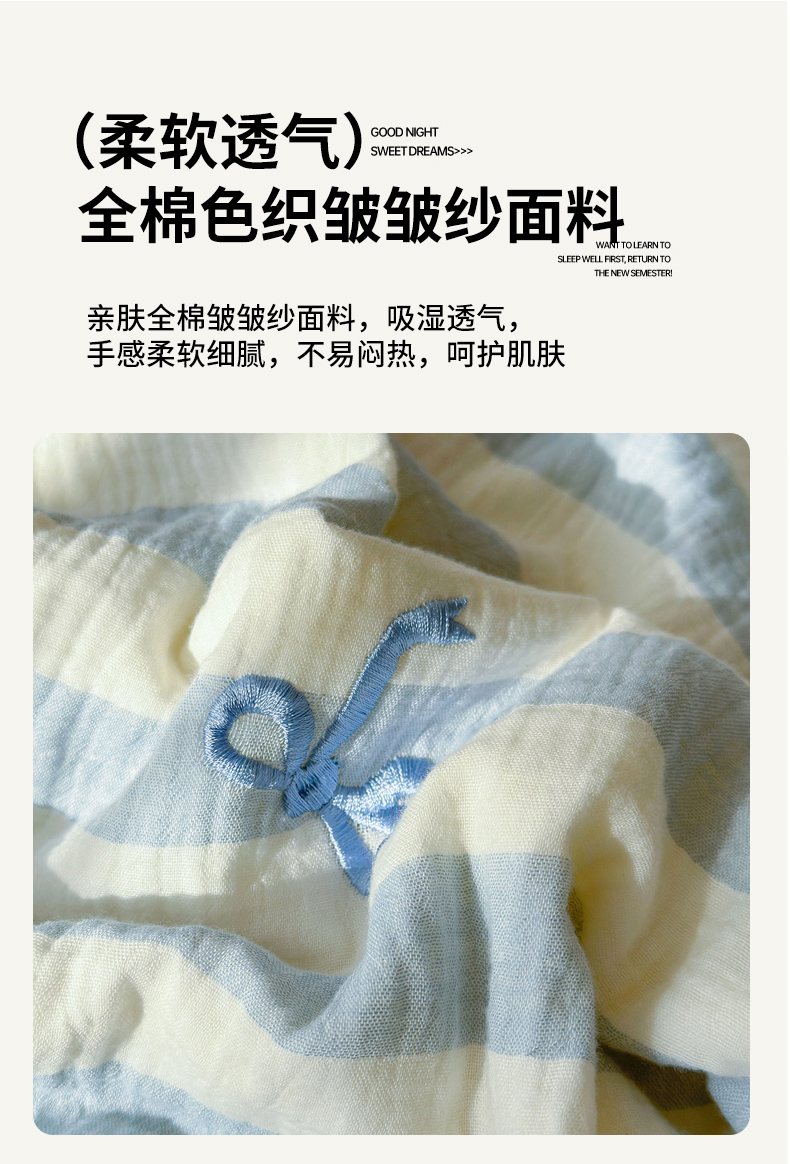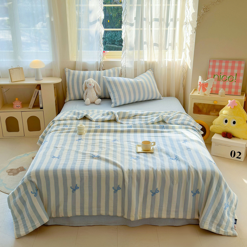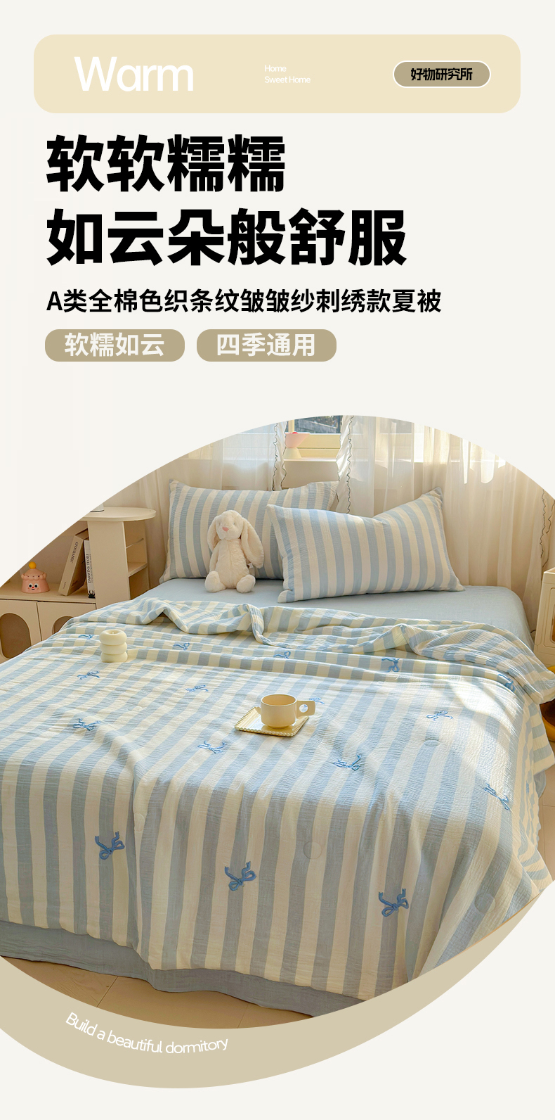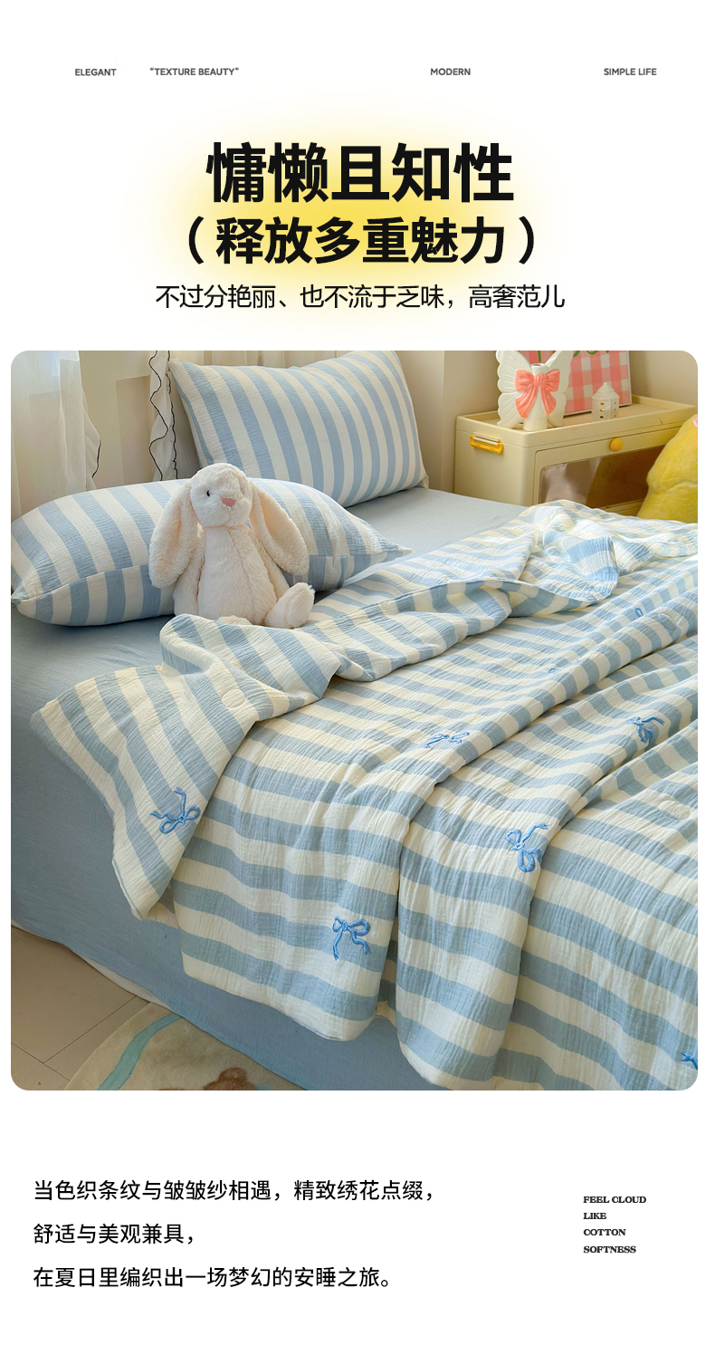 • 91家纺网 家纺一手货源 找家纺 木楌家居2025新款色织条纹皱皱纱刺绣款夏被 在逃公主 兰