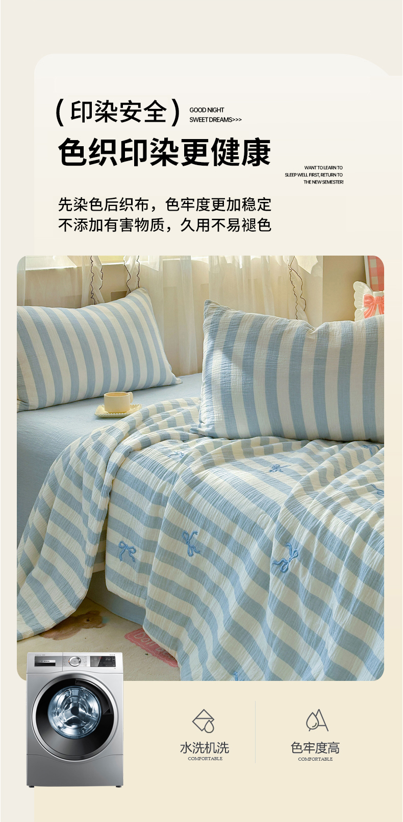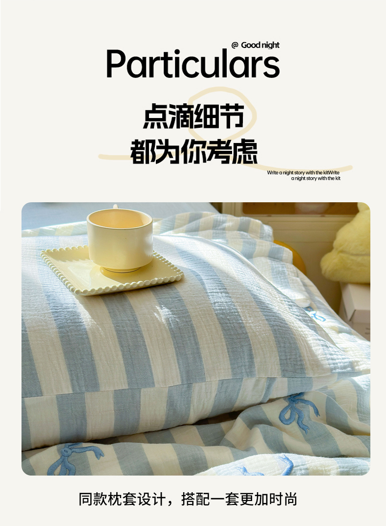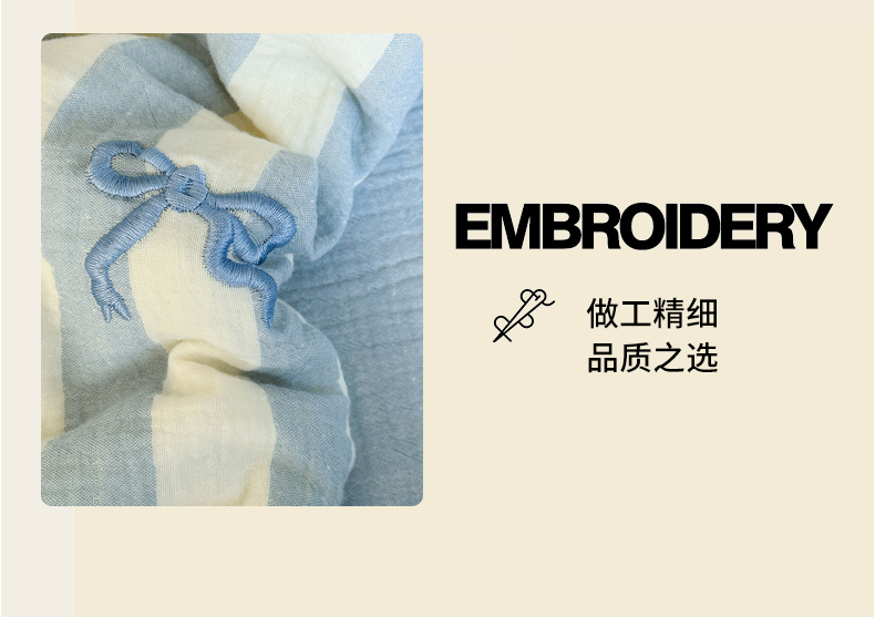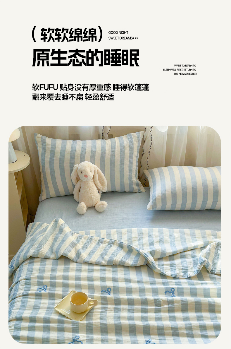 • 91家纺网 家纺一手货源 找家纺 木楌家居2025新款色织条纹皱皱纱刺绣款夏被 在逃公主 兰