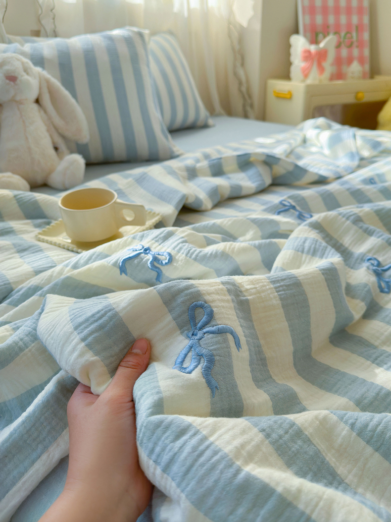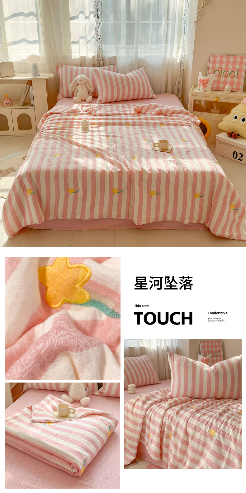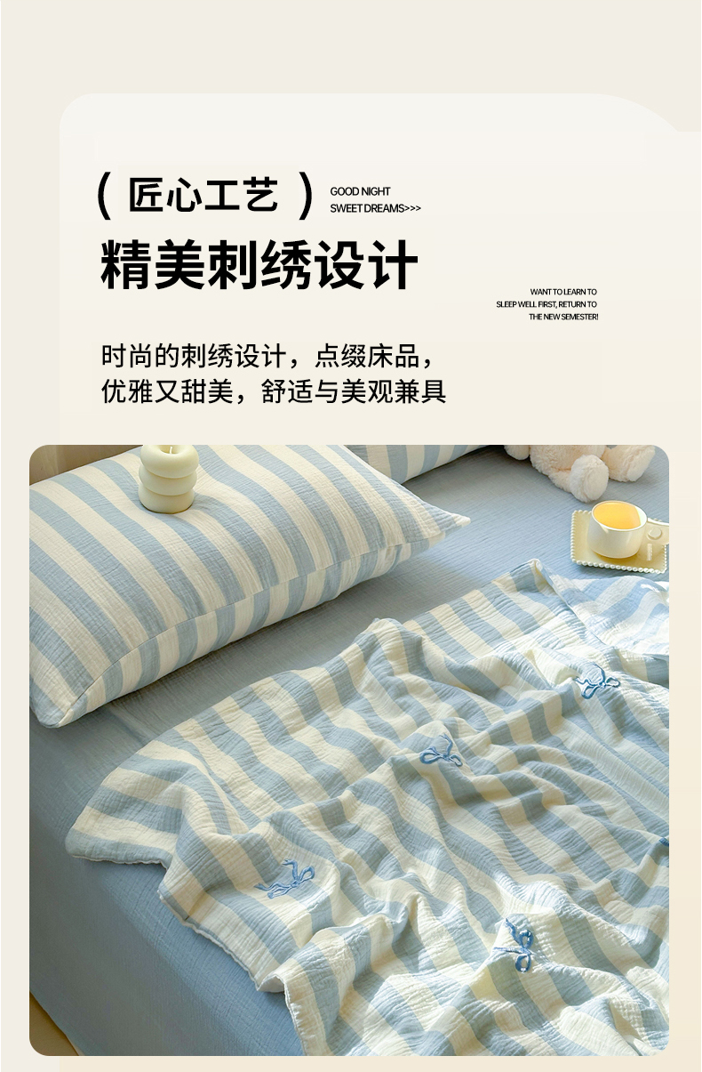 木楌家居2025新款色织条纹皱皱纱刺绣款夏被 在逃公主 兰