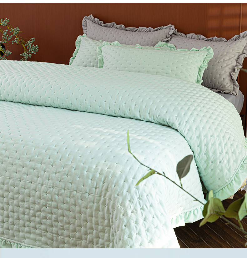 商品名称:恩和家纺 2025新款荷叶边款多功能绗缝被床盖-风格二 飞边豆沙粉