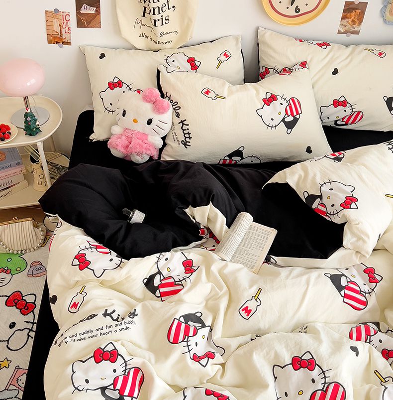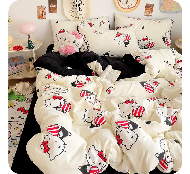 当前位置: 91家纺网 > 商品网购 > 床品套件 > 四件套 > 水洗棉四件套 > 贝扬思家纺 2025新款水洗棉三丽鸥简约系列四件套-大床图 喝牛奶kt