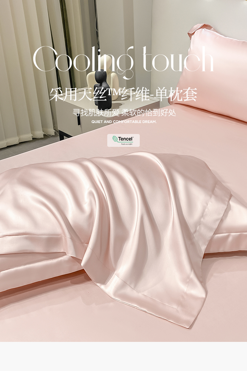 • 91家纺网 家纺一手货源 找家纺 (买家秀 爆款花型不断货)A类母婴级兰精天丝TM纯色枕套兰精天丝枕头套一对装天丝单枕套 单枕套-蜜桃粉